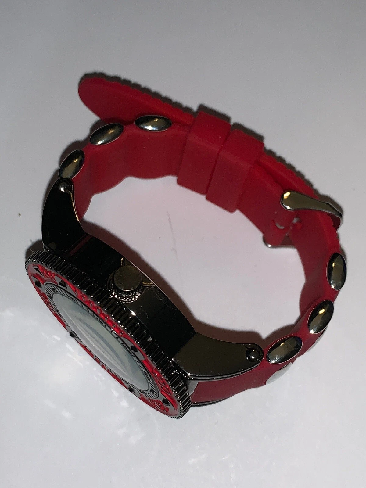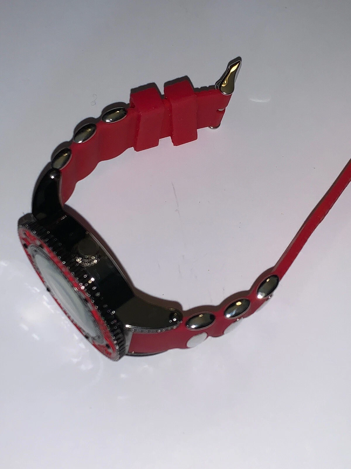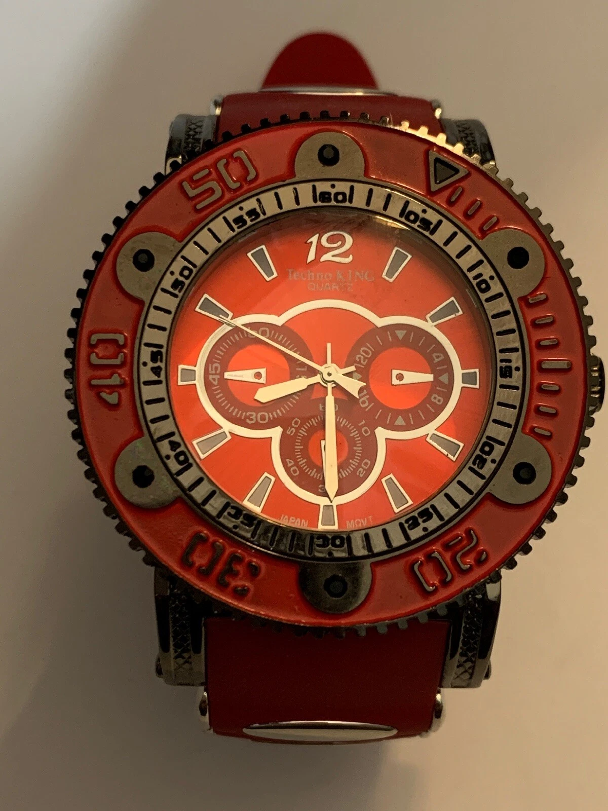 Techno King Mens Fashion Watch. New Battery. Red Silicone Band.