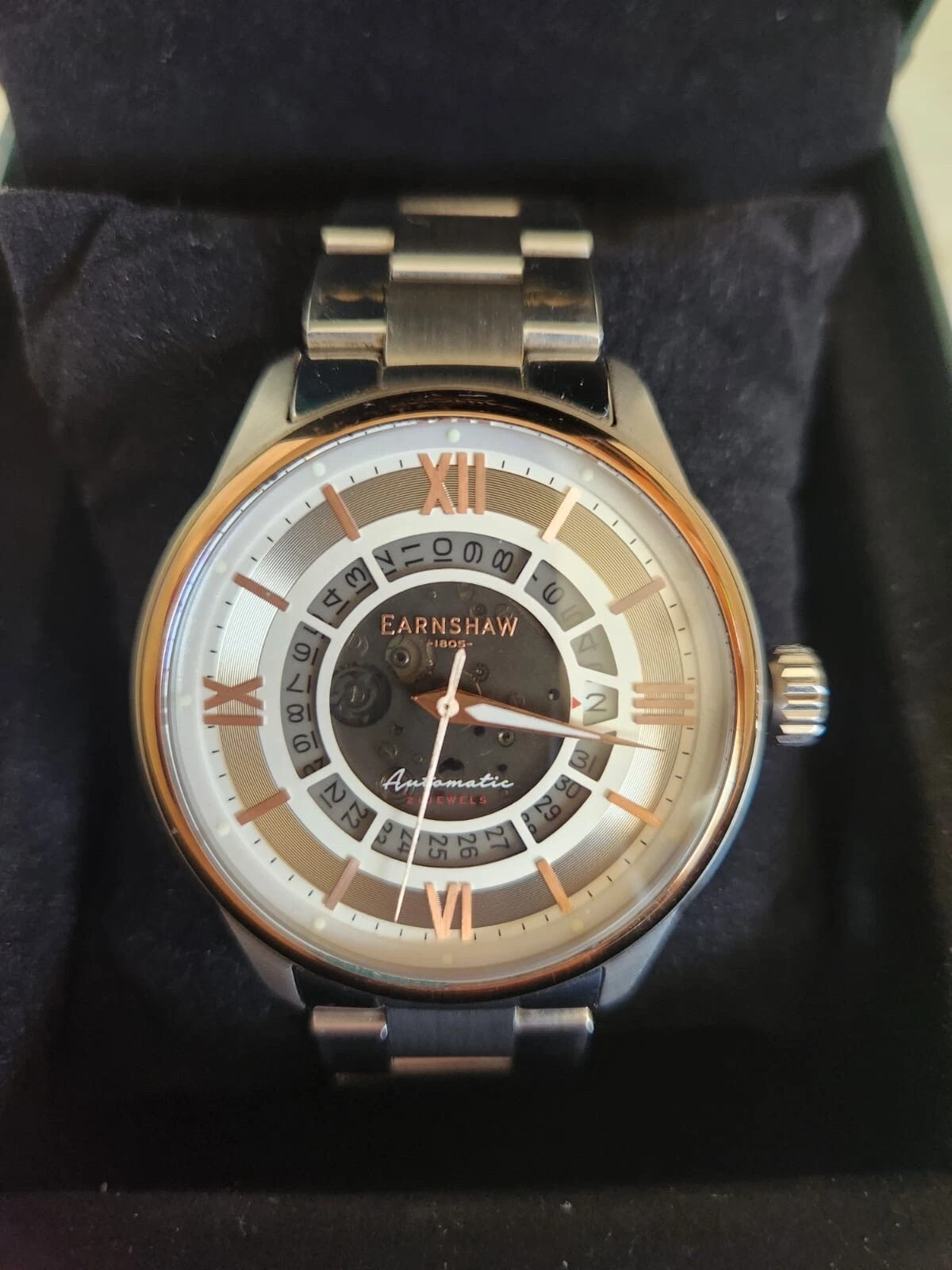Thomas Earnshaw ES-8182-22 Men's Black Watch SILVER CHAMPAGNE Skeleton Automatic