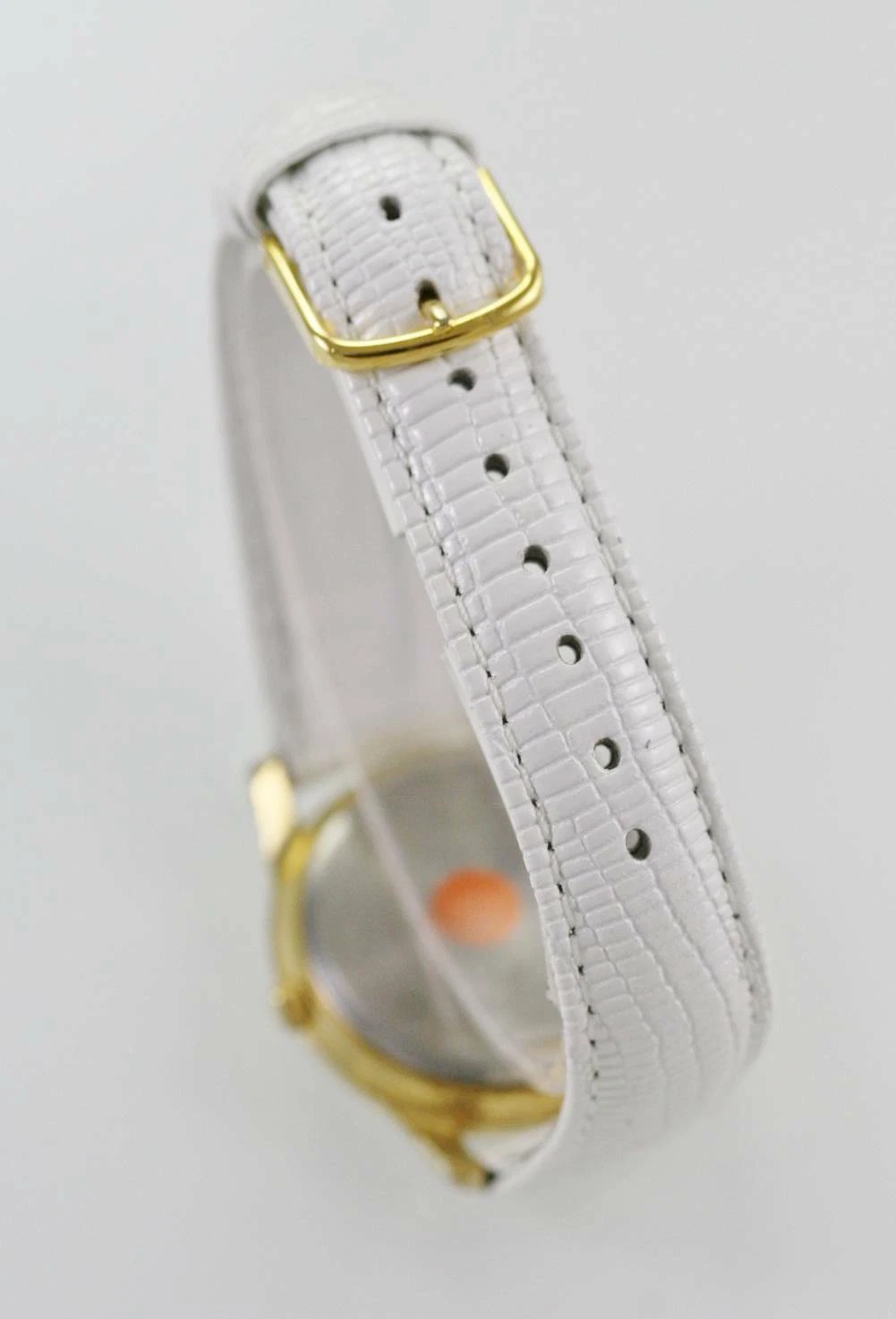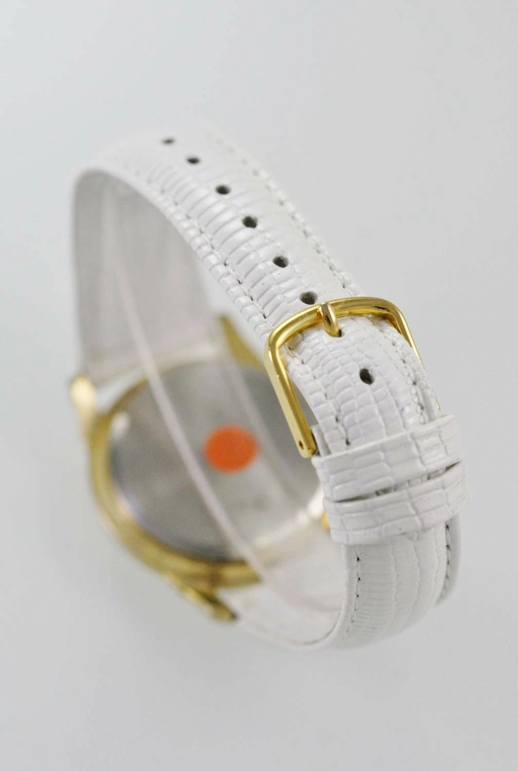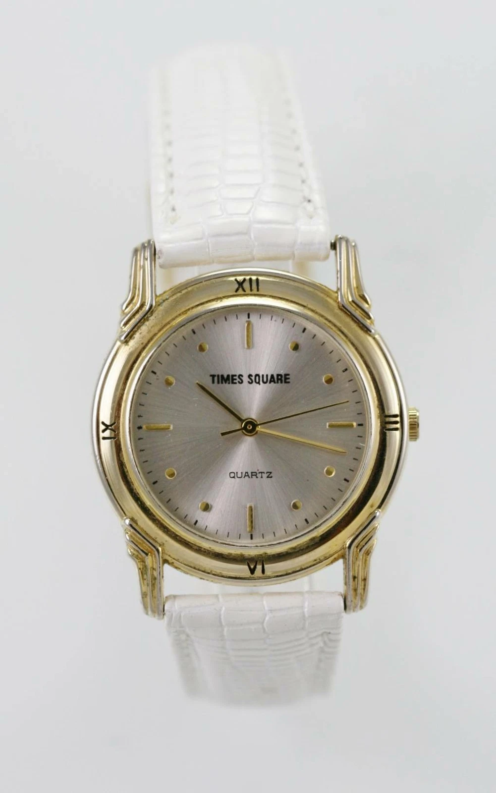 Times Square Watch Unisex Stainless Steel Gold Leather White Battery Quartz