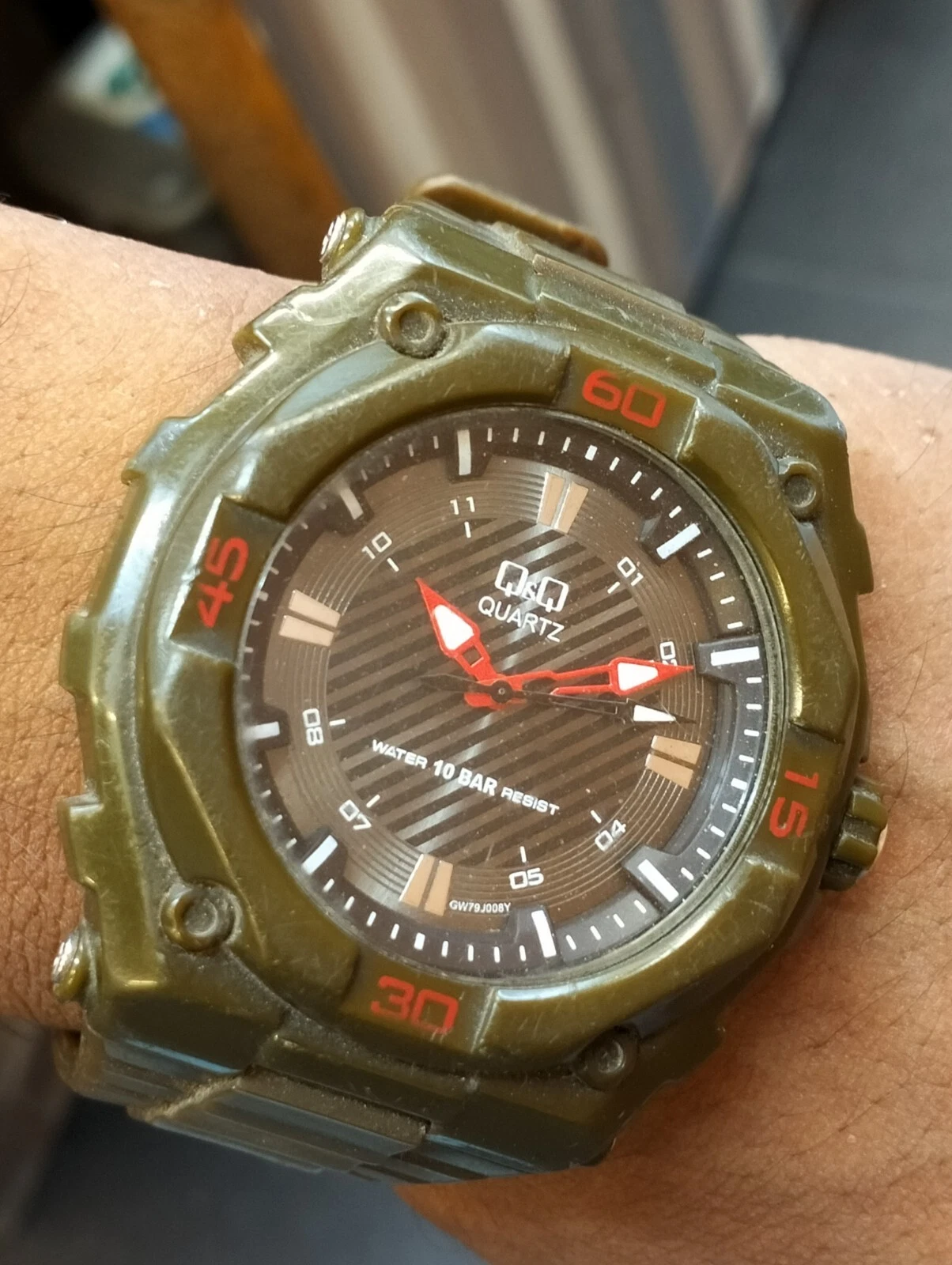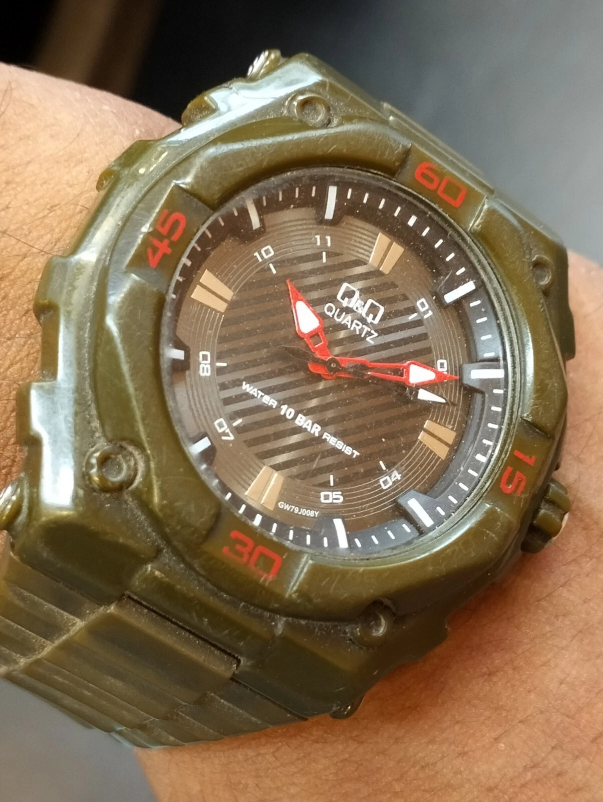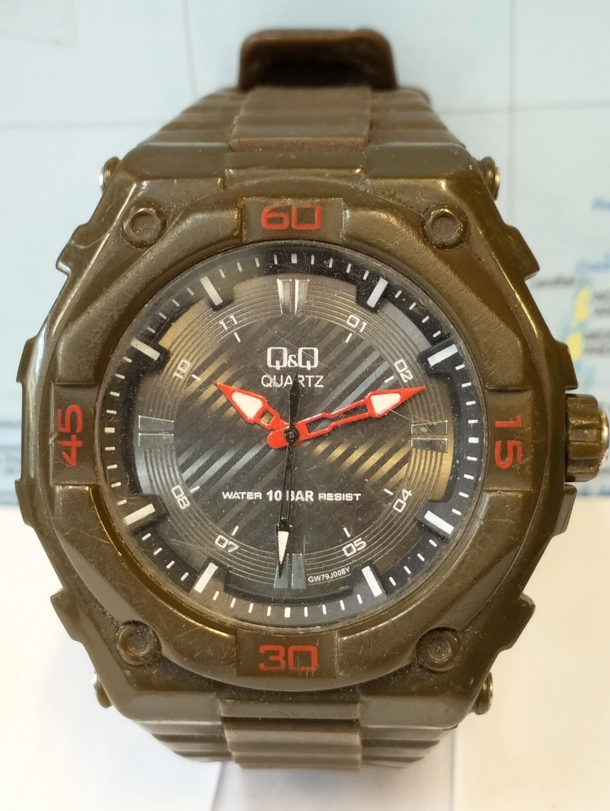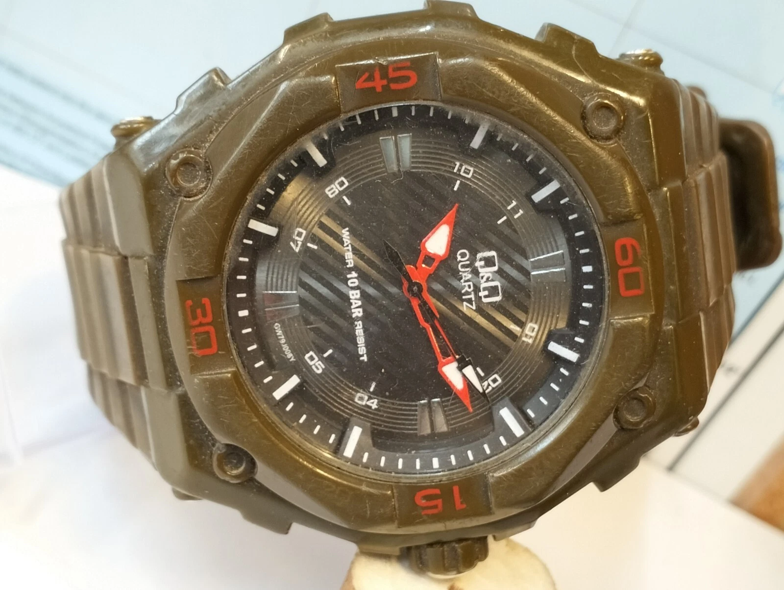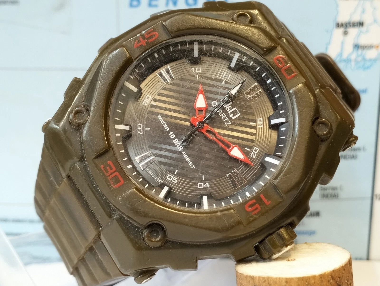 Q&Q QUARTZ SPORTS STYLE BLACK DIAL MEN'S FULL WORKING VINTAGE WATCH