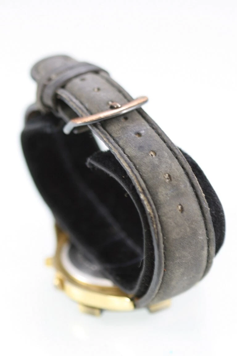 Times Square Men Watch Gold Stainless Steel Black Leather WR 24hr Light Quartz