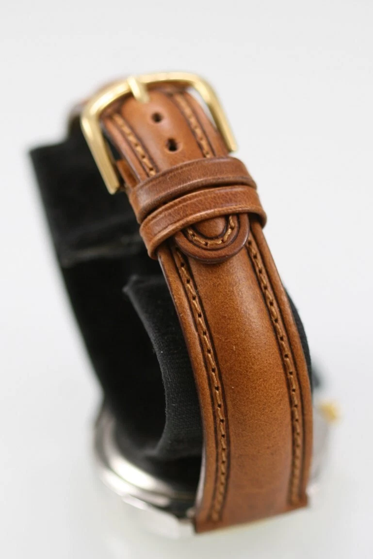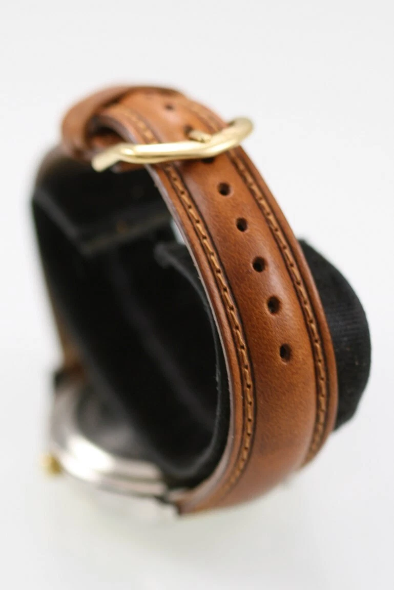 Times Square Men Watch Silver Gold Stainless Leather Brown WR Date White Quartz