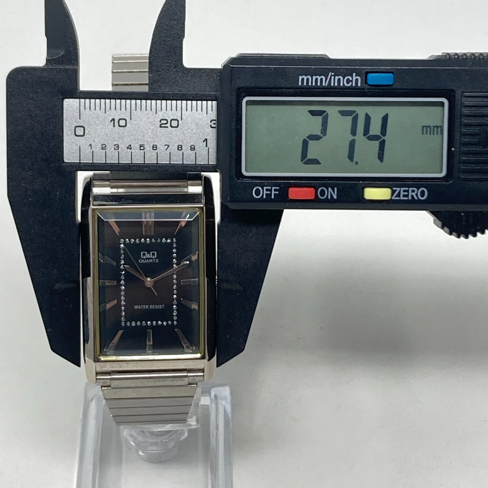 Q&Q Tank Watch Men Women Silver Tone Black Dial Stretch Band New Battery 7.5"