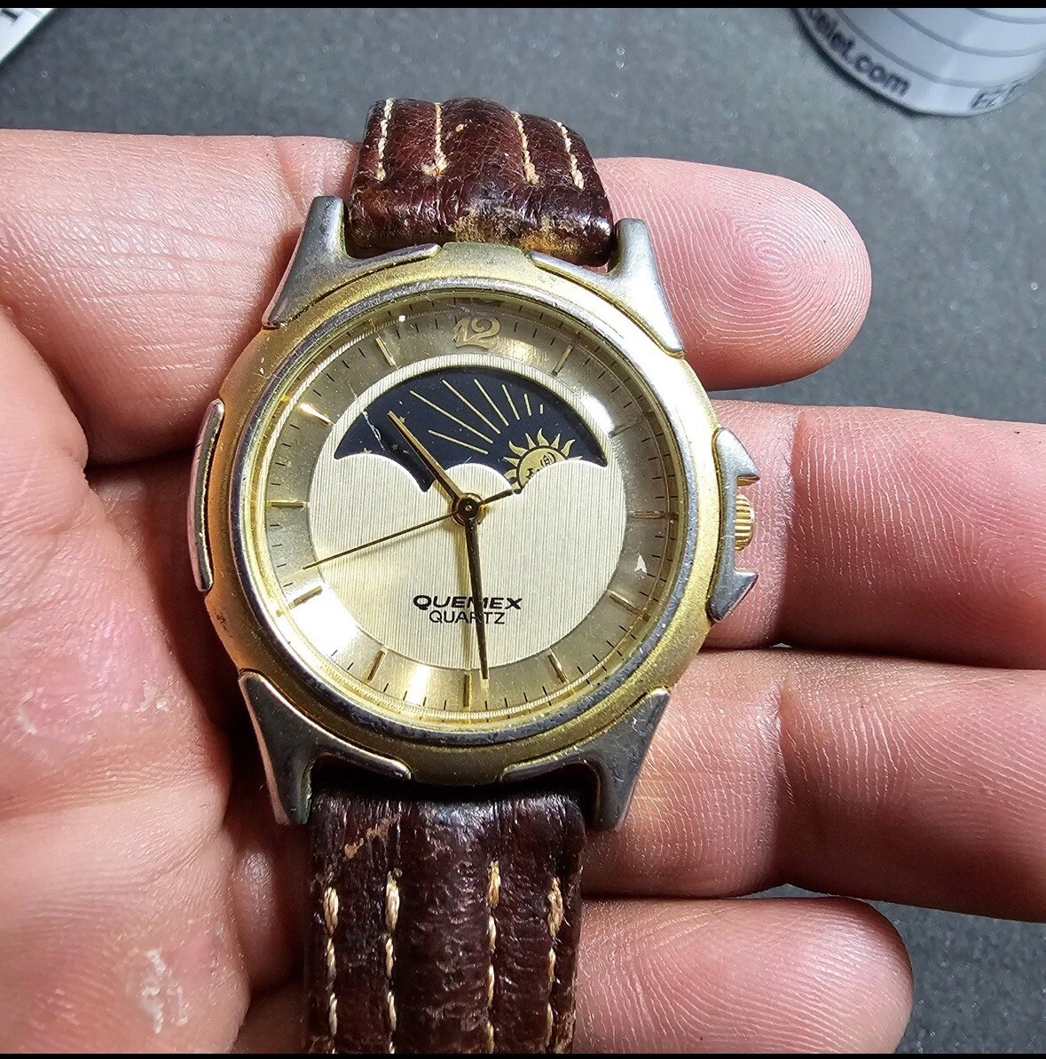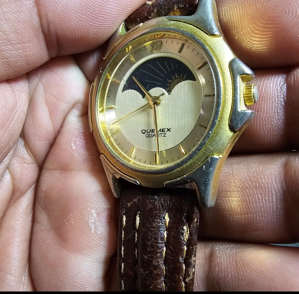 Vintage Quemex Moon / Sun Face Dial Quartz Watch Not Working For Parts Or Repair