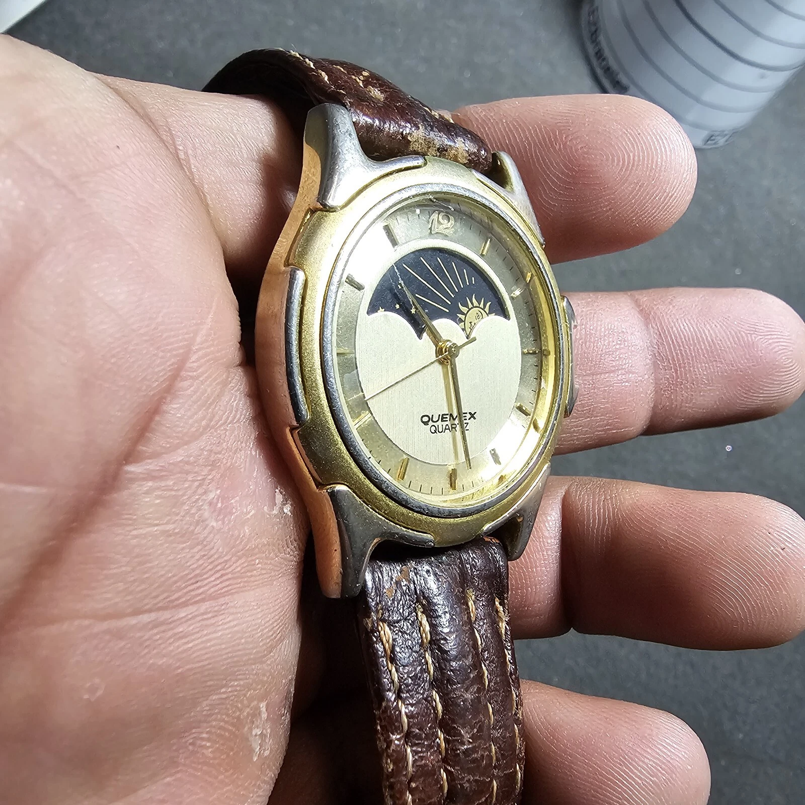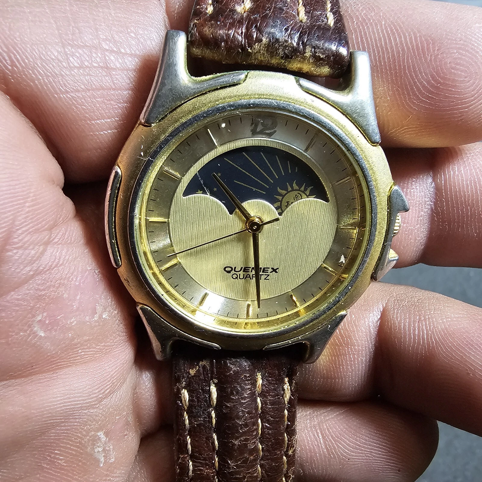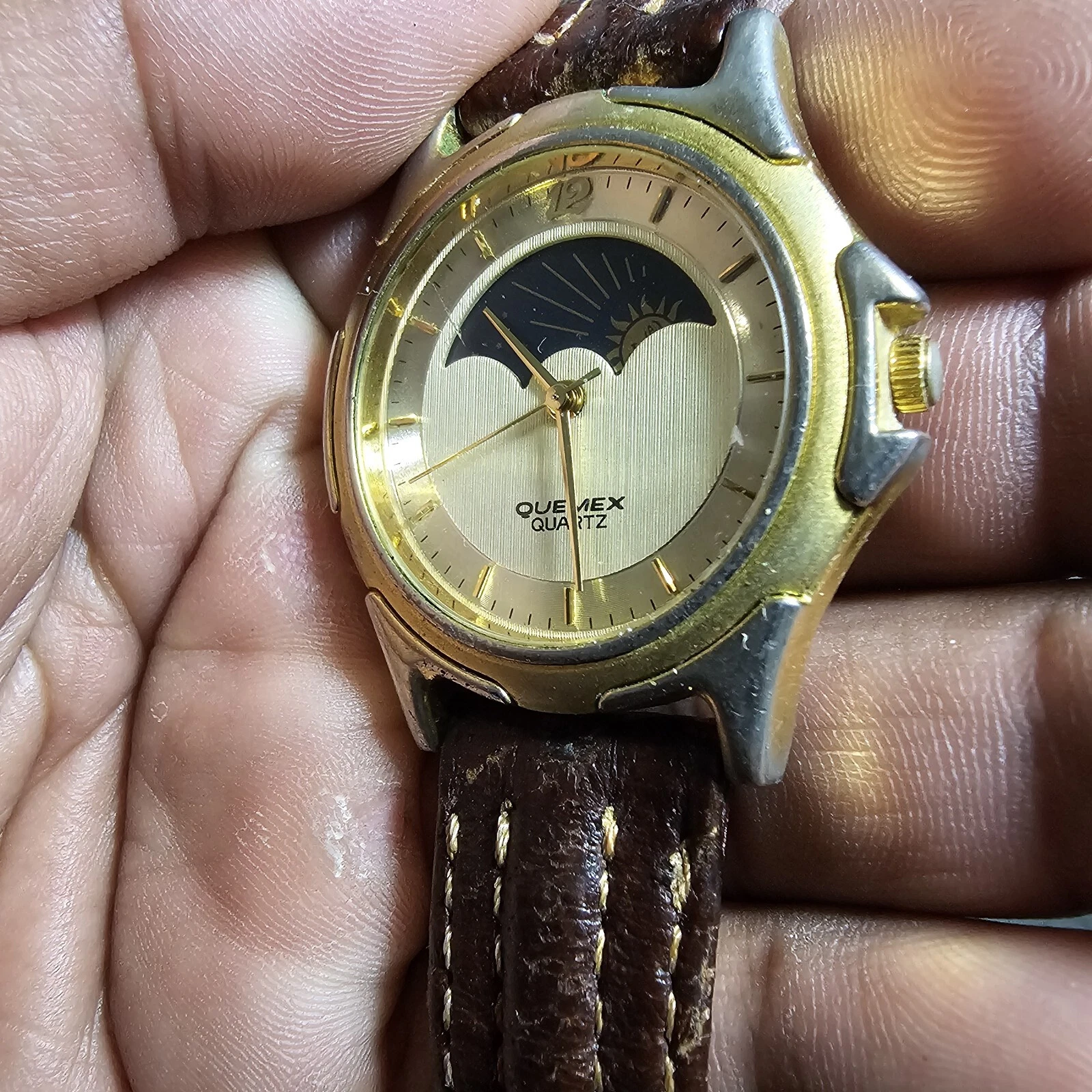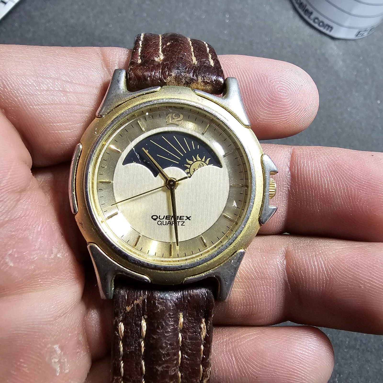 Vintage Quemex Moon / Sun Face Dial Quartz Watch Not Working For Parts Or Repair