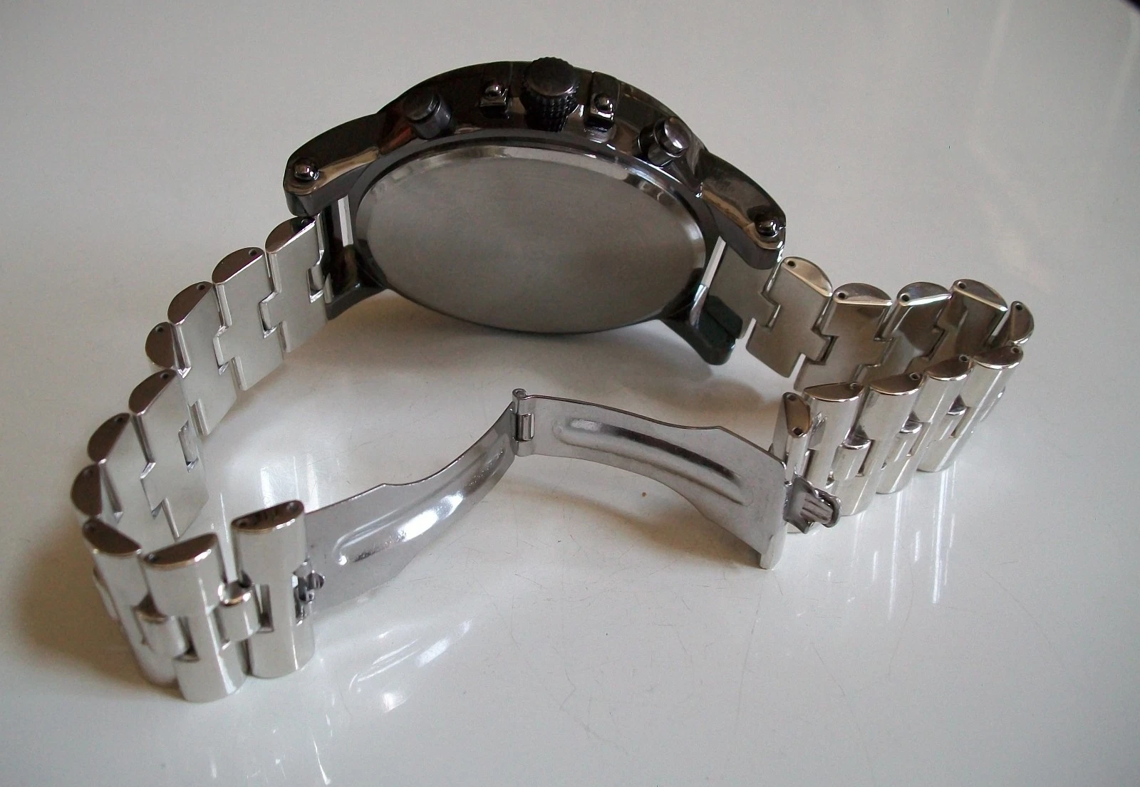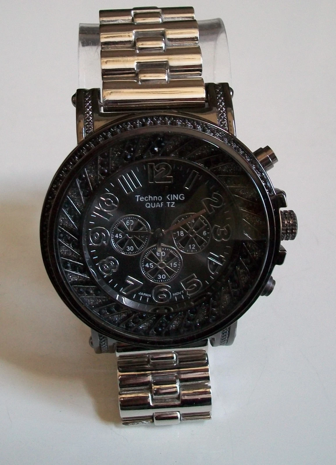 Men's stone black hematite & silver finish bracelet fashion dressy hip hop watch
