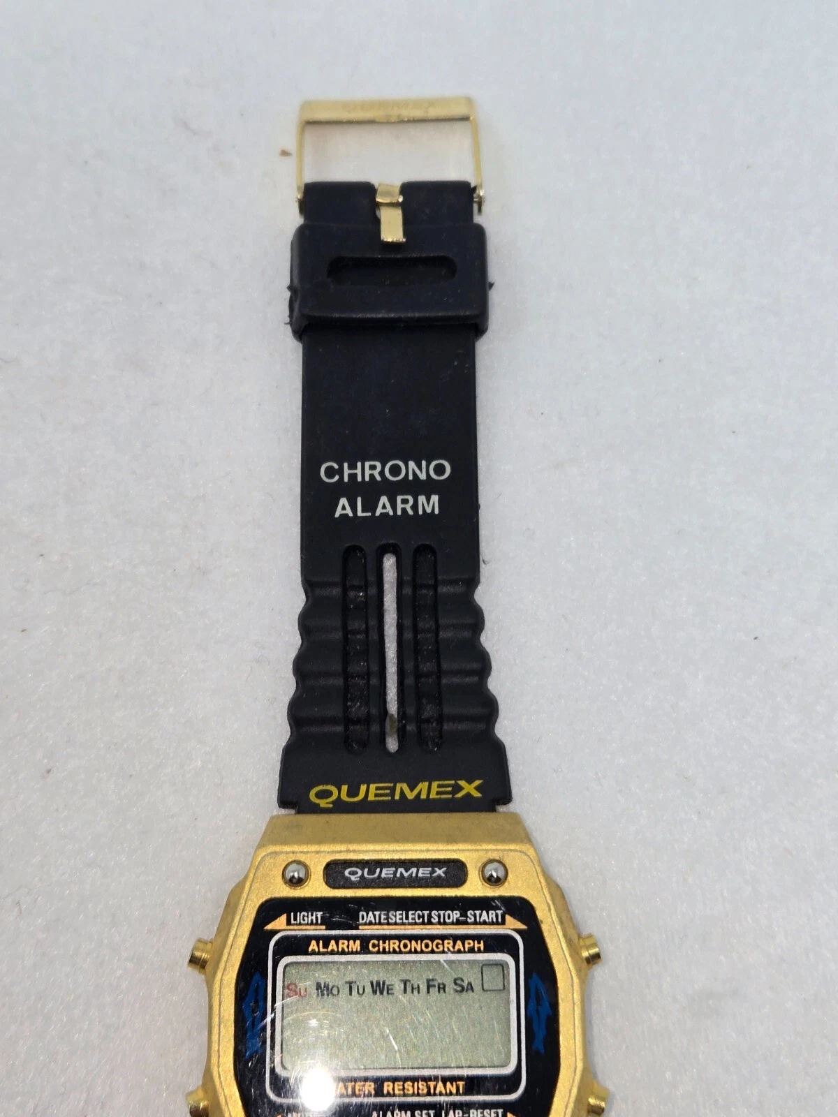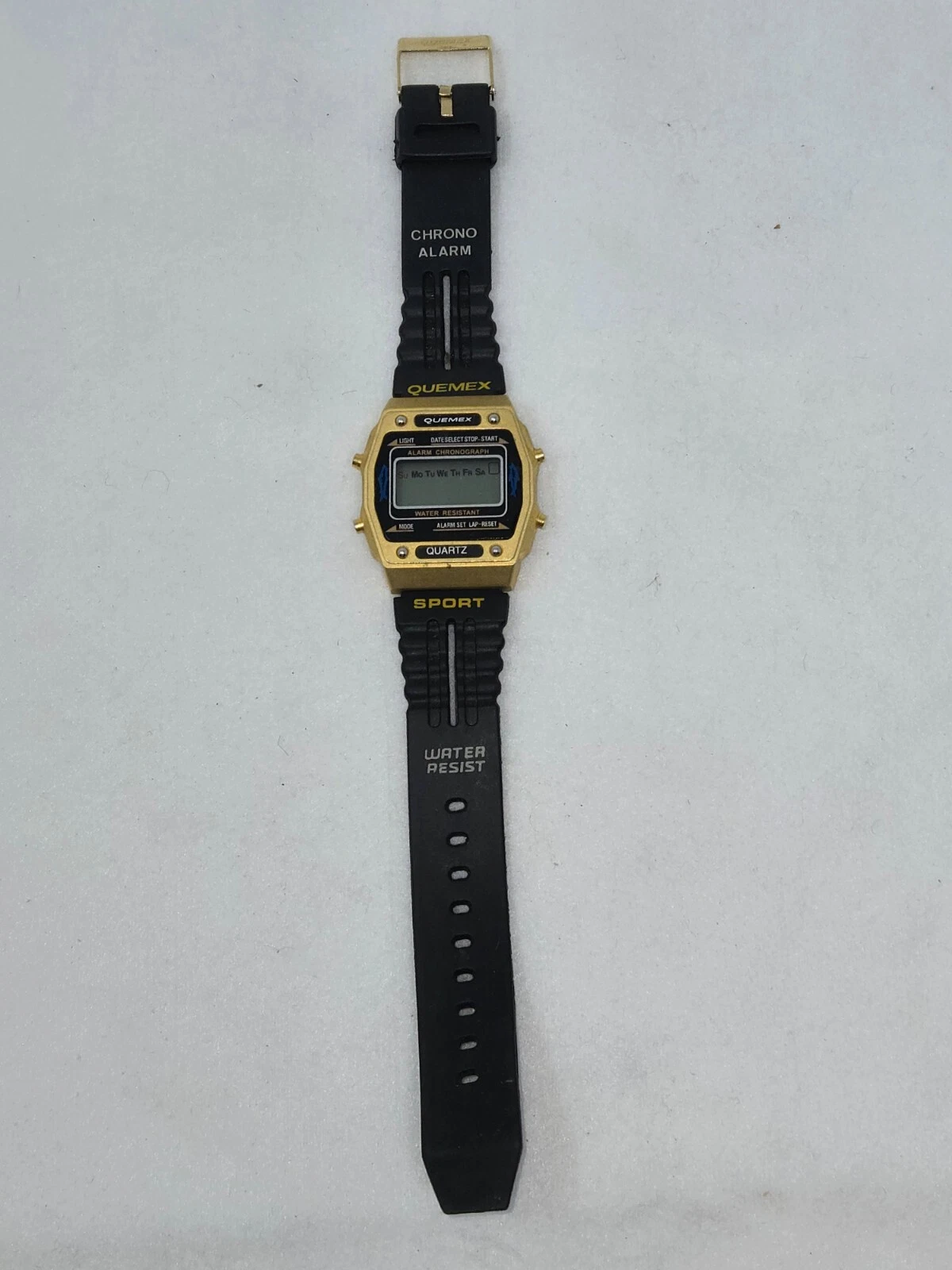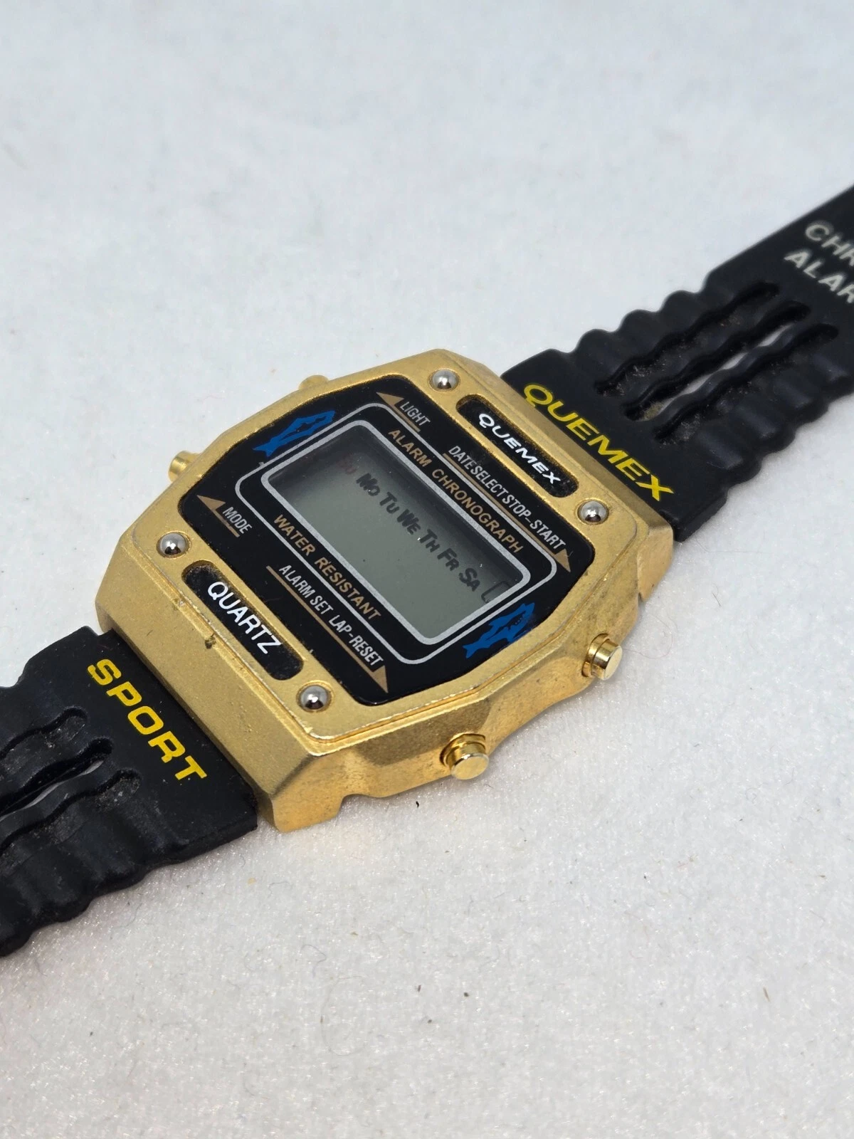 QUEMEX SPORT CHRONO ALARM QUARTZ LCD WRIST WATCH WATER RESISTANT 80'S-90'S