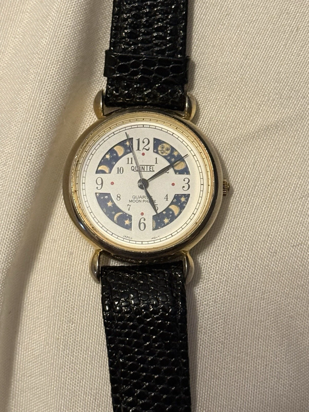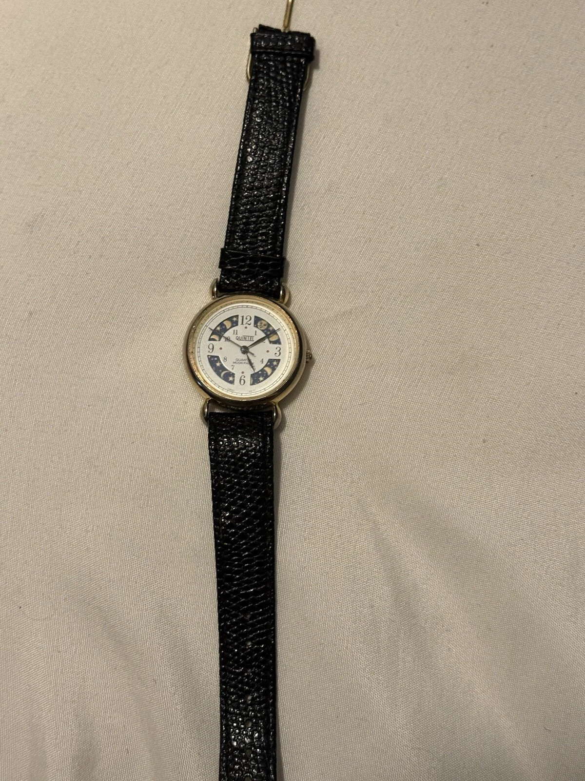 Vintage Quintel Quartz Rotating Moon Phases Quarter Full Moon Watch New Battery