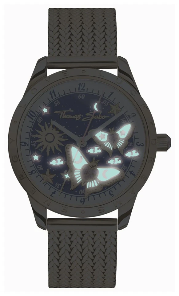 Thomas Sabo Glowing Butterflies (33mm) Blue Dial / Gold PVD WA0430-291-207 Watch