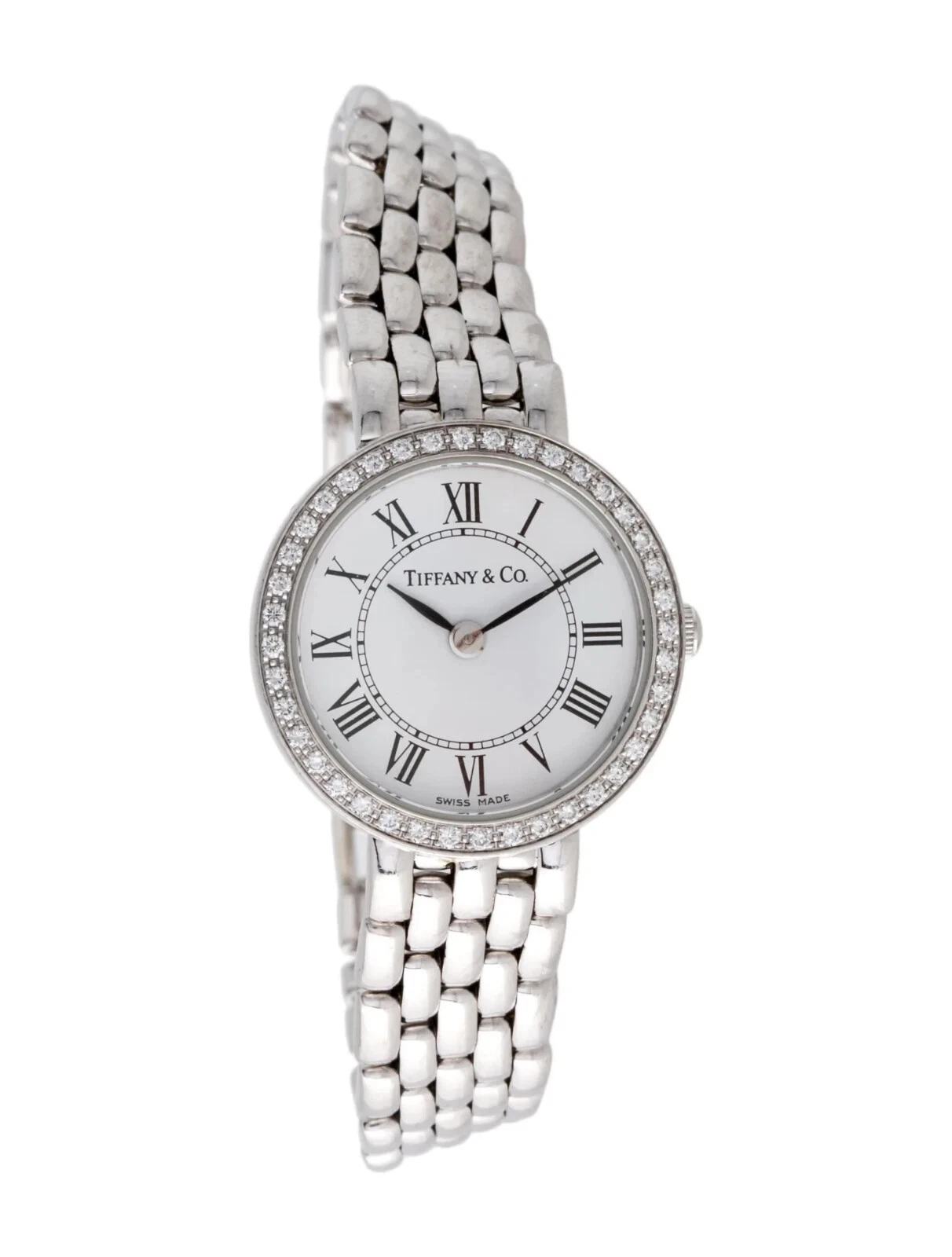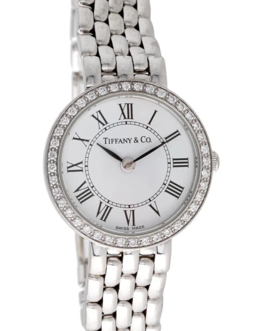 Tiffany&Co Diamond Solid 14k White Gold Bracelet Ladies Cocktail Atlas Watch vtg