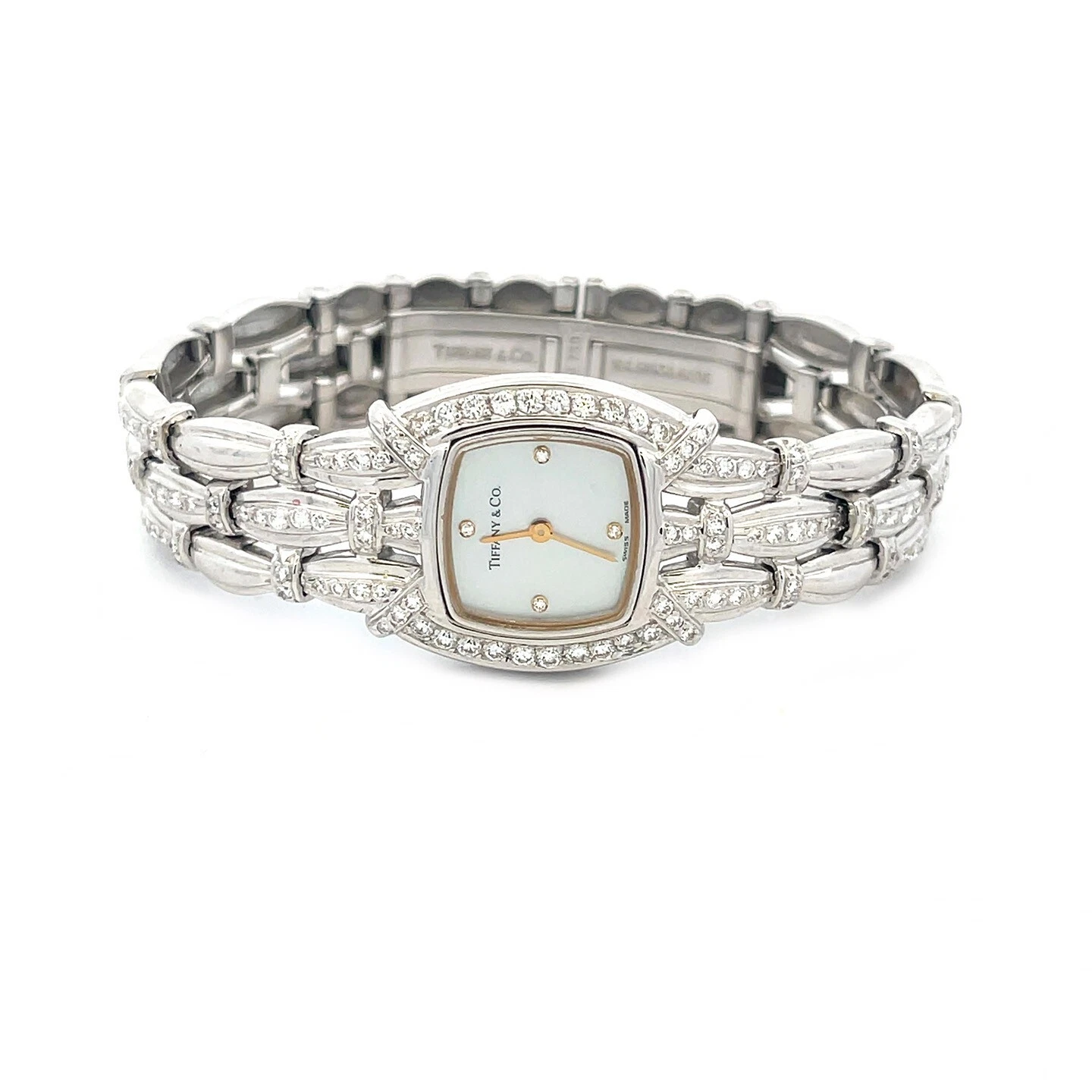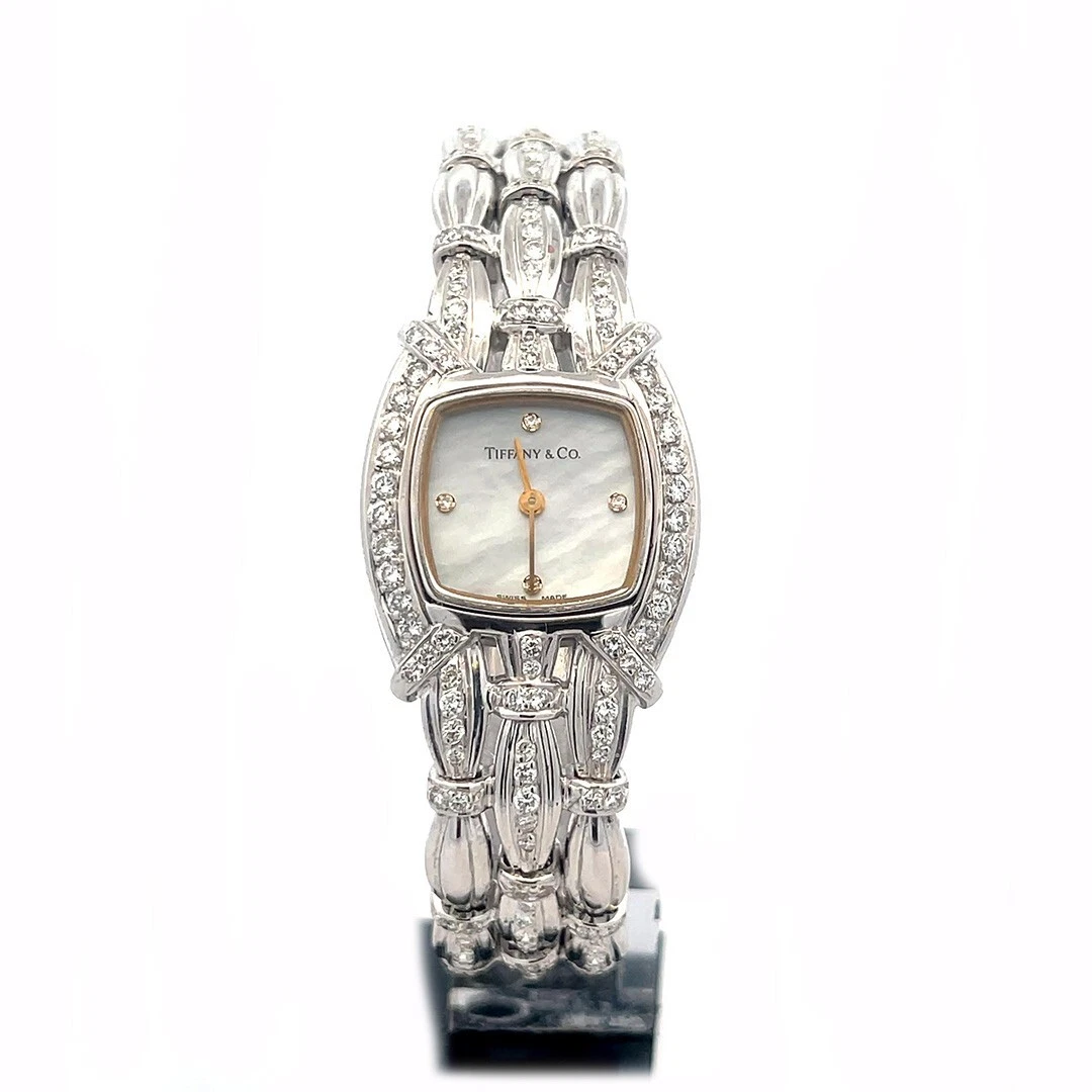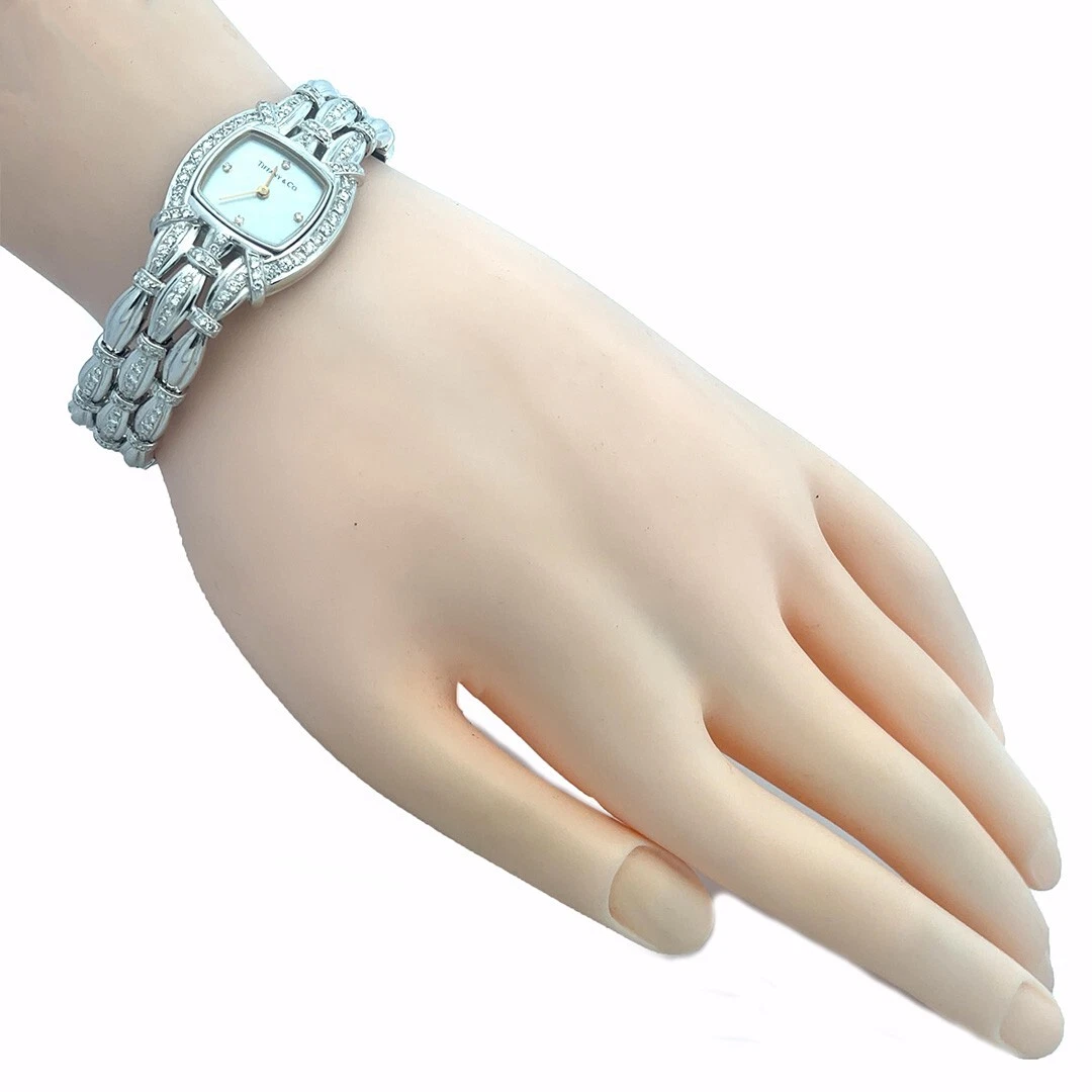 Tiffany & Co. Diamond Gold Watch 18k White Ladies MOP Dial Quartz