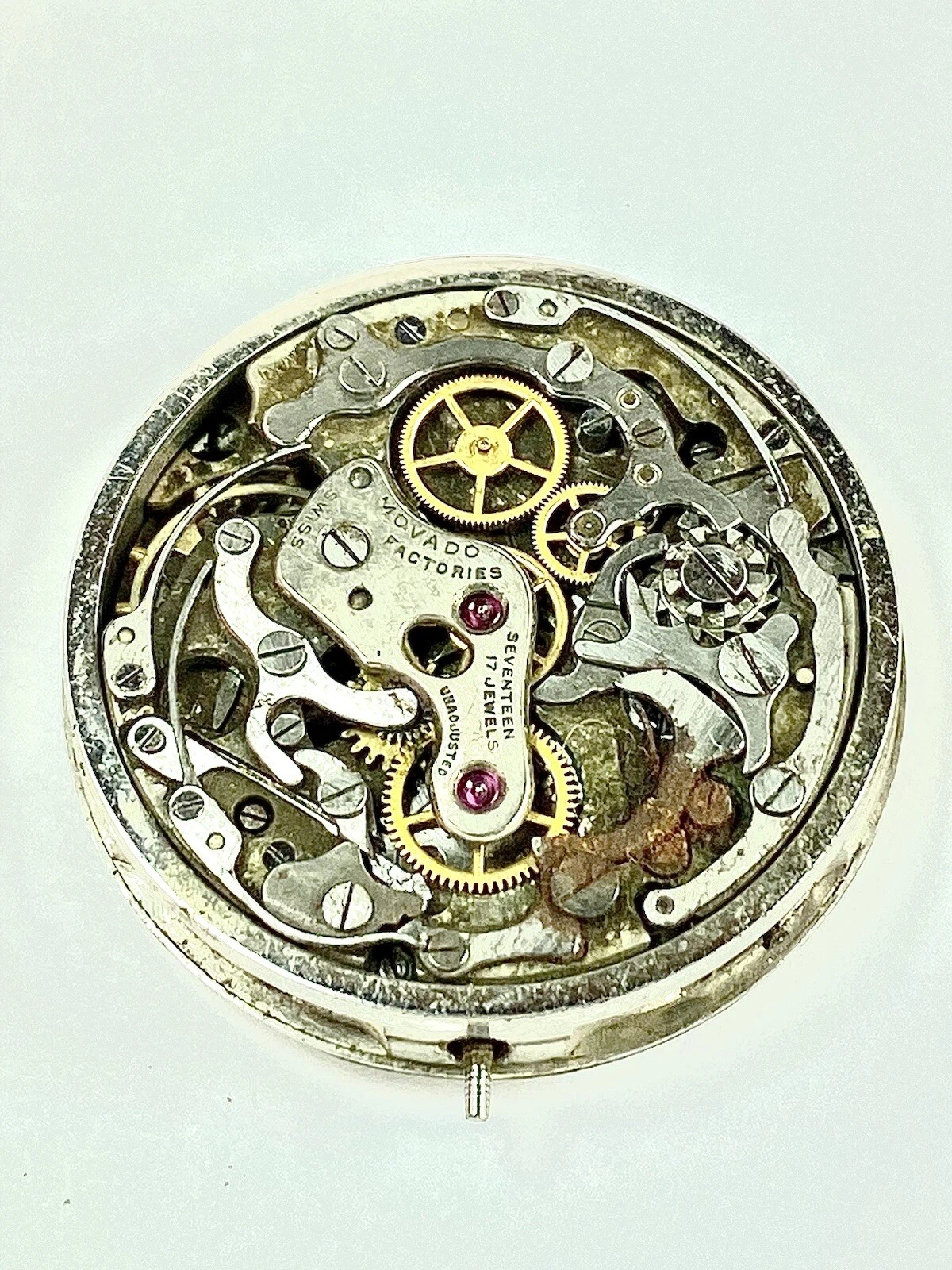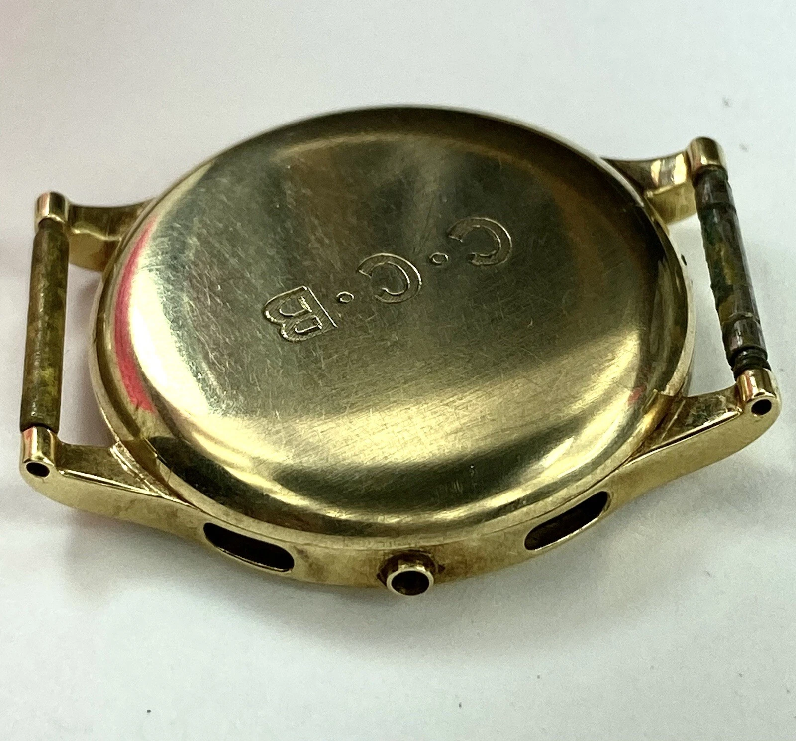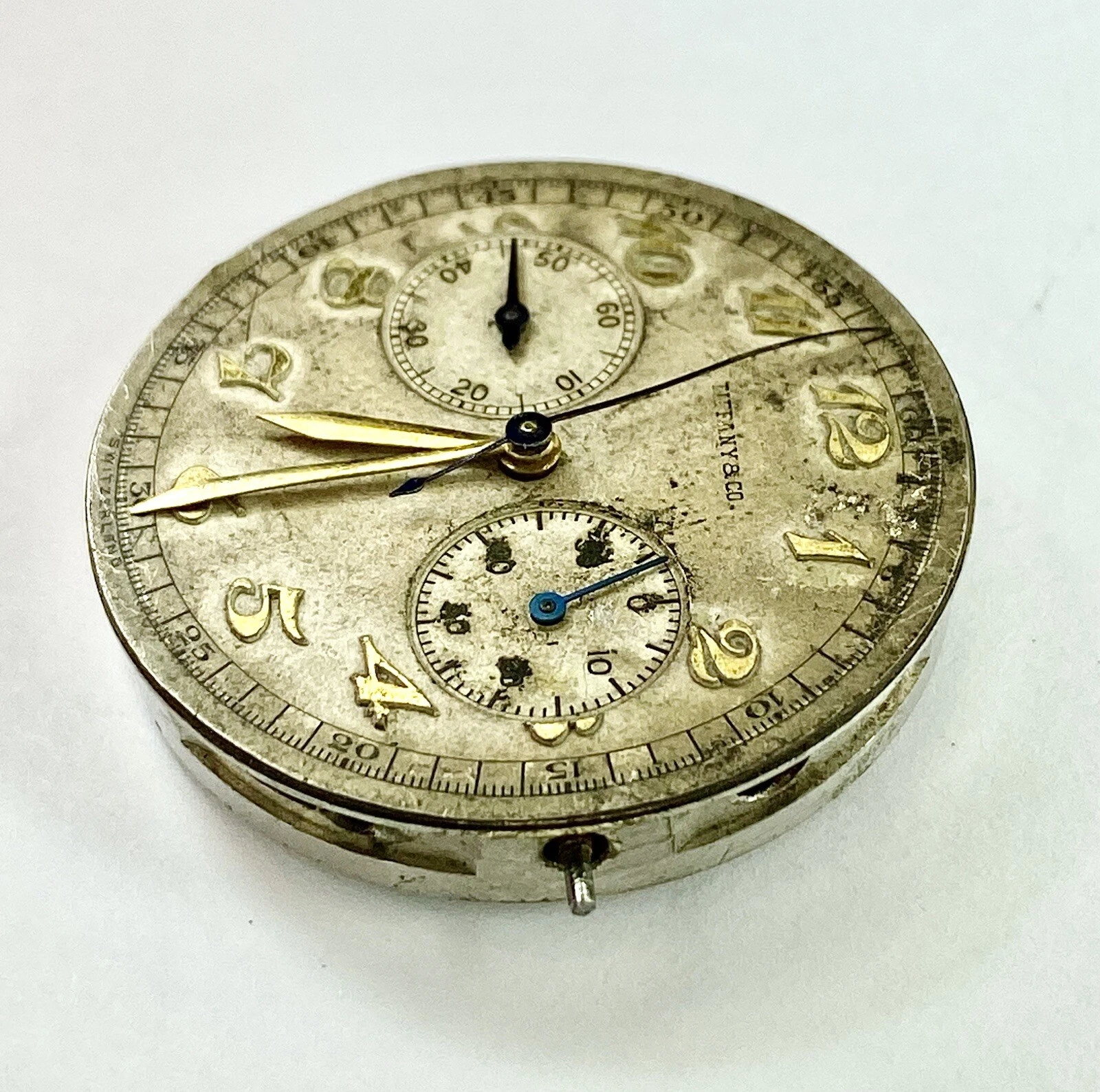 RARE{c.1938-49} 14K *TIFFANY+MOVADO* CHRONOGRAPH~GOLD BackCASE~M90*RUNS*4Restore