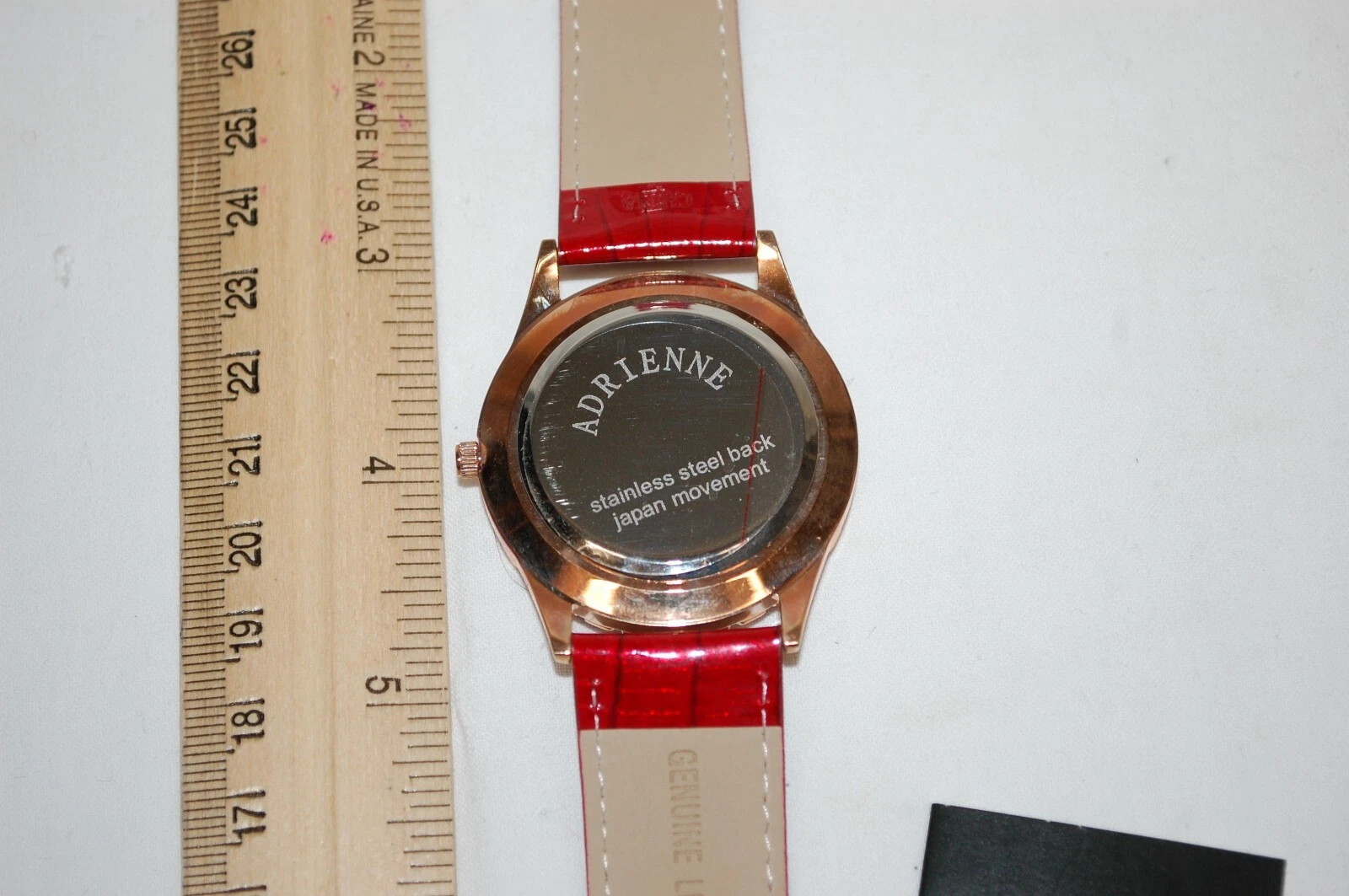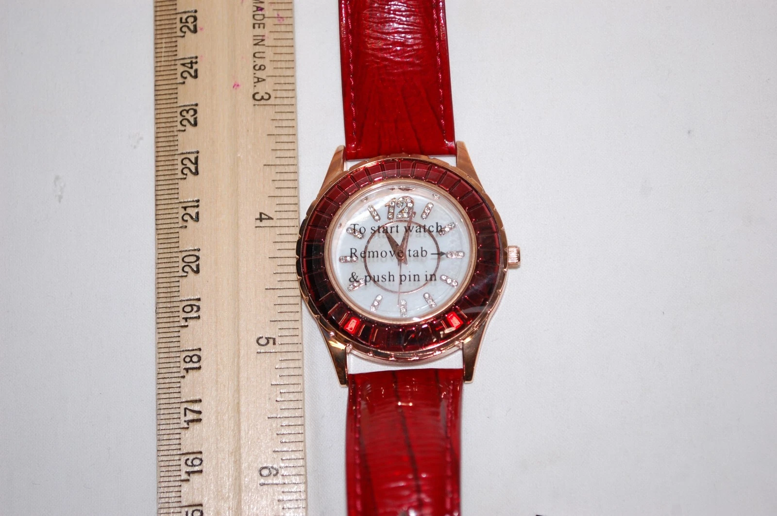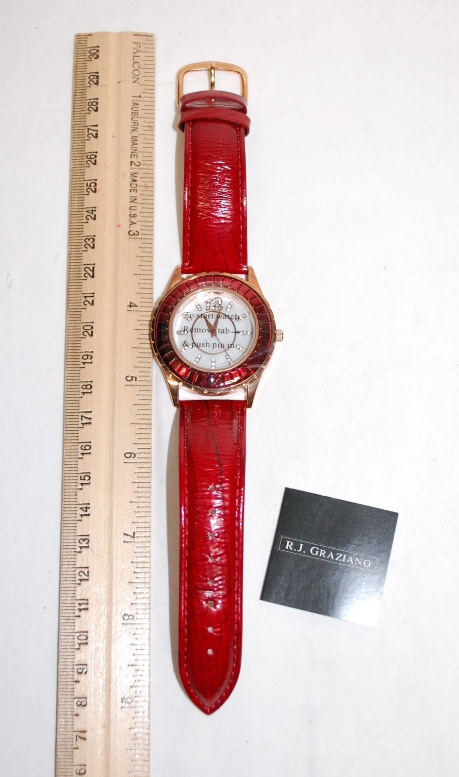 R. J. Graziano Men's Wristwatch Copper Colored & Rhinestones Red Leather band