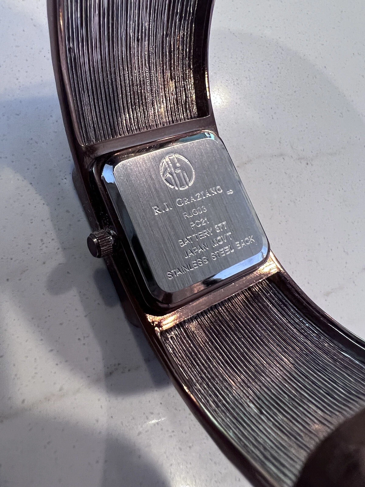 RJ Graziano Quartz Stainless Steel Back Copper Brown Rhinestone Bezel Cuff Watch