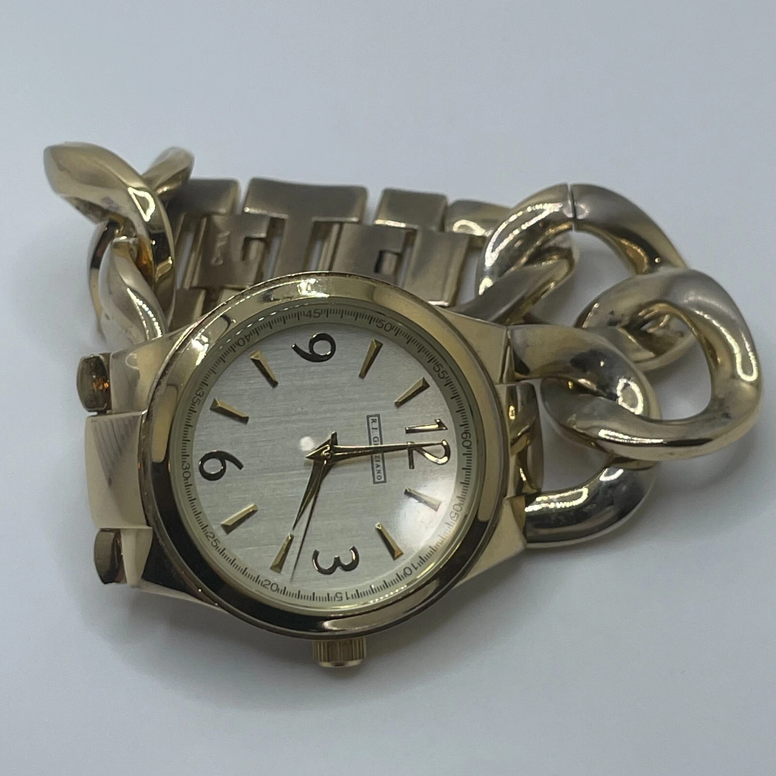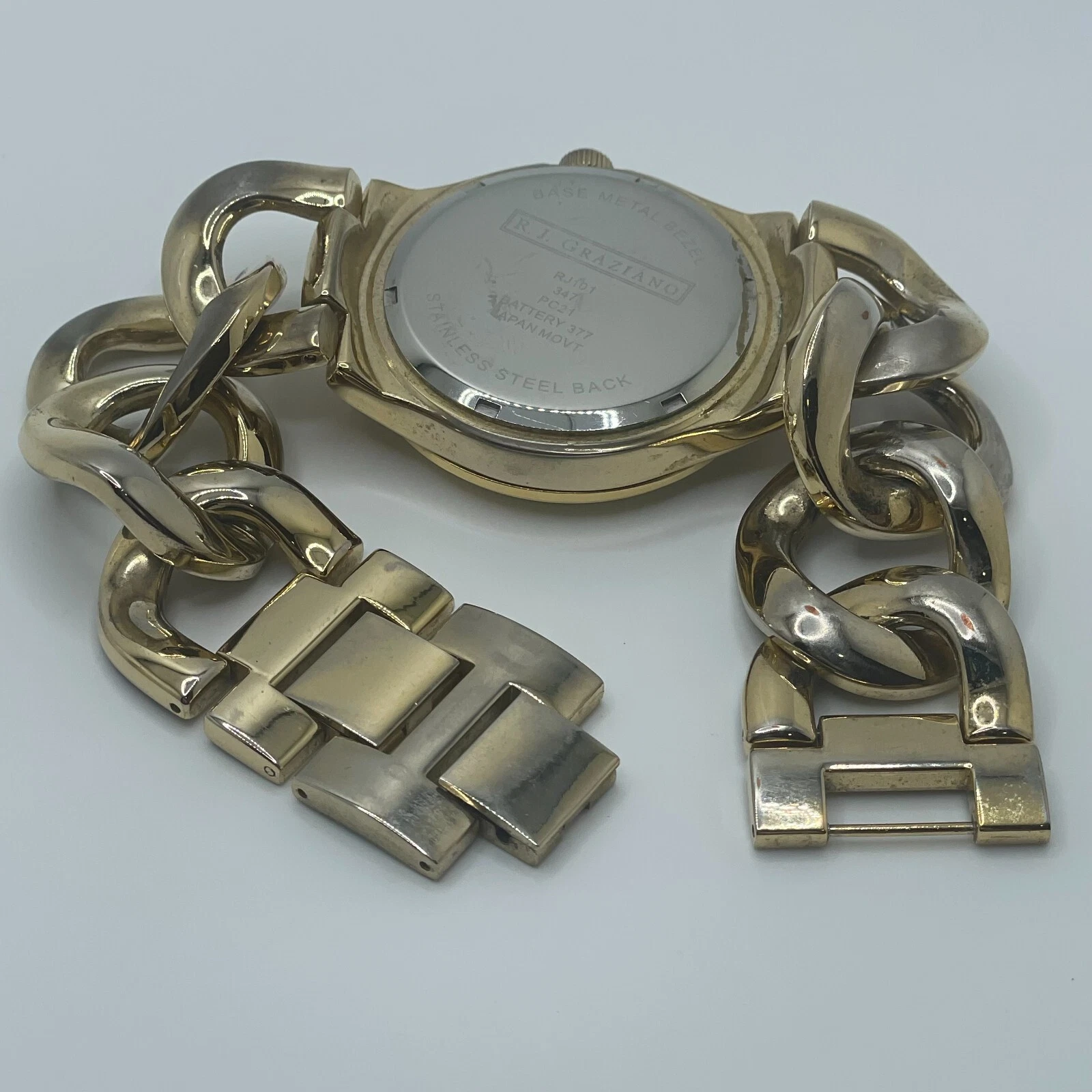 R.J. Graziano Watch Womens 38mm Gold Tone Case Dial Band Quartz Analog