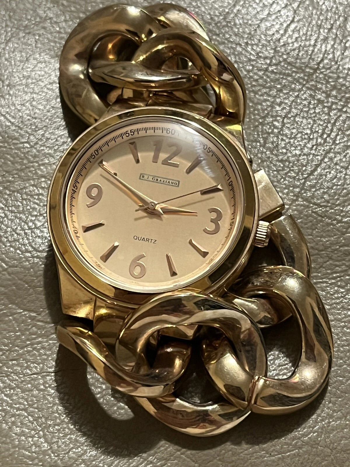 RJ Graziano watch metallic gold tone chain link bracelet RJ102