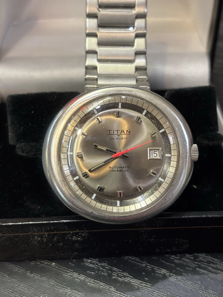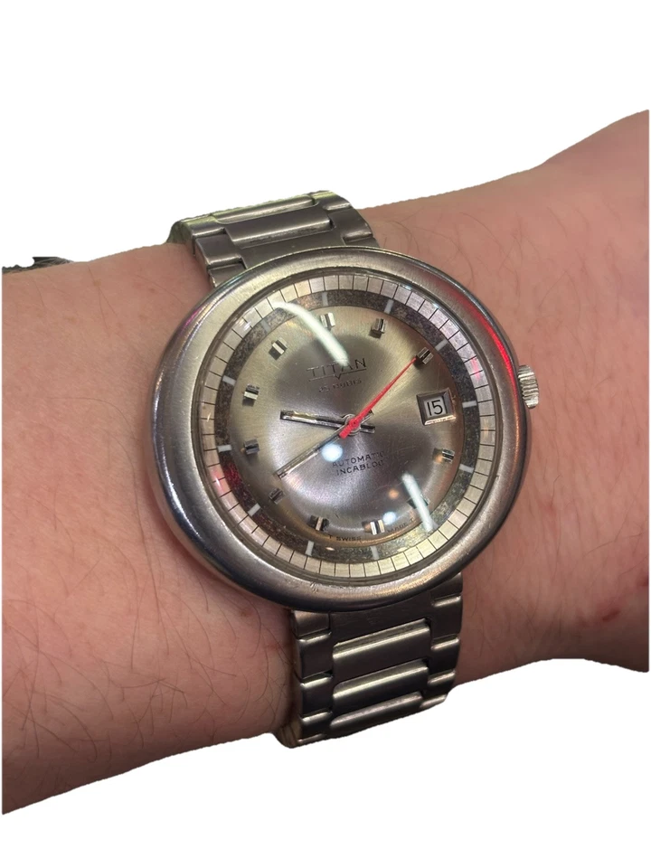 Gents Vintage Automatic Titan UFO Cased Stainless Steel Date Watch Working