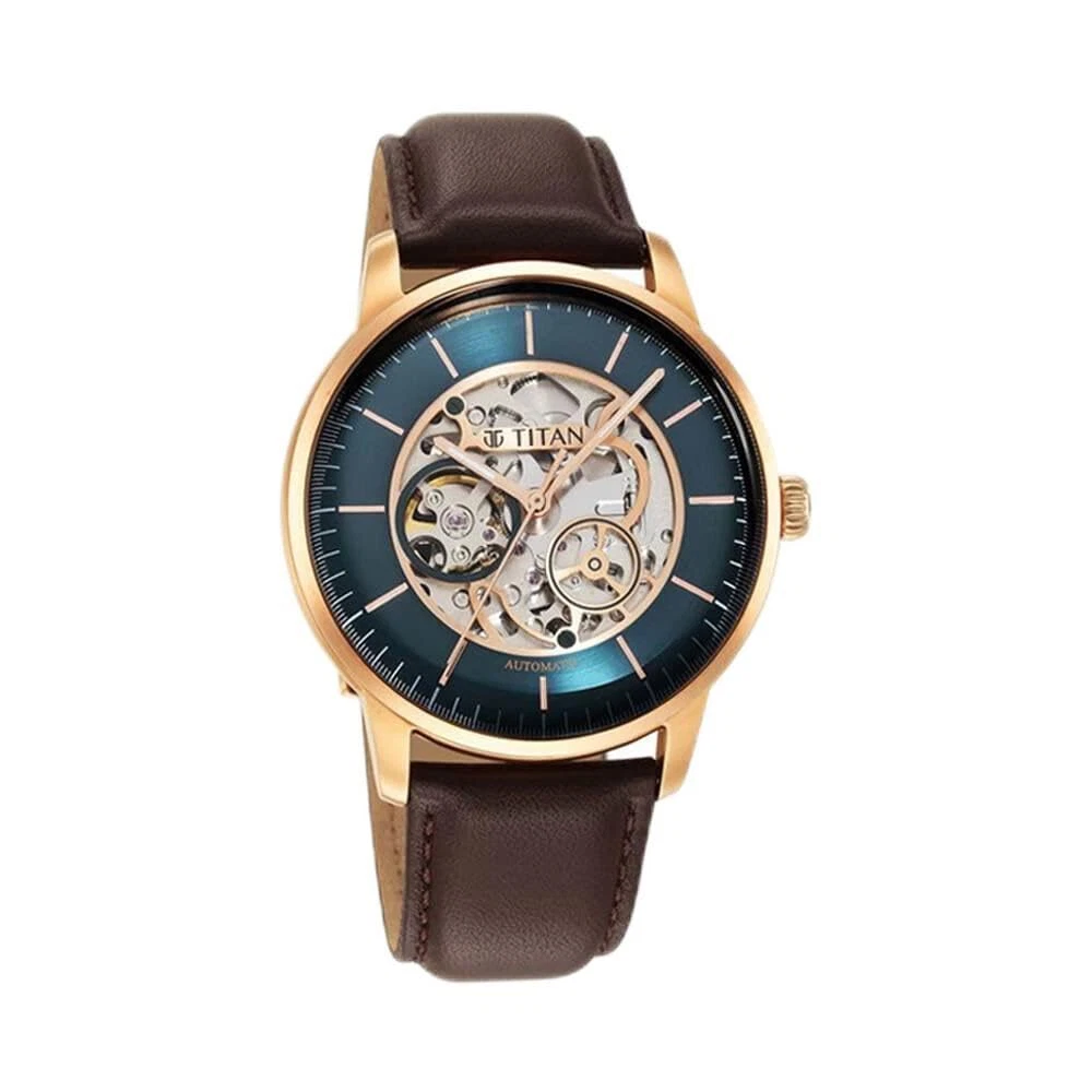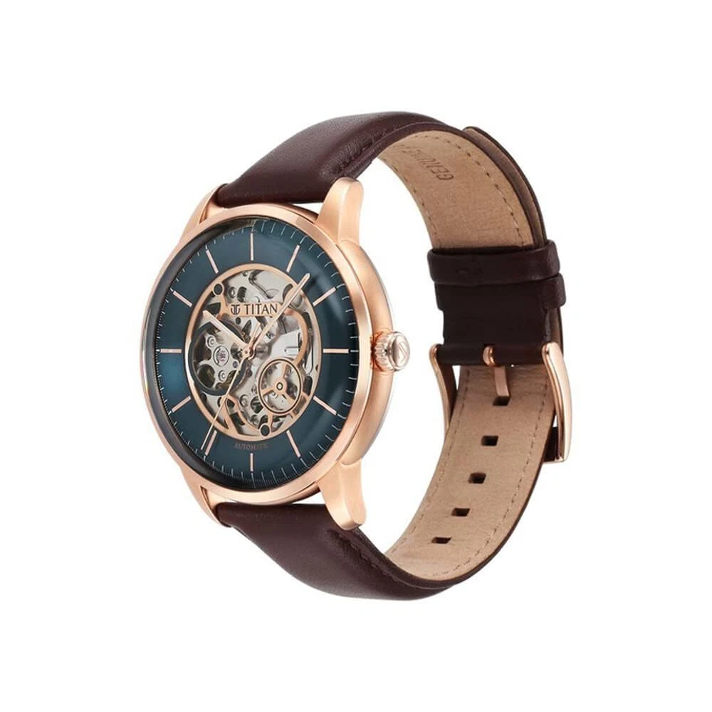 Titan Mens Analog Green Dial Brown Band Leather Watch