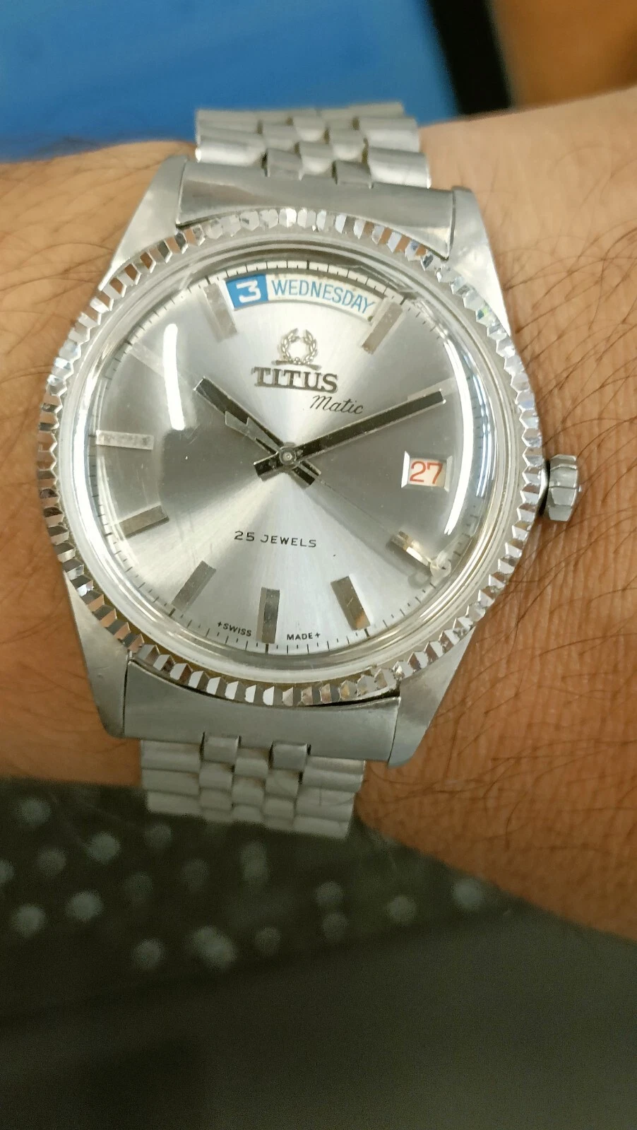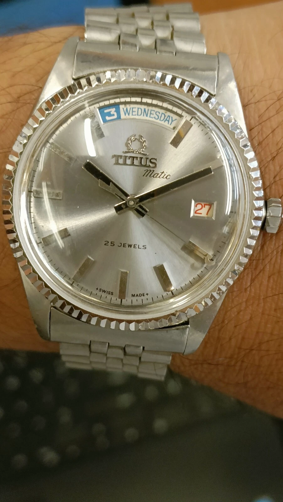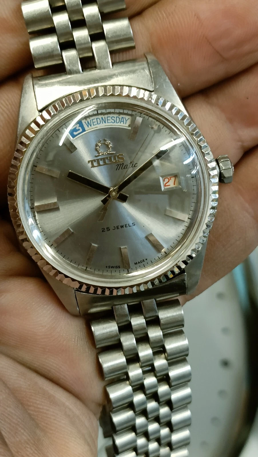 Authentic Titus Matic 25 Jewels Swiss Automatic Gray Dial President Men's Retro