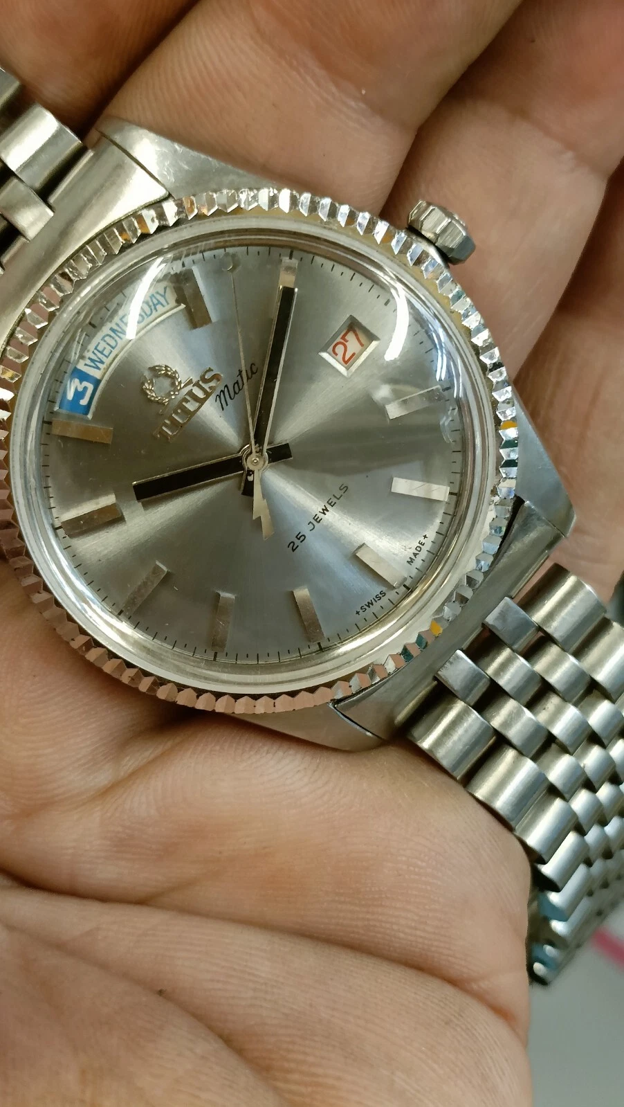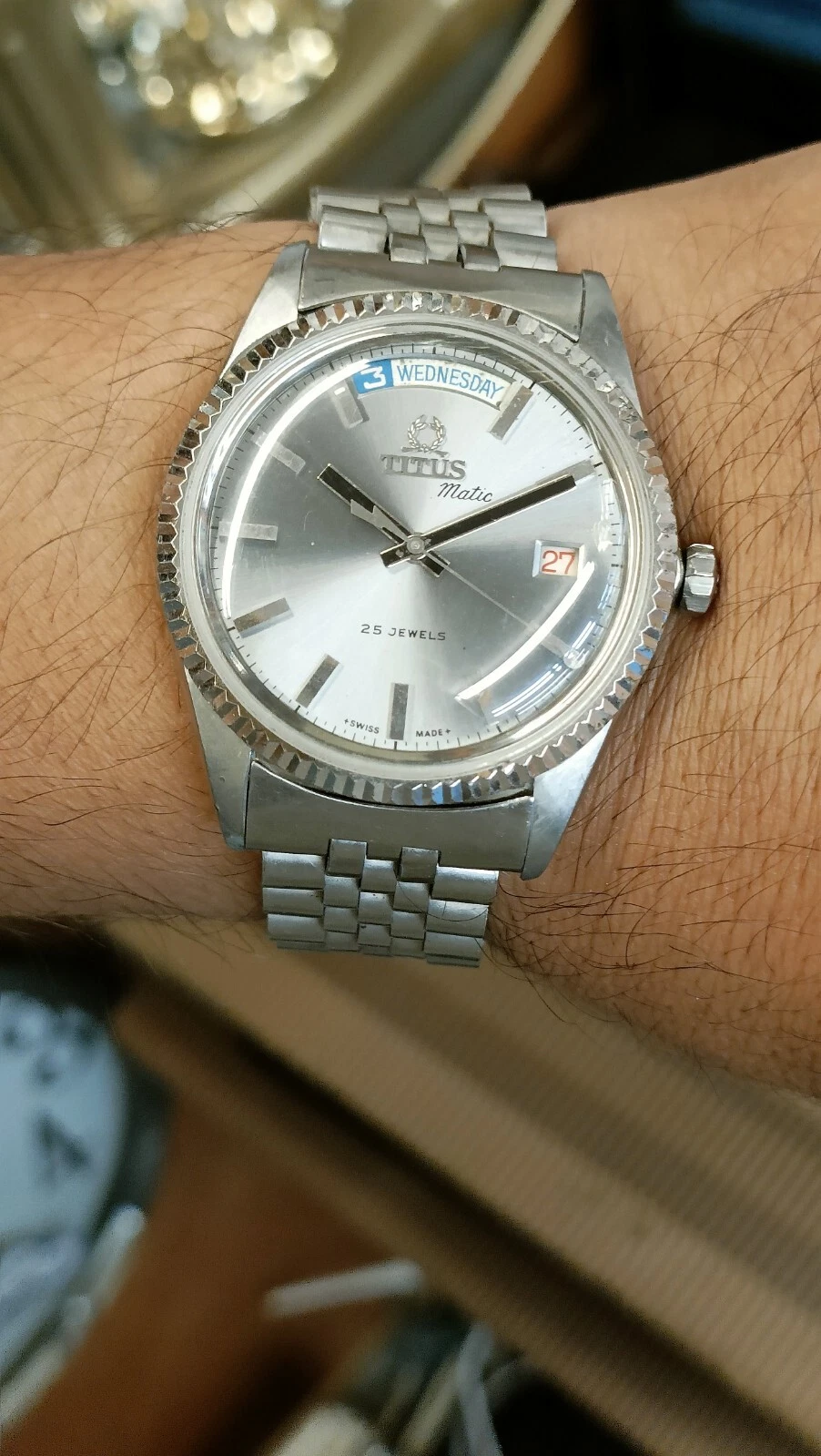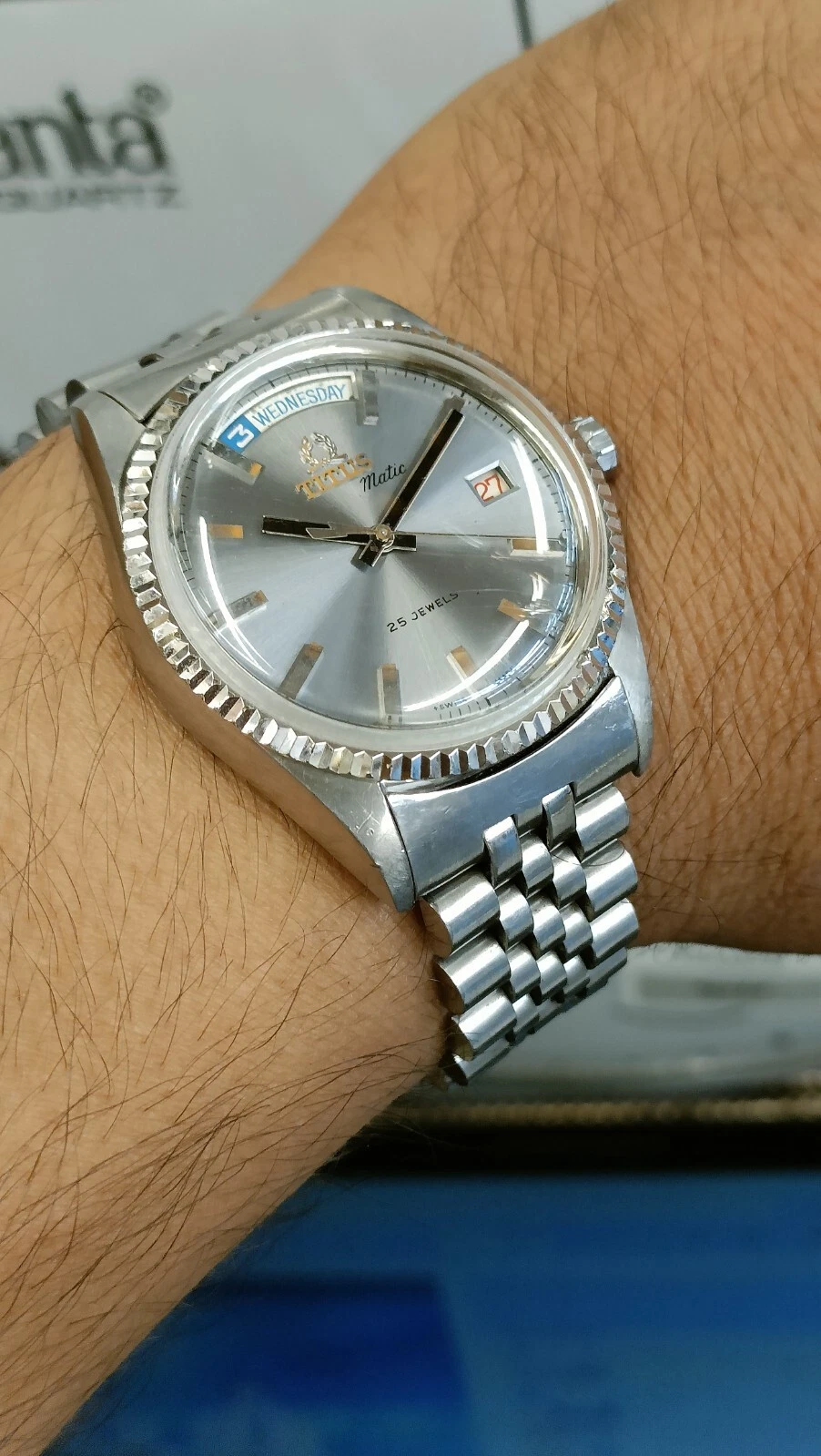 Authentic Titus Matic 25 Jewels Swiss Automatic Gray Dial President Men's Retro