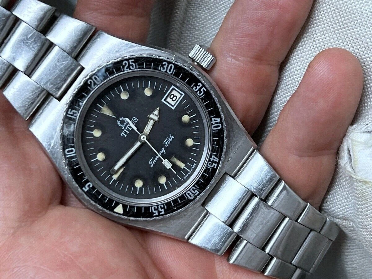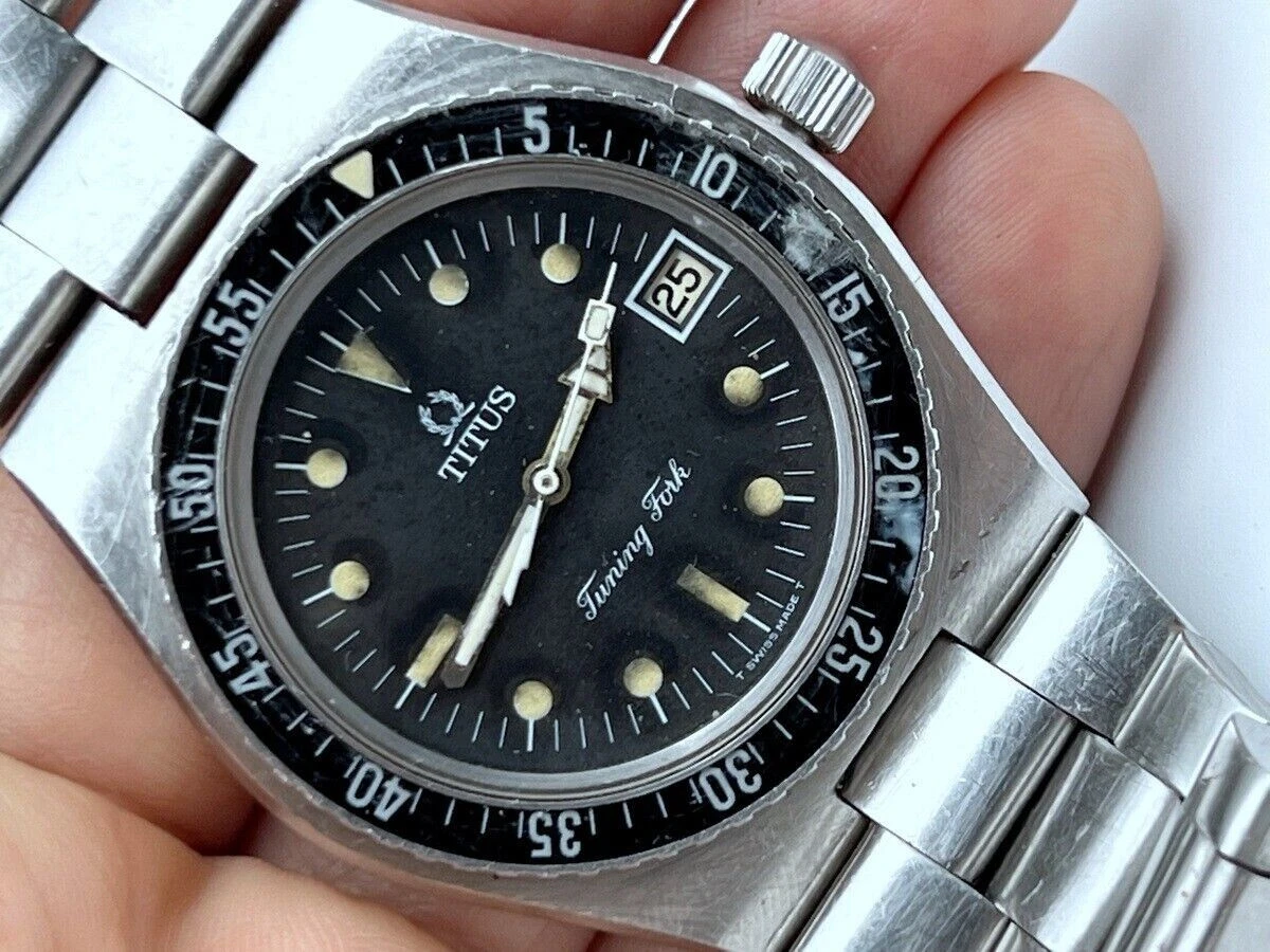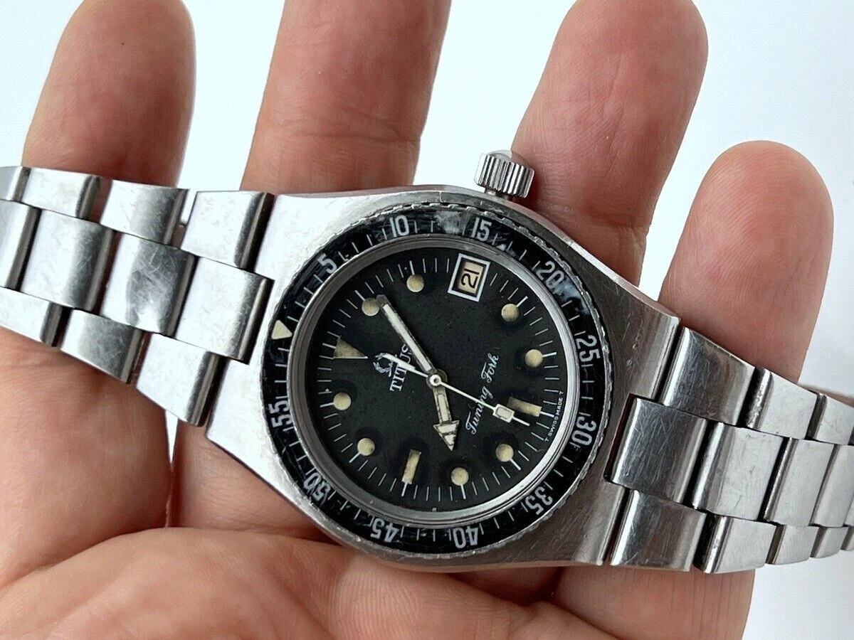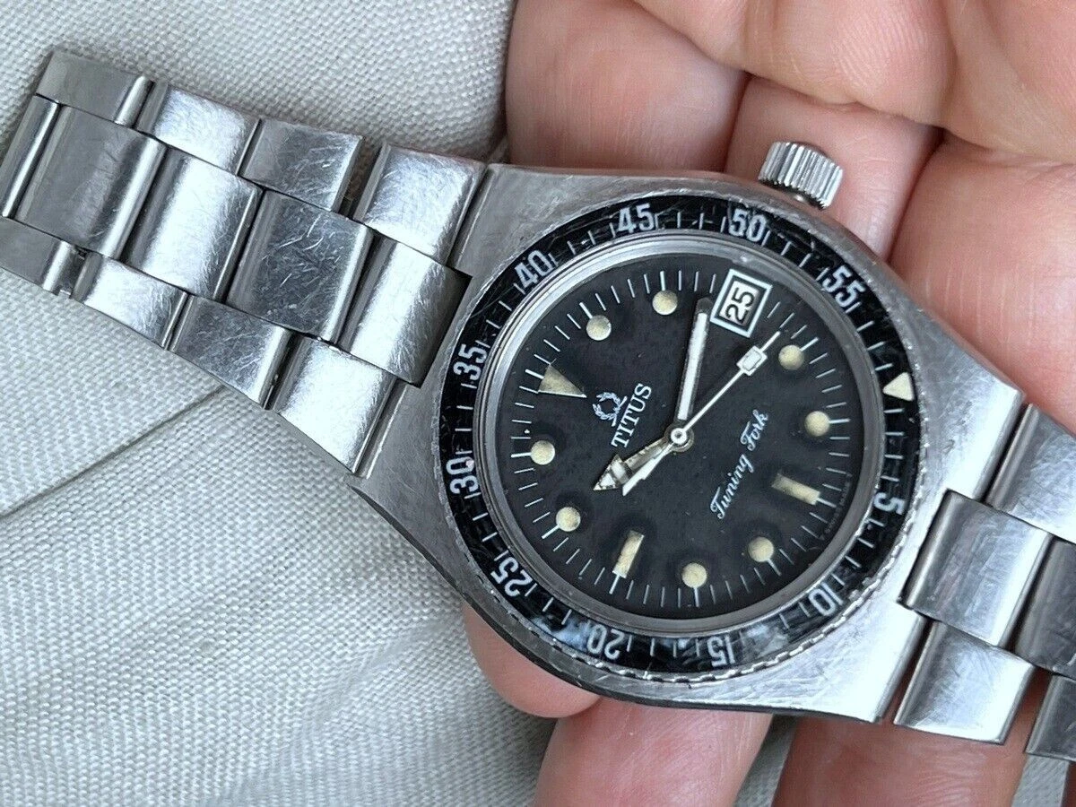 VINTAGE RARE TITUS TUNING FORK DIVERS 42MM REF. 9322 ESA-9162 JUST SERVICED L@@K