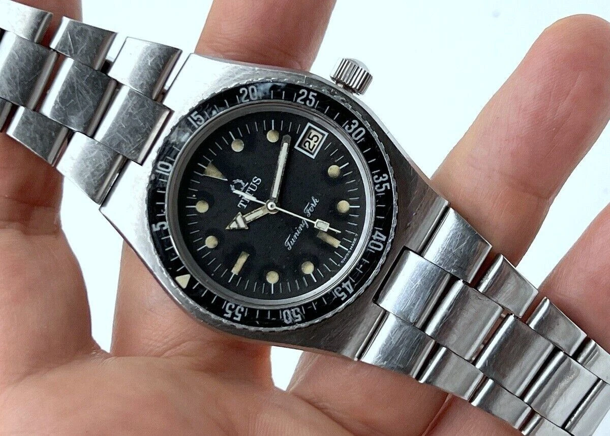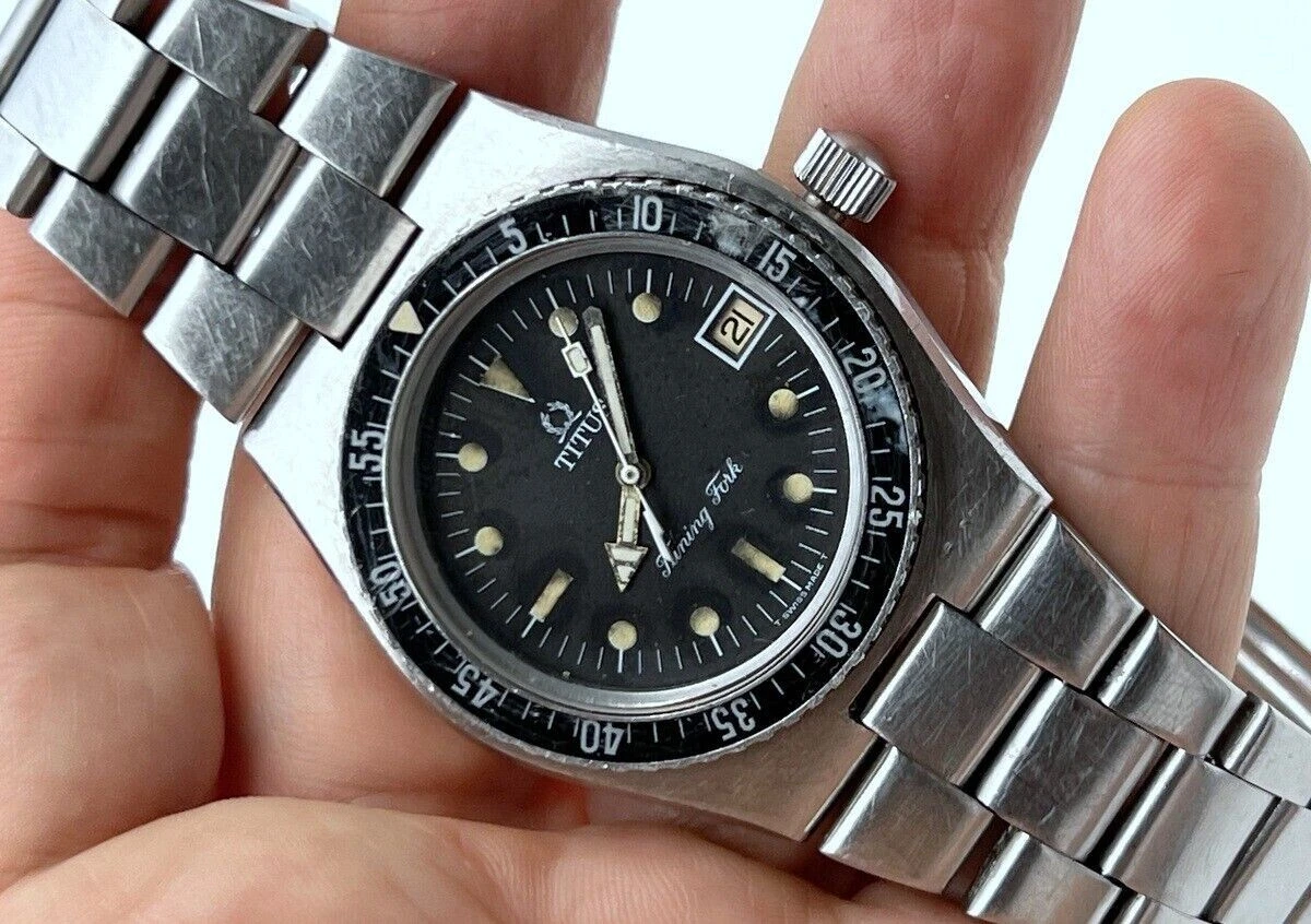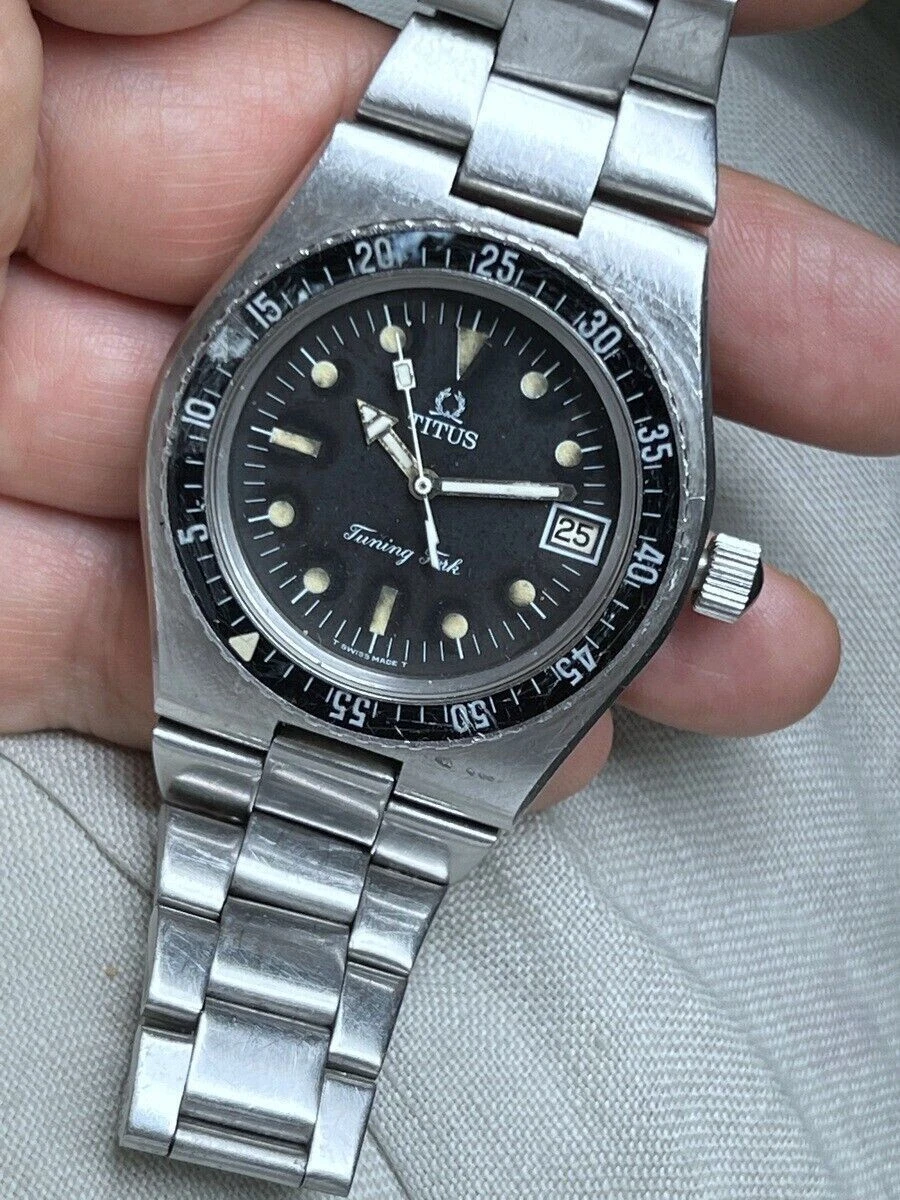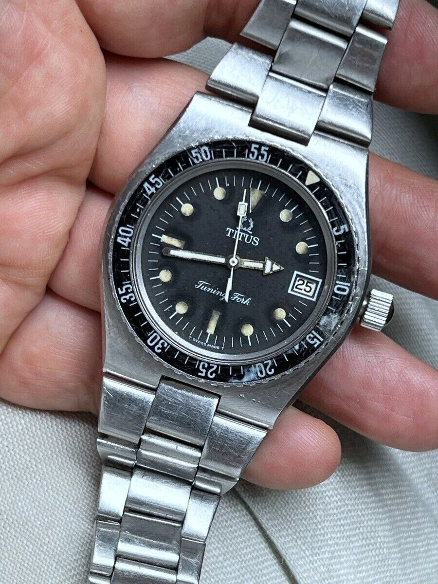VINTAGE RARE TITUS TUNING FORK DIVERS 42MM REF. 9322 ESA-9162 JUST SERVICED L@@K