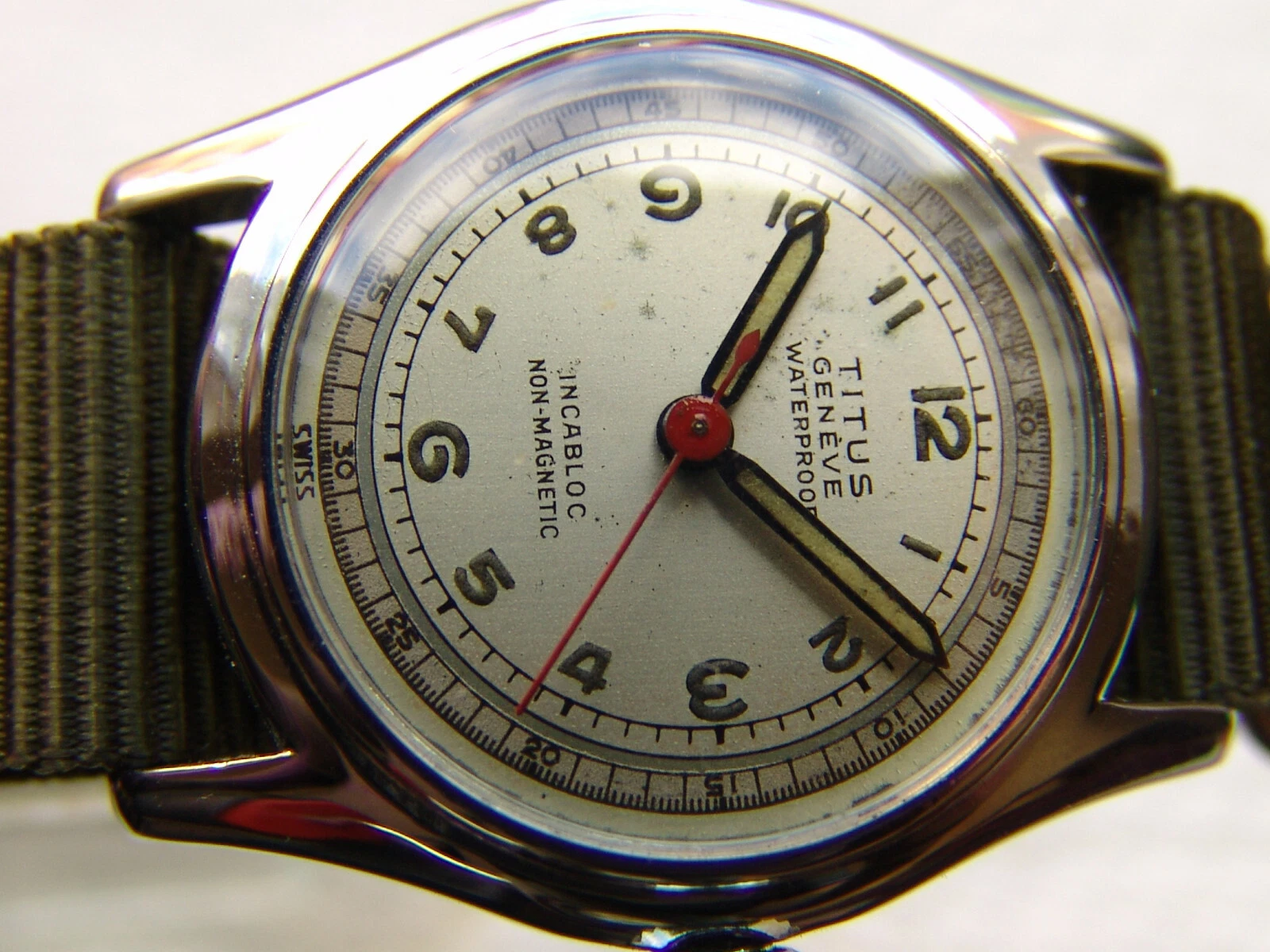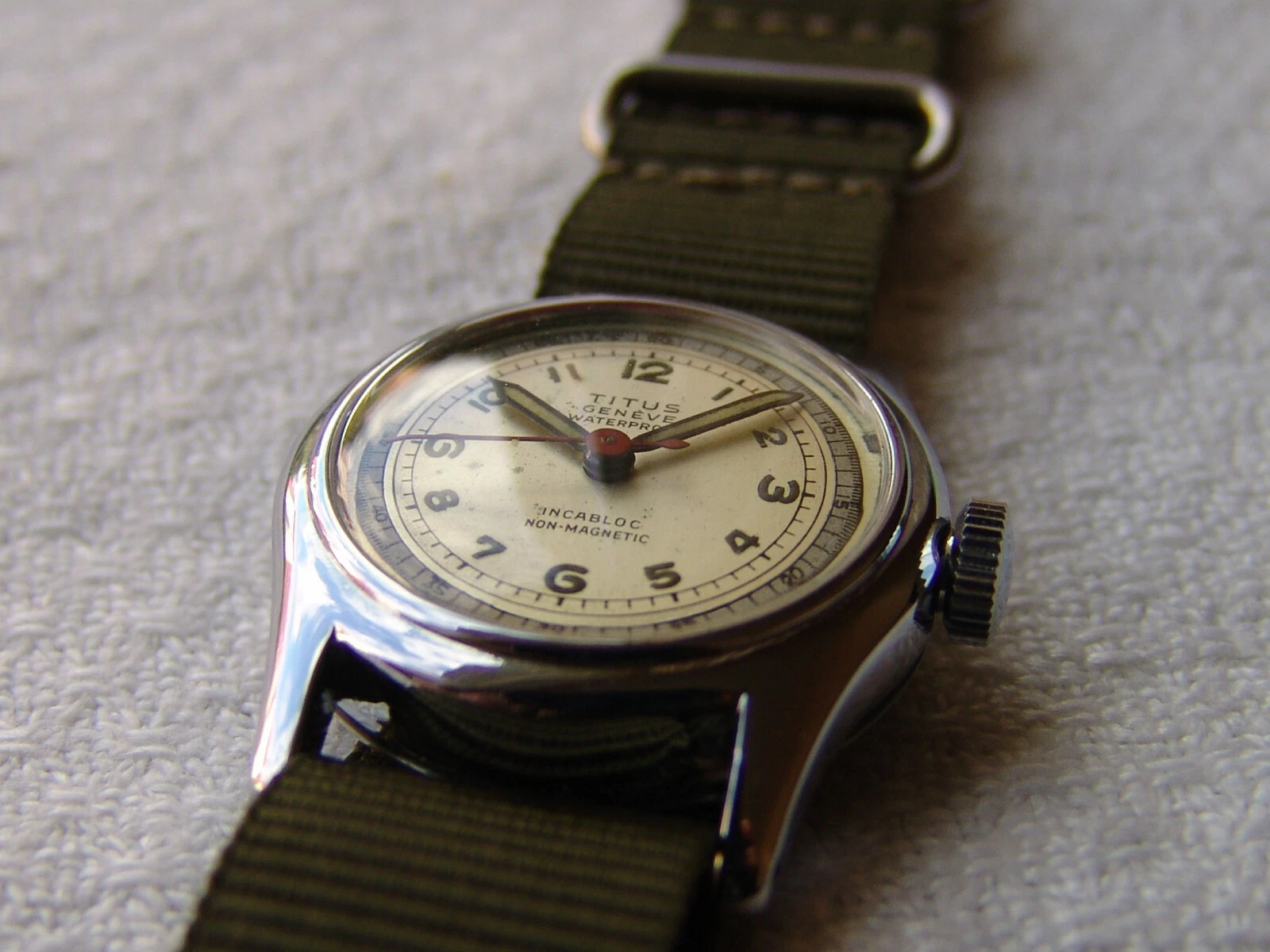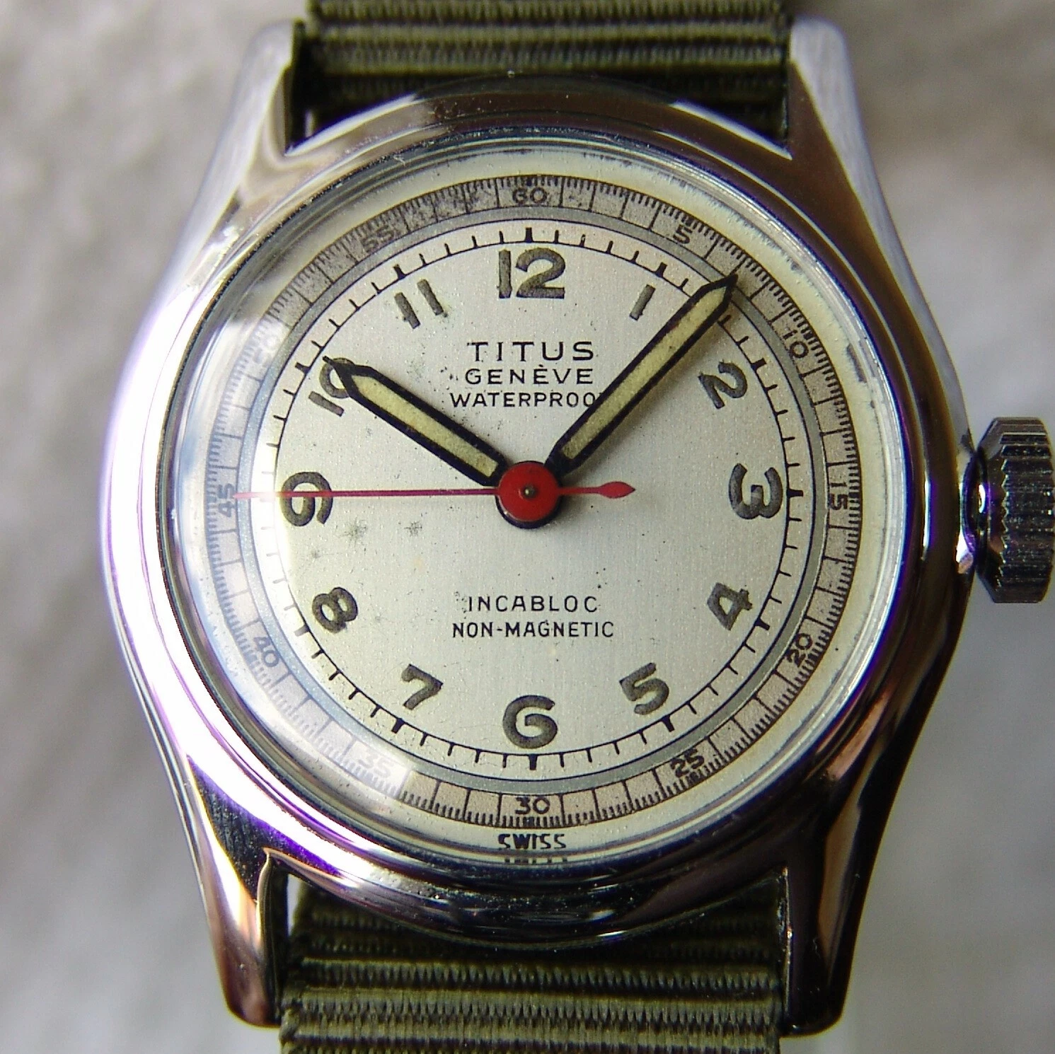 VINTAGE men's military style TITUS good condition WWII ERA WRISTWATCH