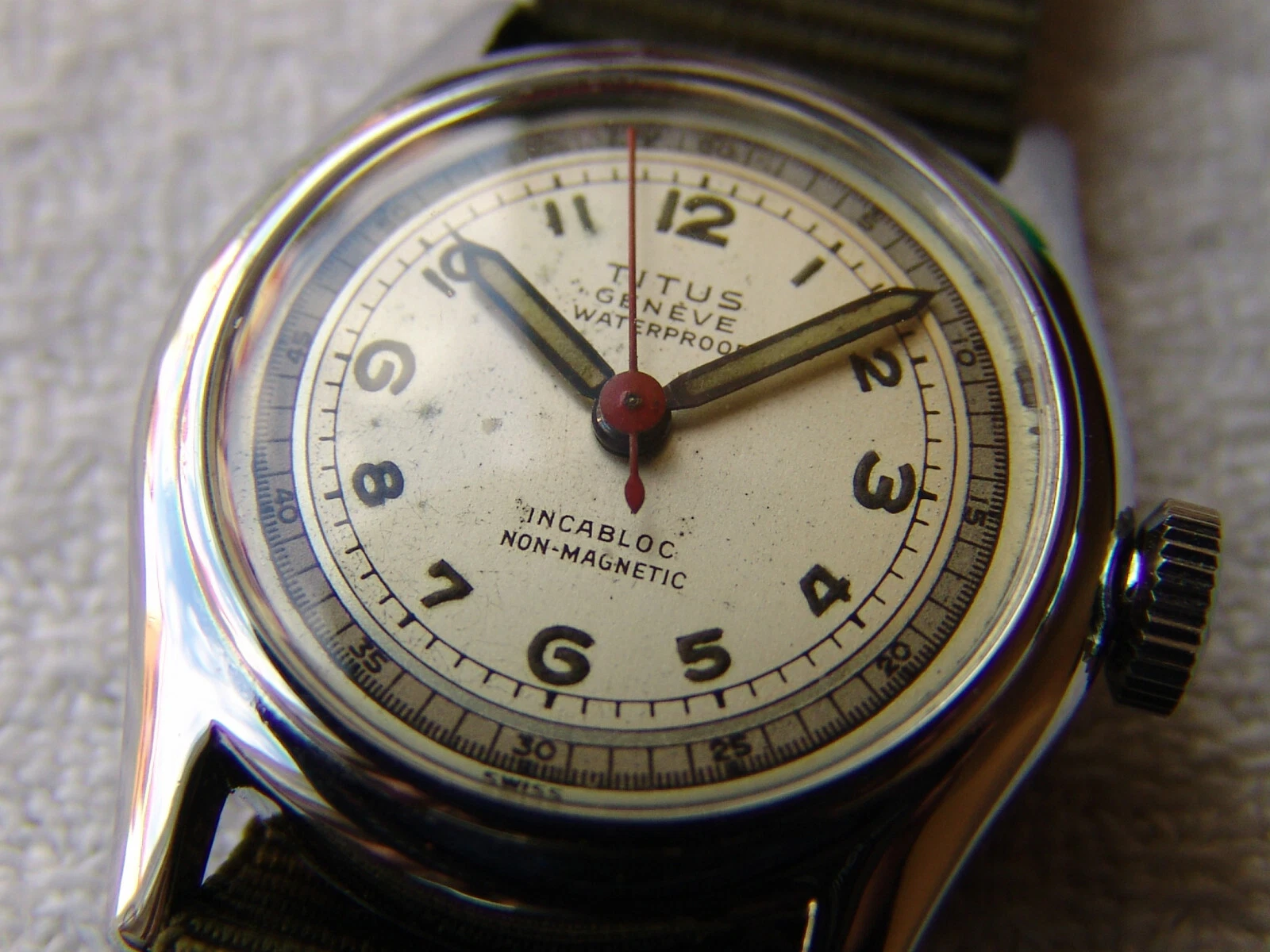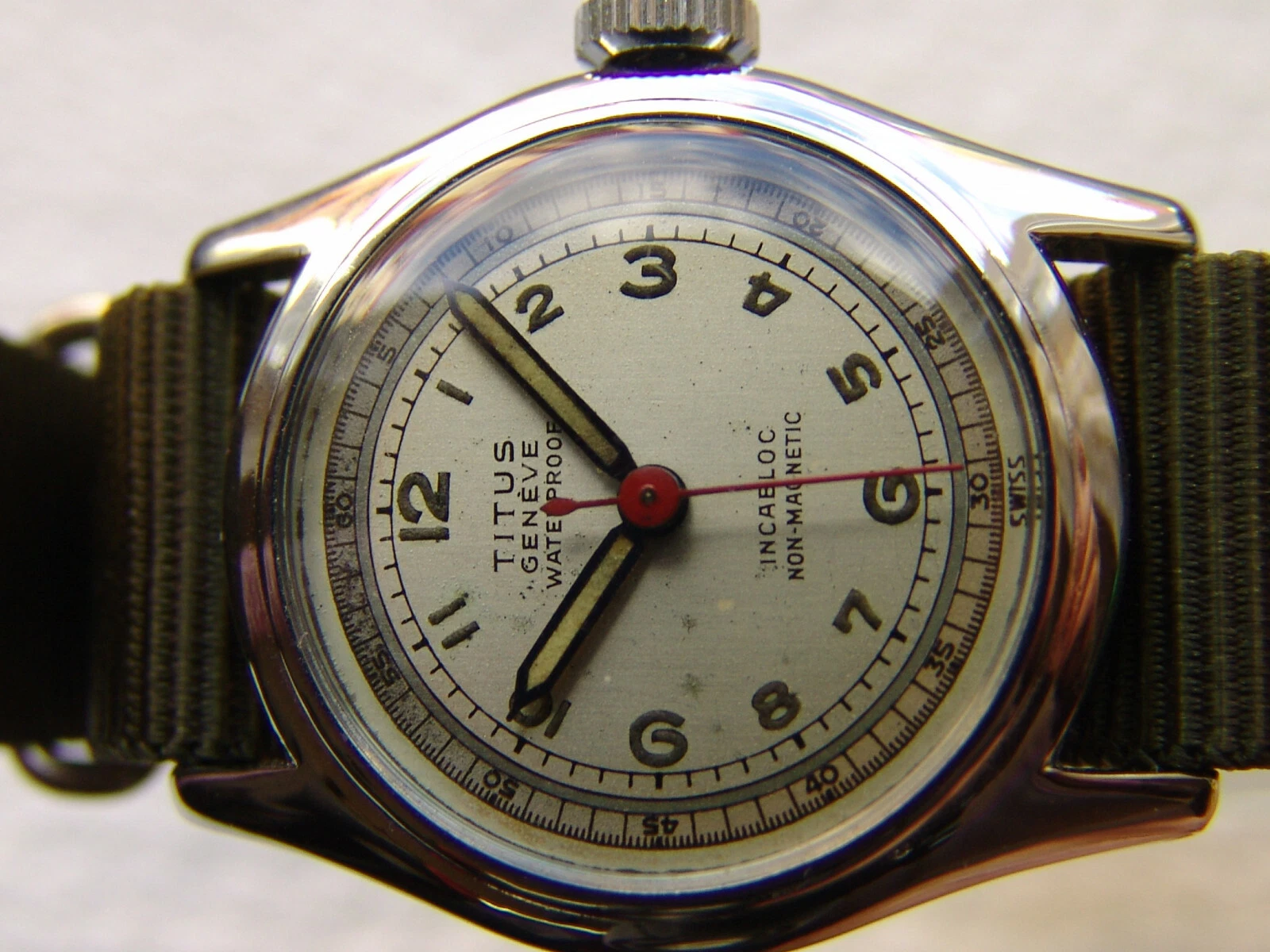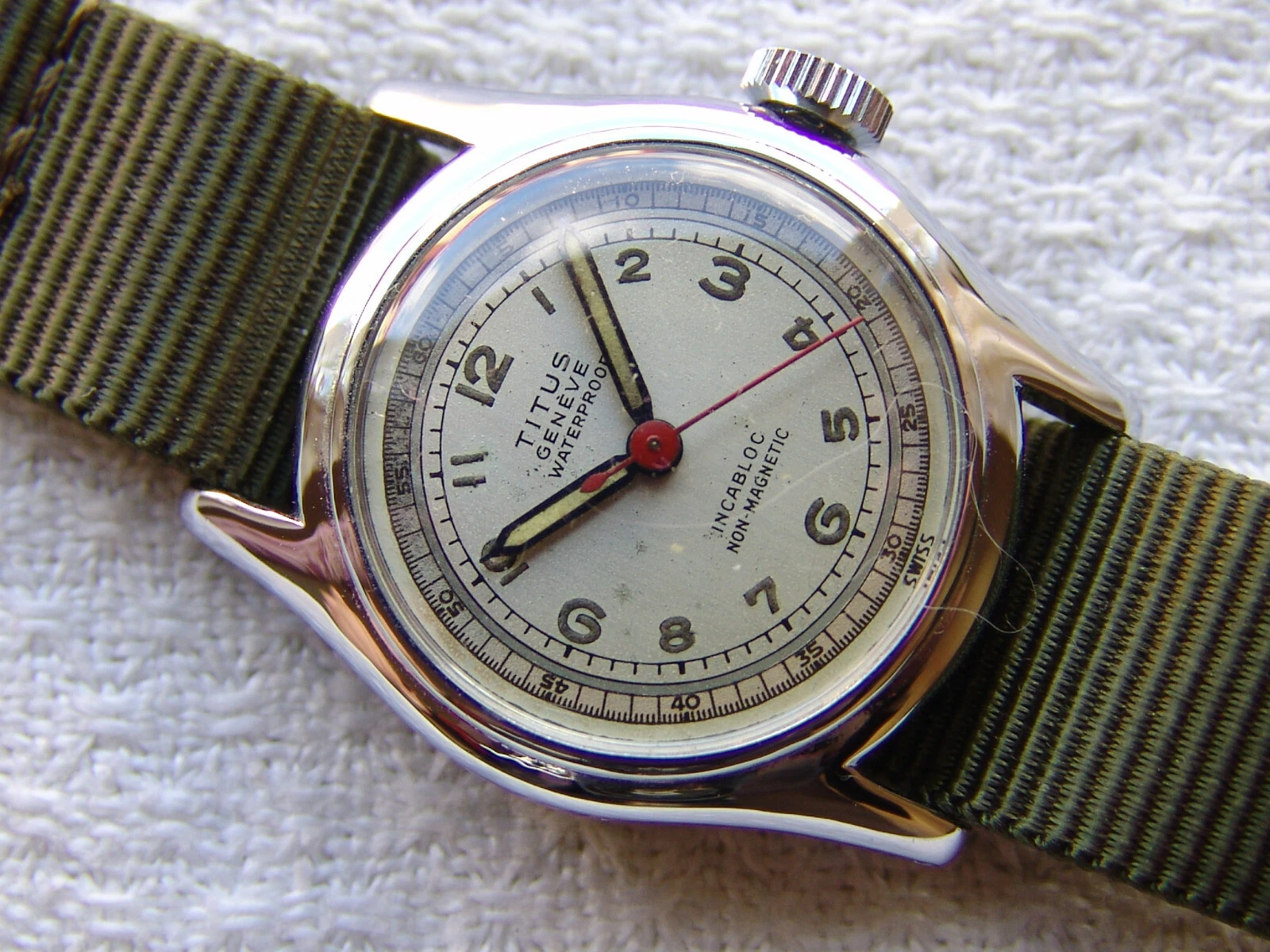 VINTAGE men's military style TITUS good condition WWII ERA WRISTWATCH
