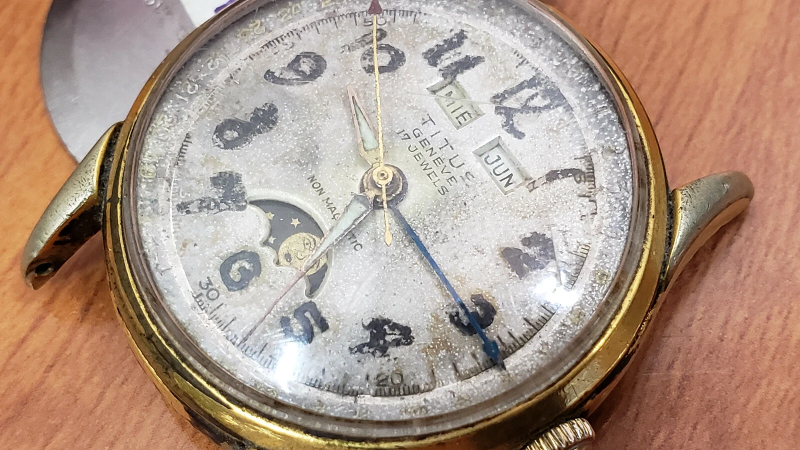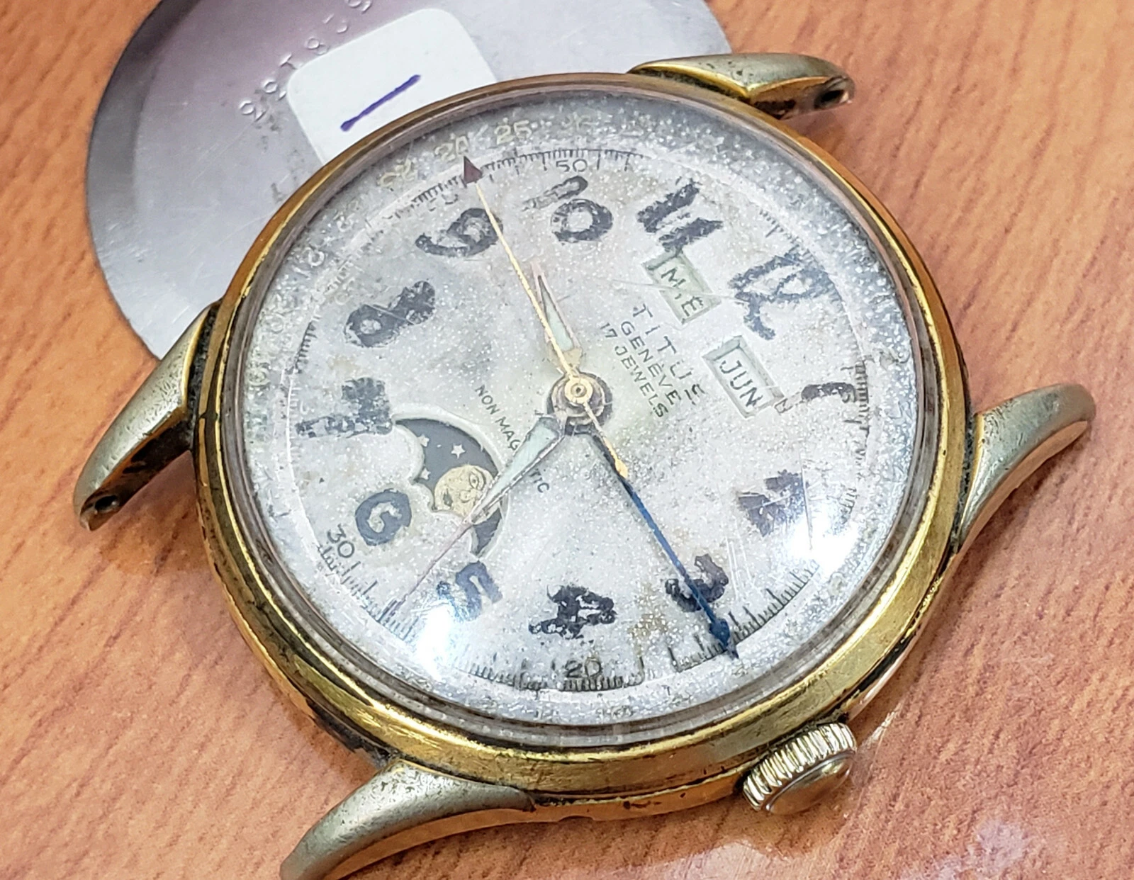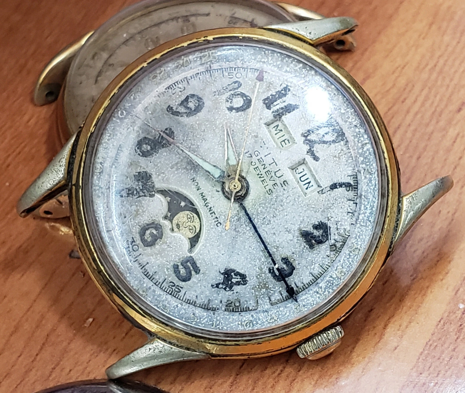 TITUS TRIPLE DATE MOONPHASE VINTAGE MECHANICAL MENS WATCH - NEEDS SERVICE