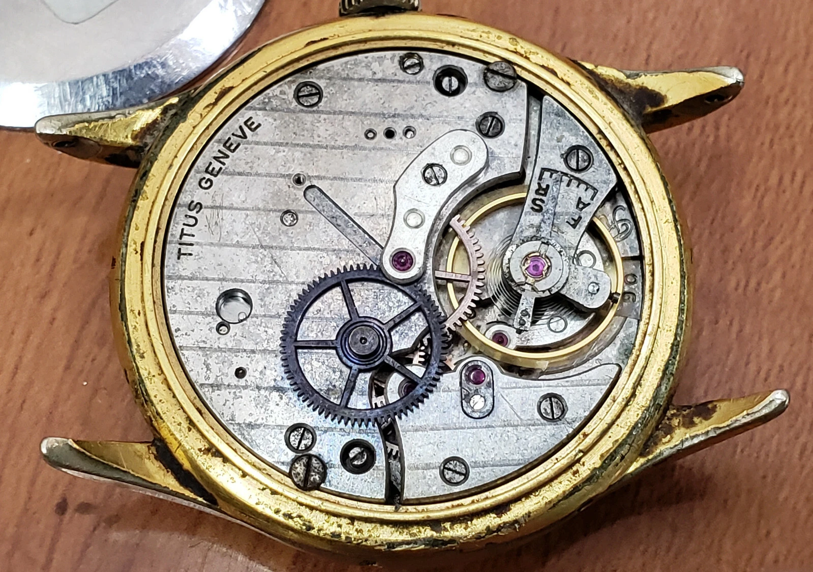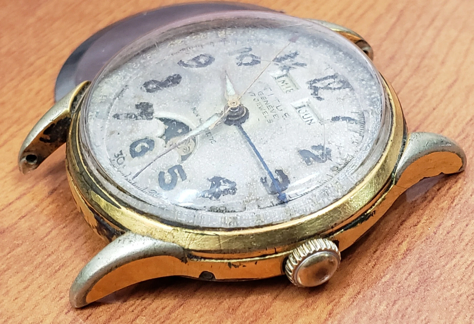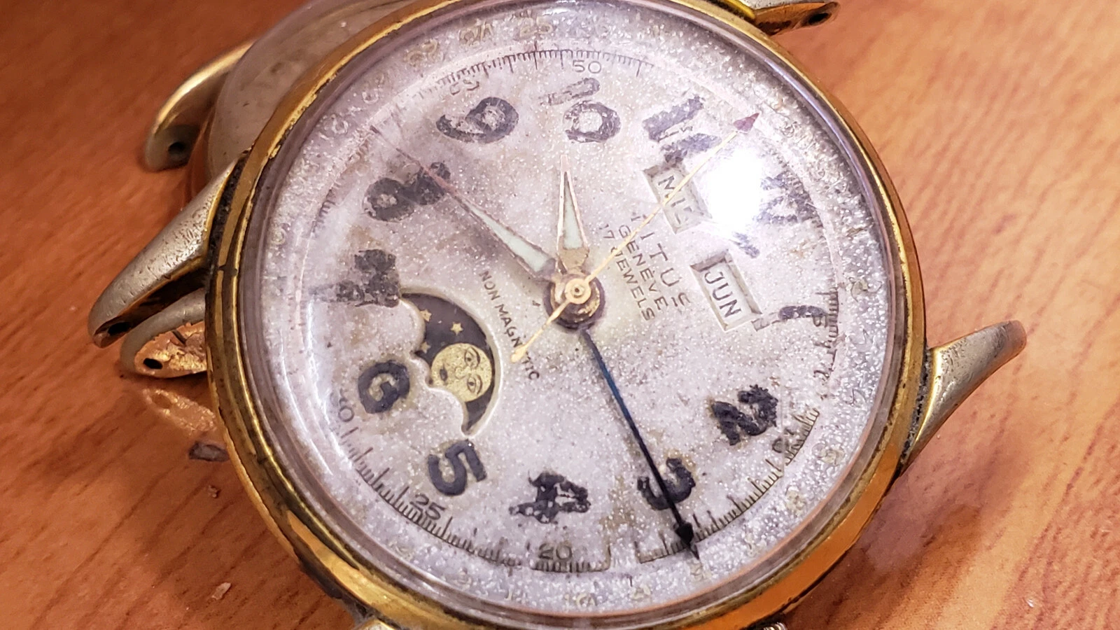 TITUS TRIPLE DATE MOONPHASE VINTAGE MECHANICAL MENS WATCH - NEEDS SERVICE