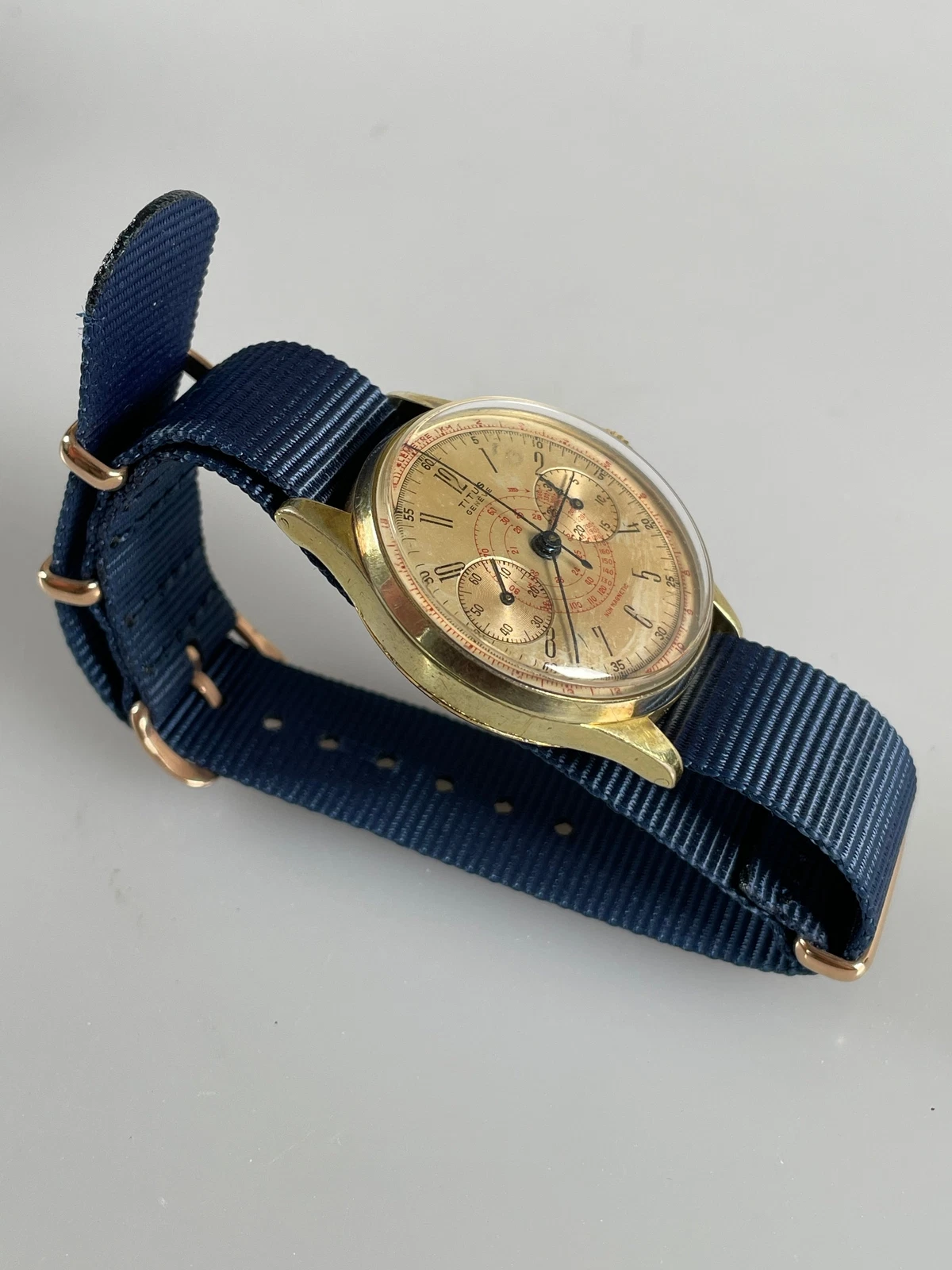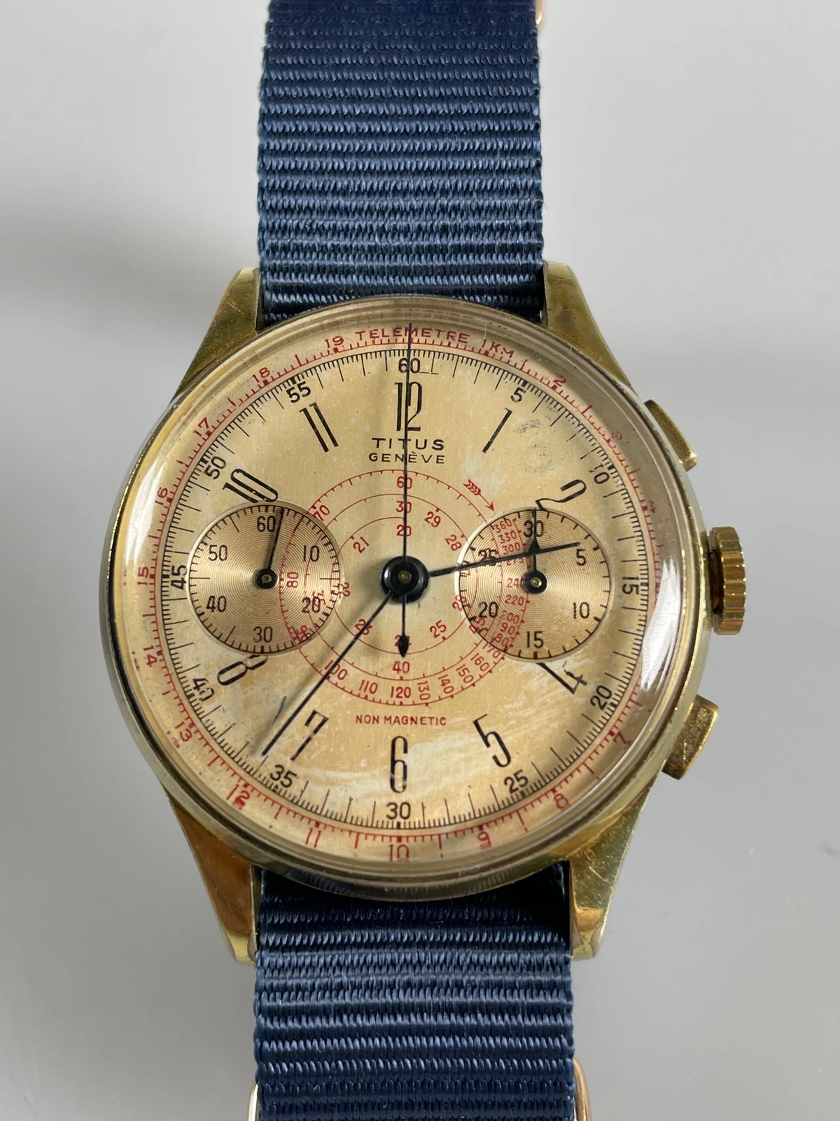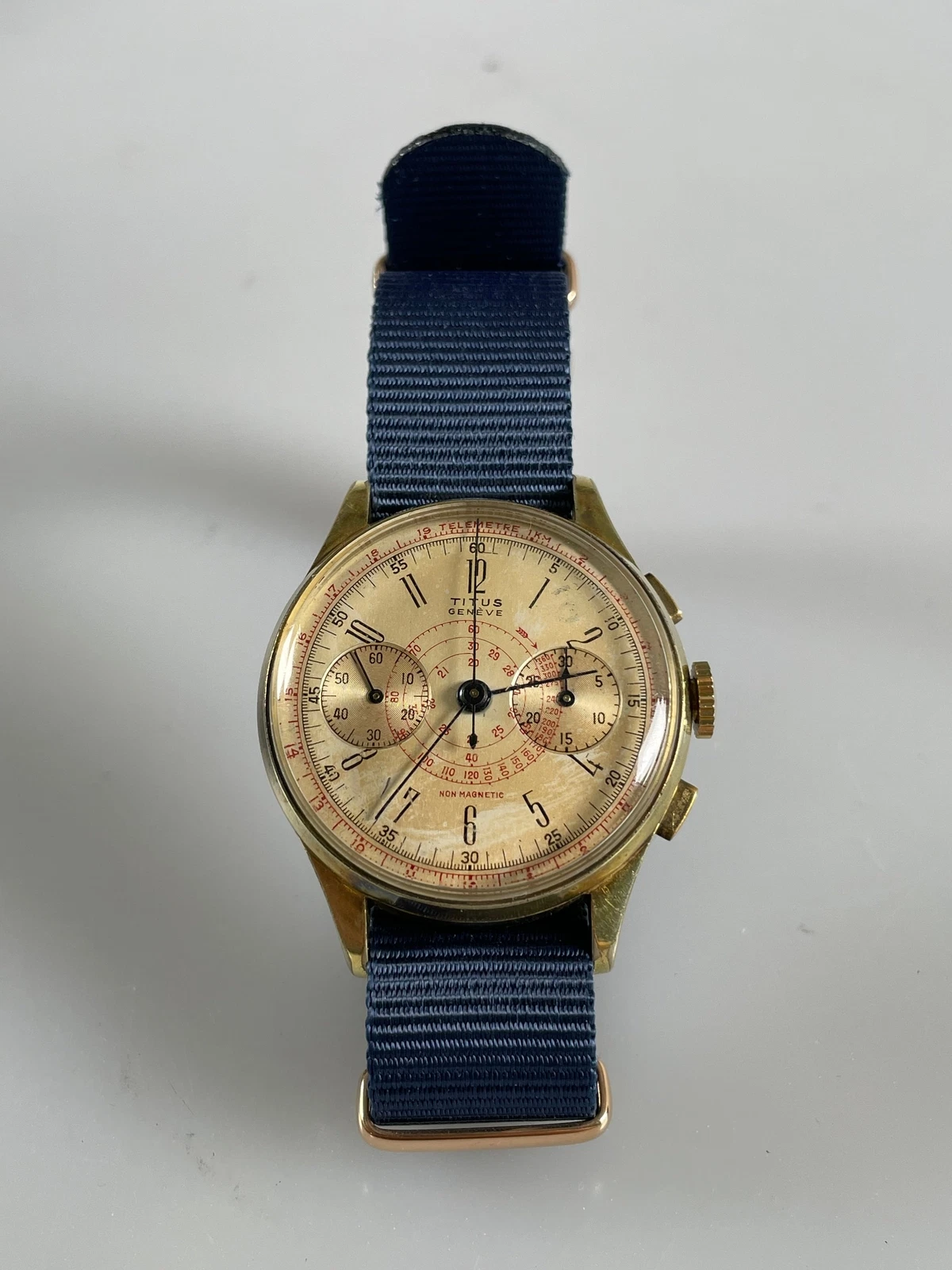 Titus Geneve Non magnetic chronograph Valjoux 22 Gold plated steel