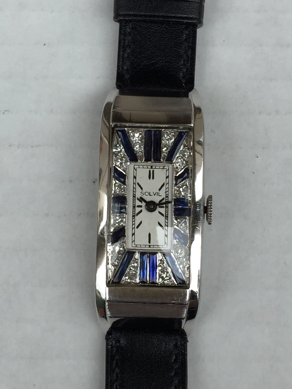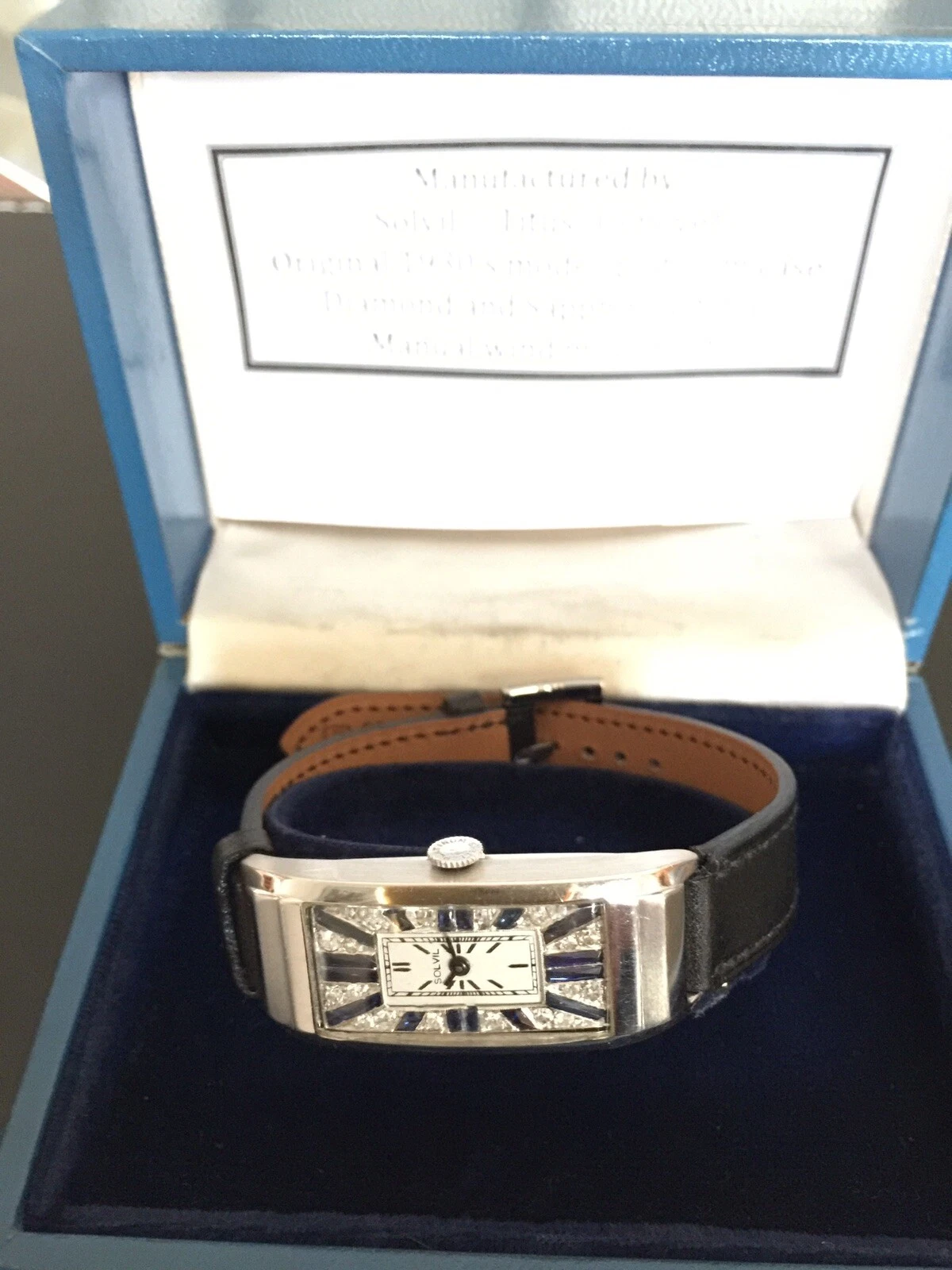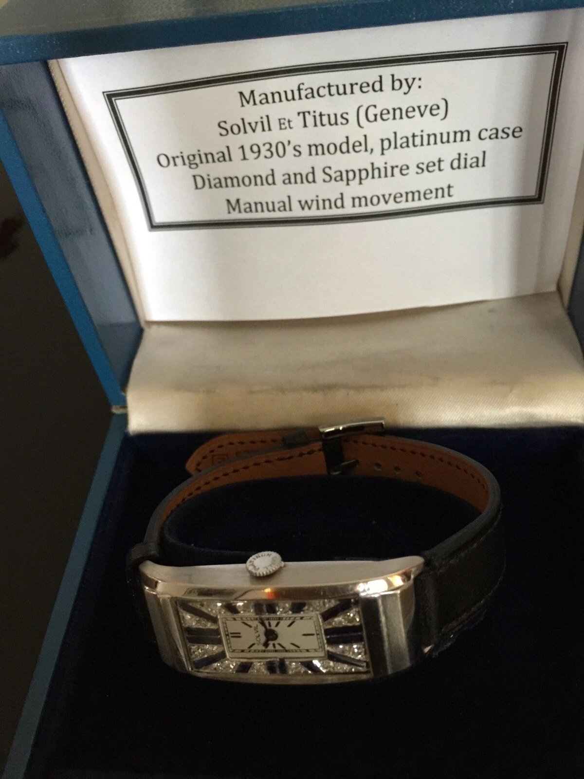 Vintage Mens Large Titus 1930s solid platinum Diamond & Sapphire Paved Dial