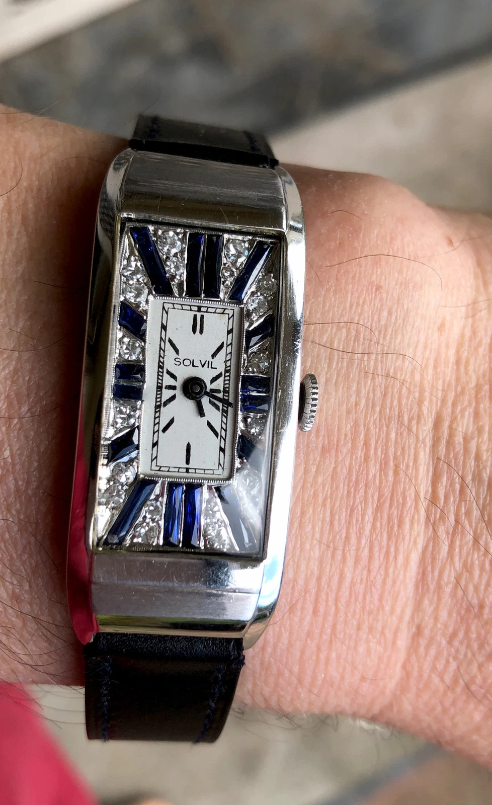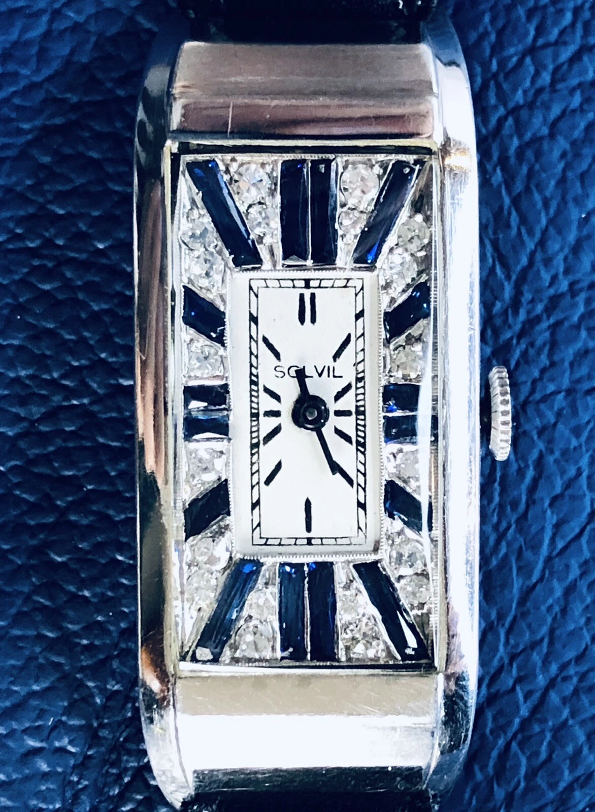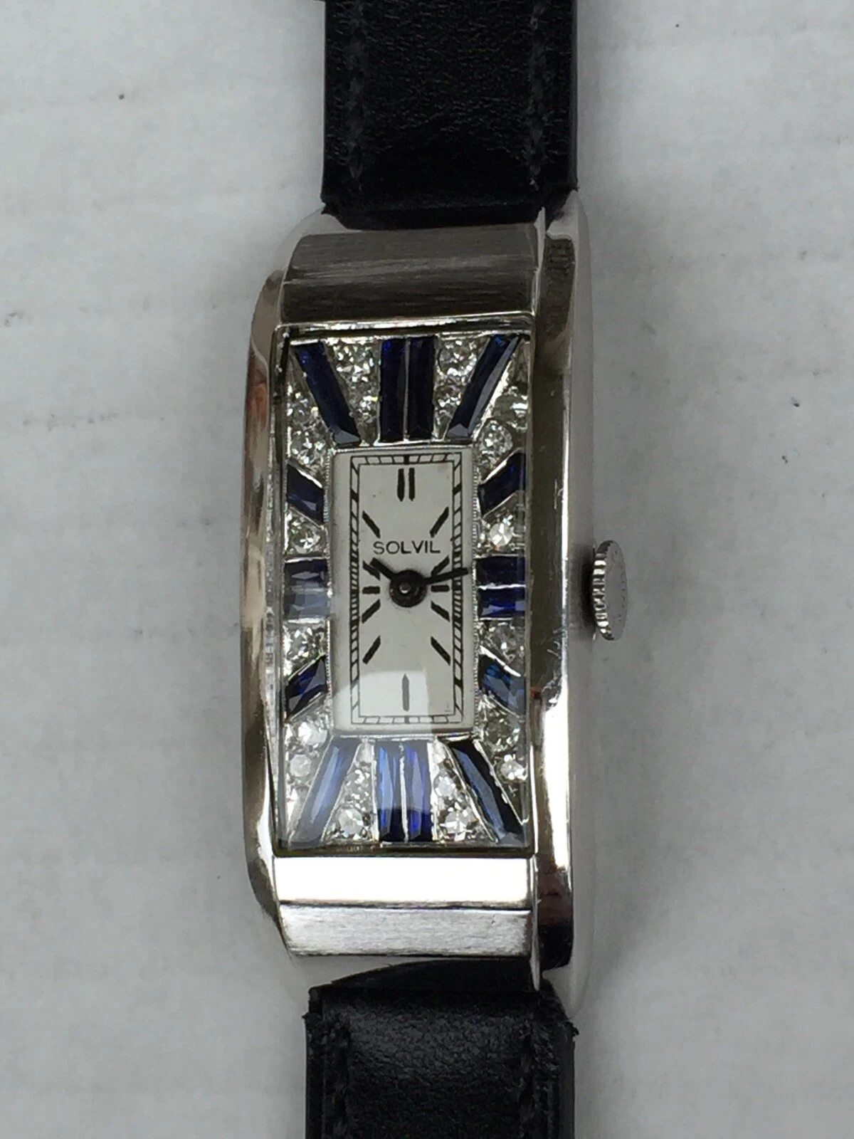 Vintage Mens Large Titus 1930s solid platinum Diamond & Sapphire Paved Dial
