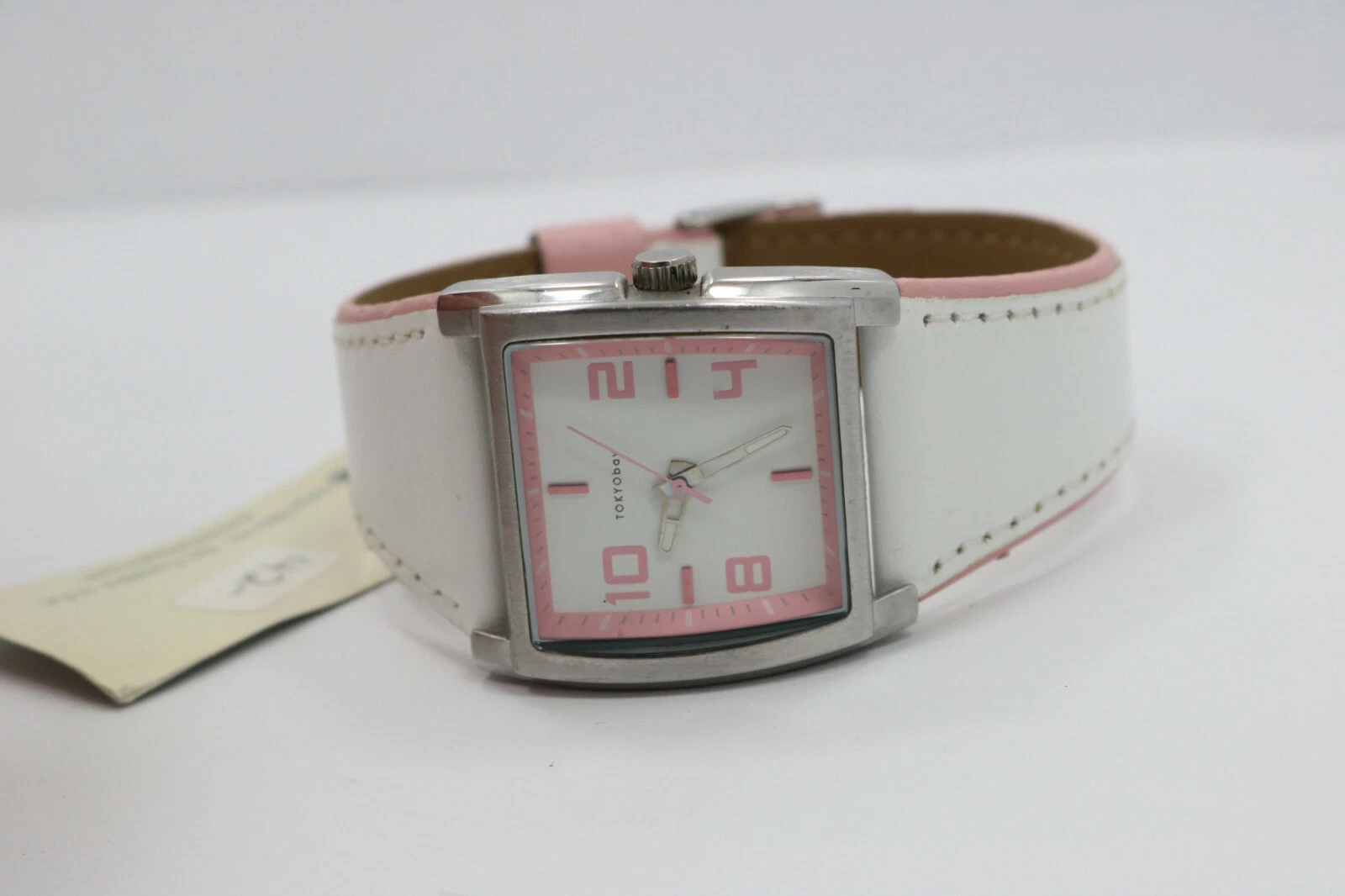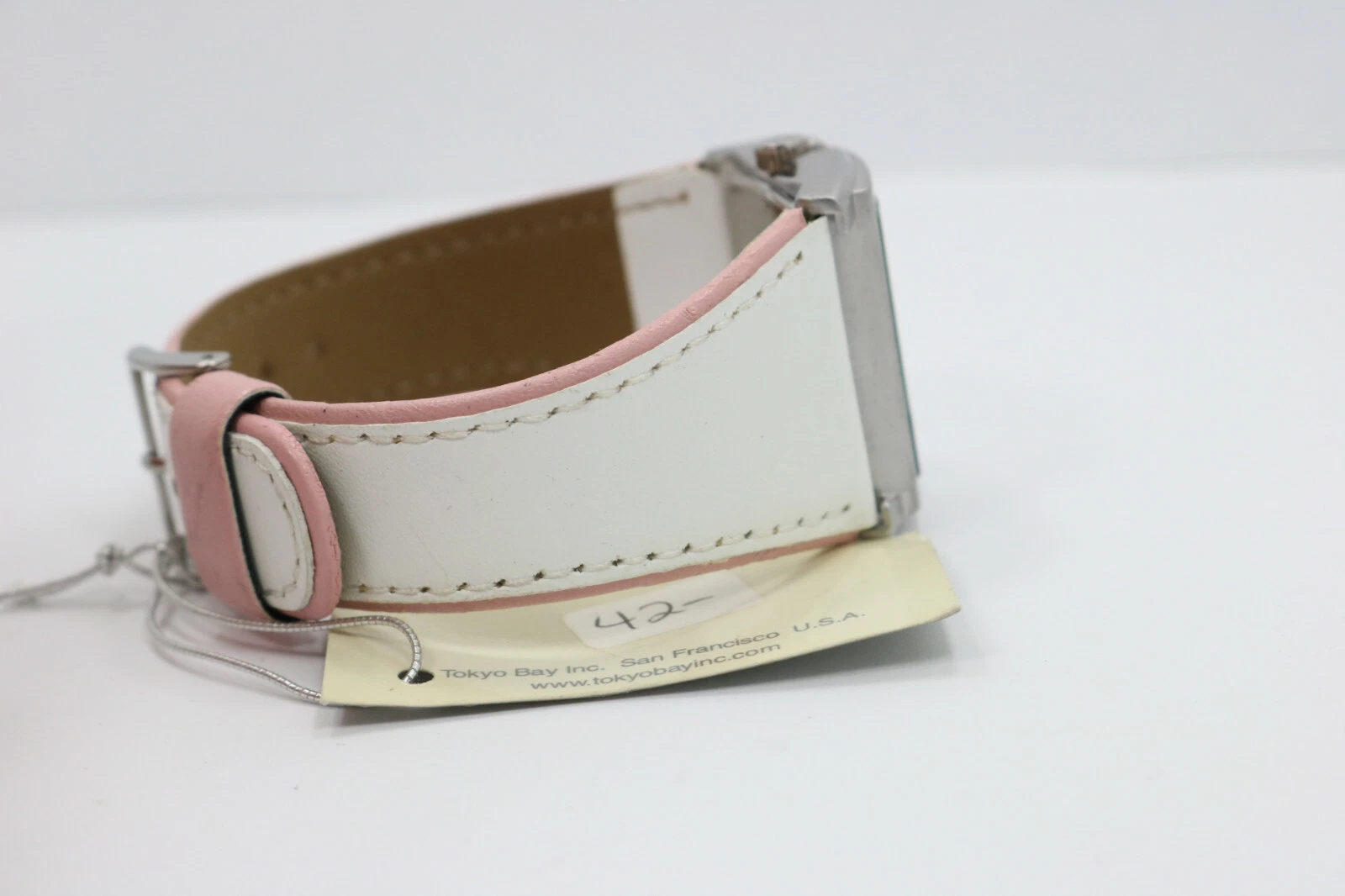 Womens Tokyo Bay White Pink Leather Odd Shape Watch New Battery
