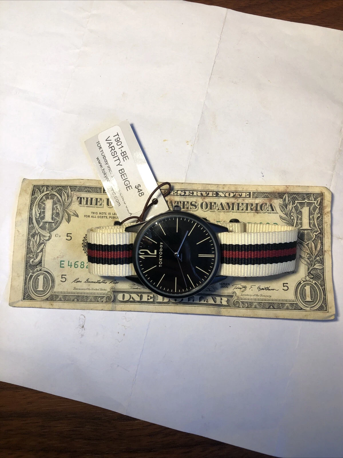 Vintage TOKYObay Watch Black Tone & Varsity Beige Band Design