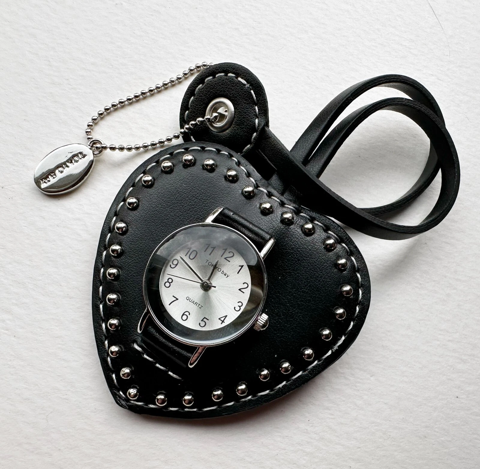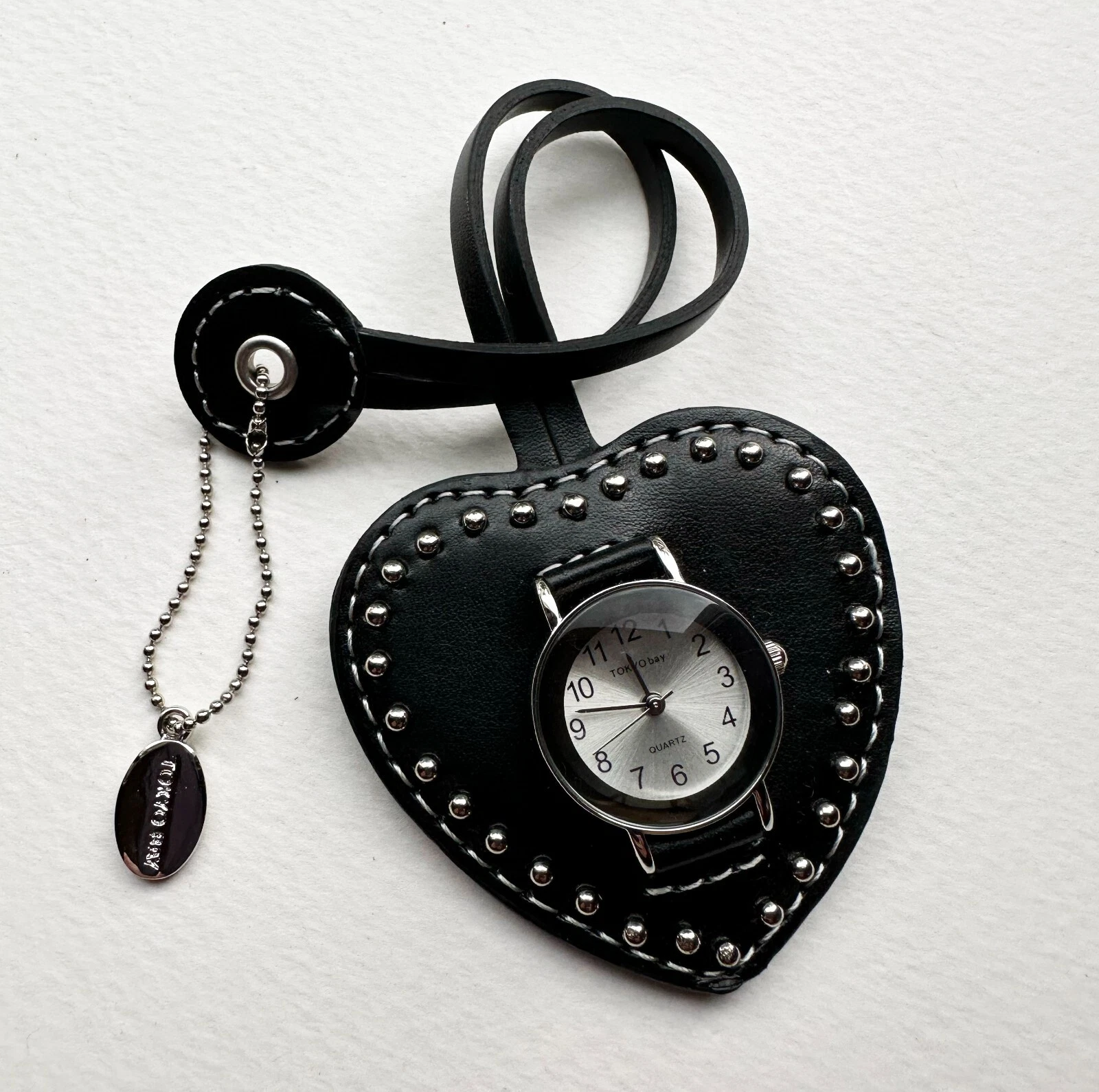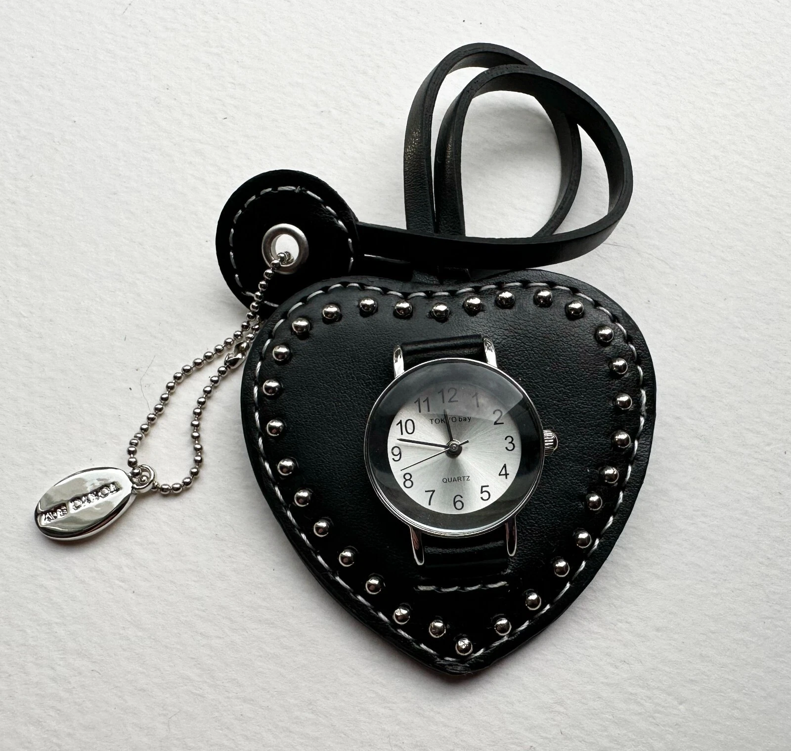 TOKYObay Charm Time Clip-On Watch ~ BLACK STUDDED HEART~ w/Box ~ Needs Battery