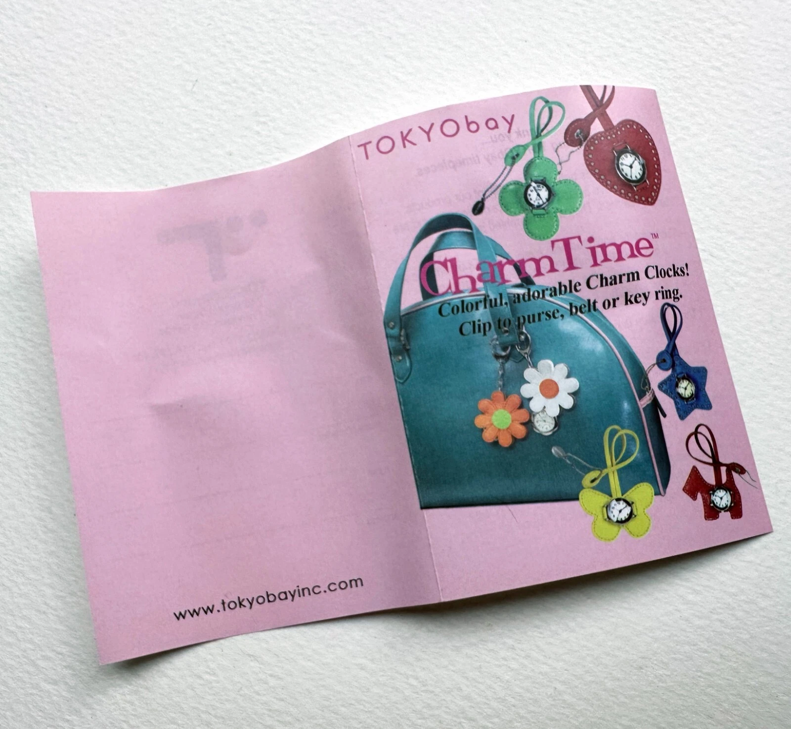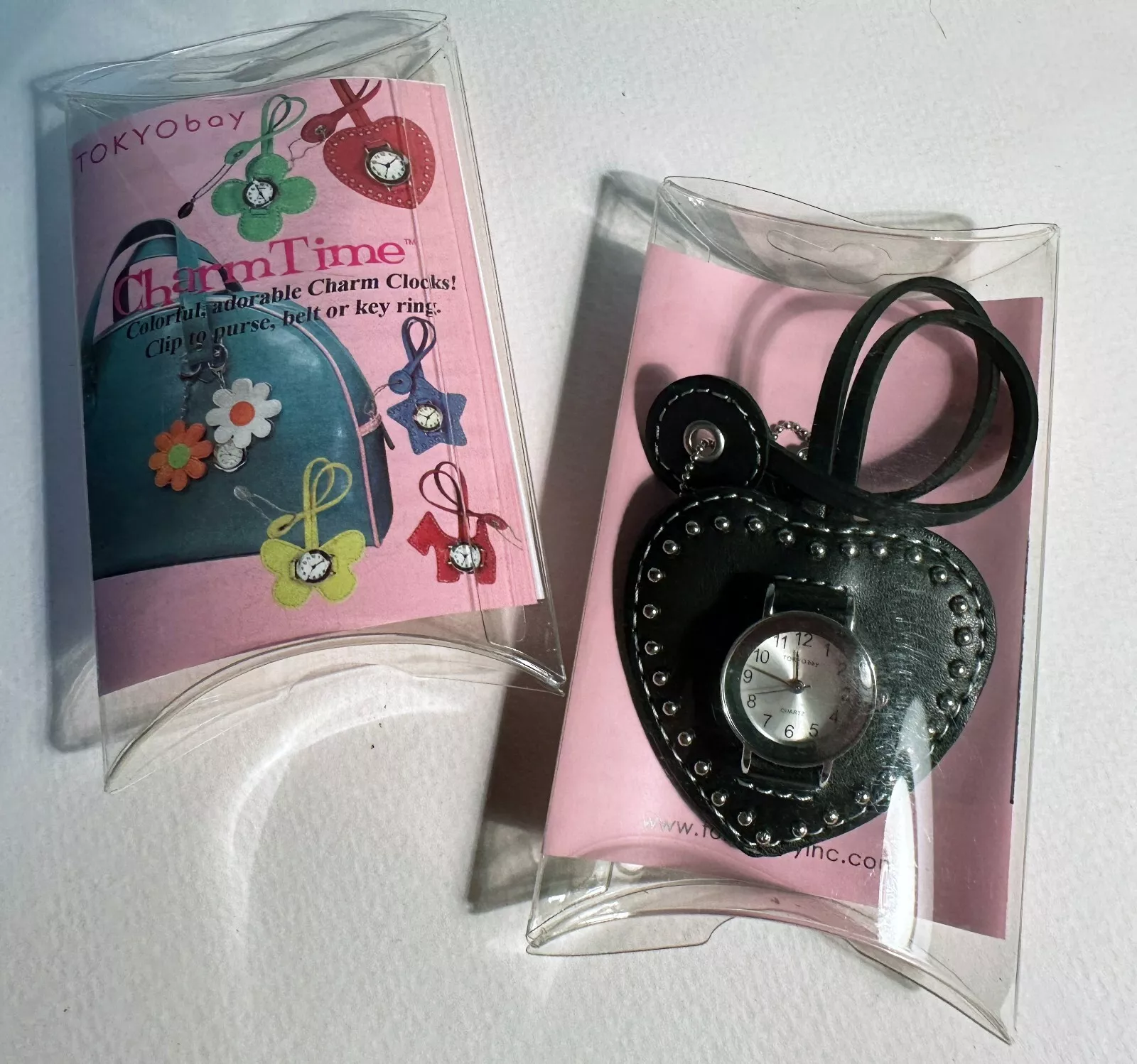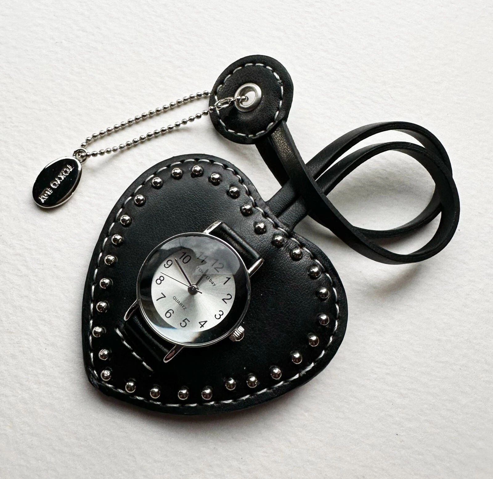 TOKYObay Charm Time Clip-On Watch ~ BLACK STUDDED HEART~ w/Box ~ Needs Battery