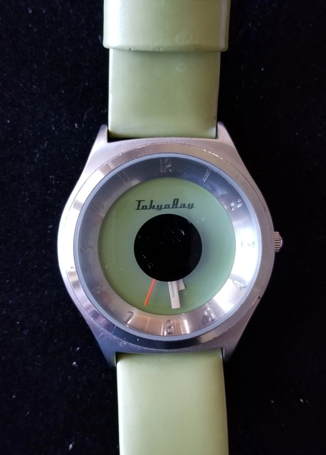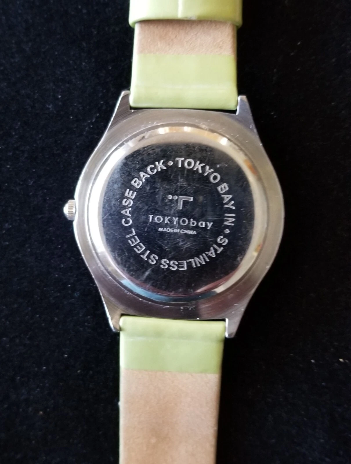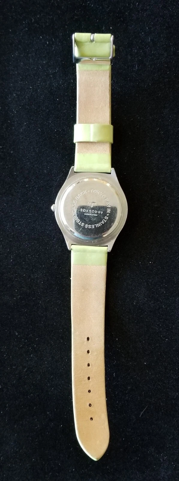 Tokyo Bay Silver Tone Watch Green Dial & Faux Leather Band 6"-7.5" New Battery