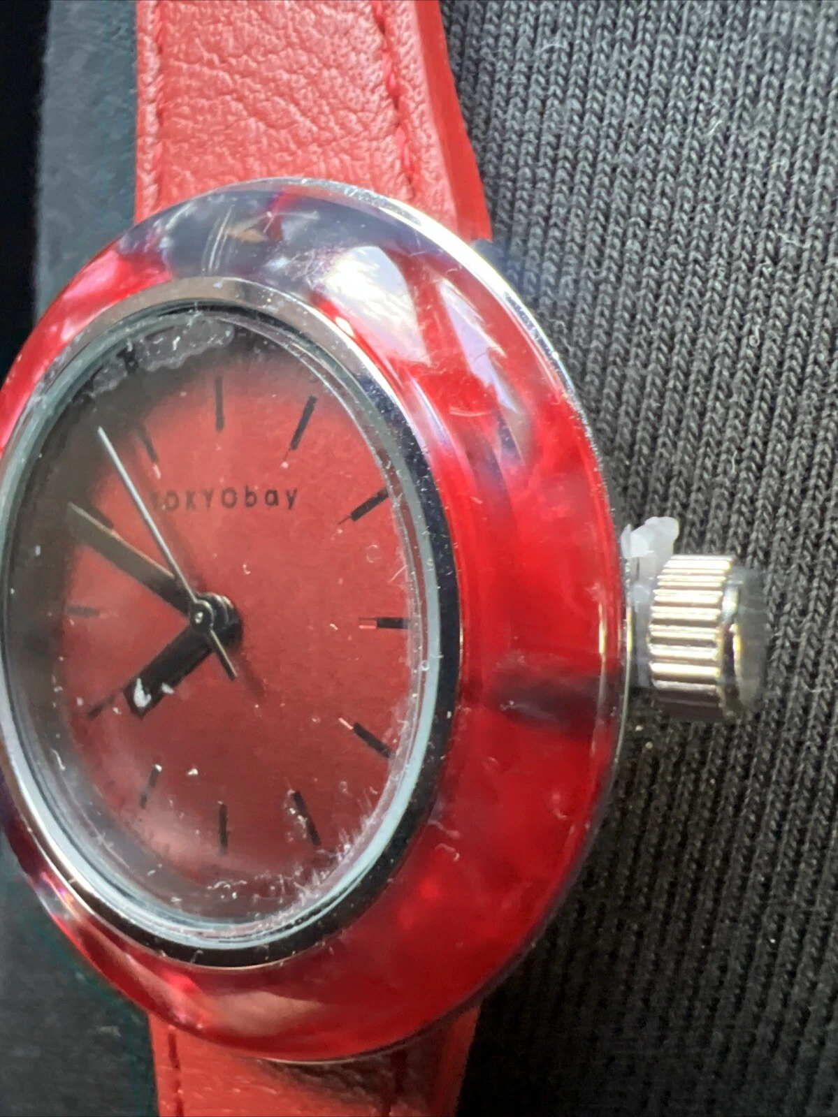 Red face Watch TOKYOBay Tokyo Bay Womans Red Dial Red leather Band