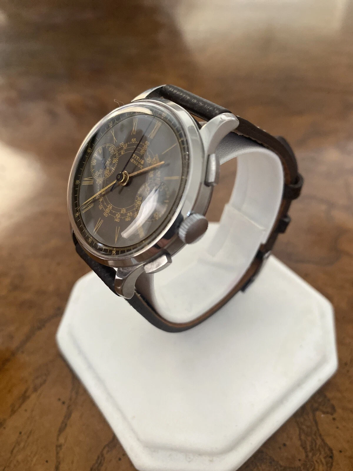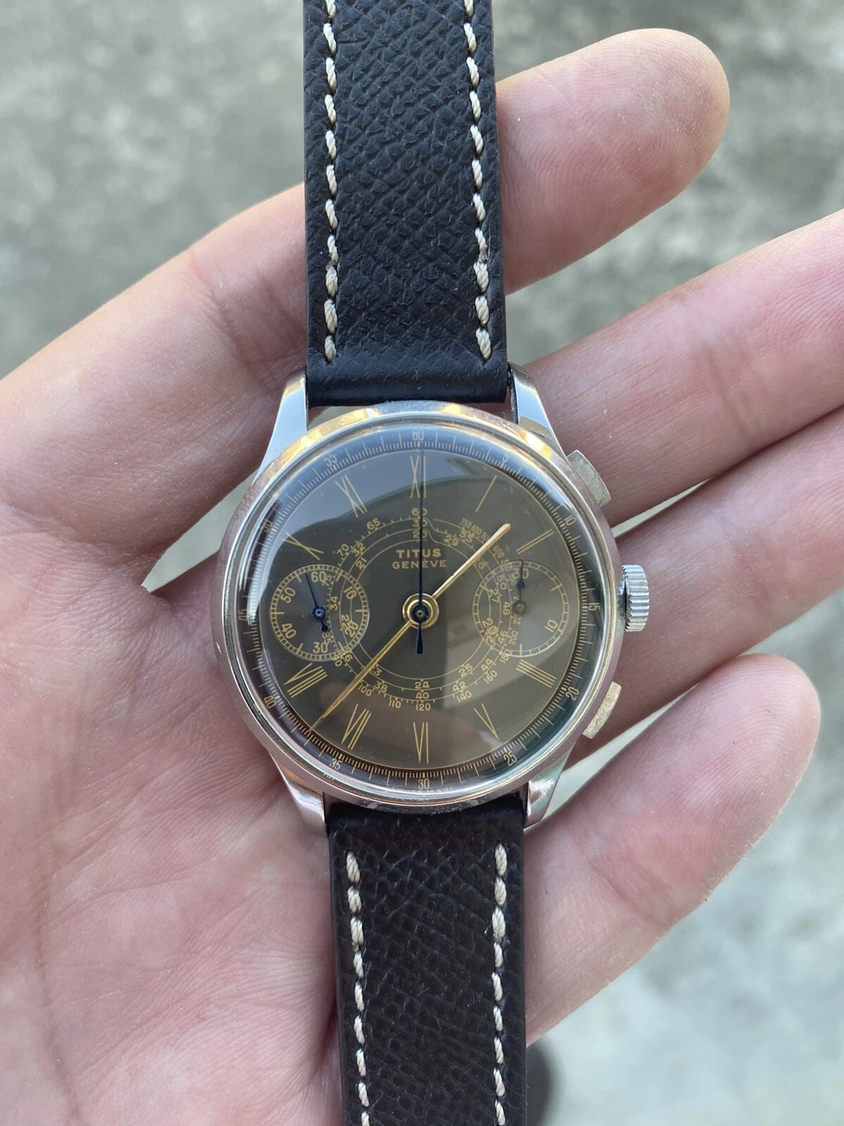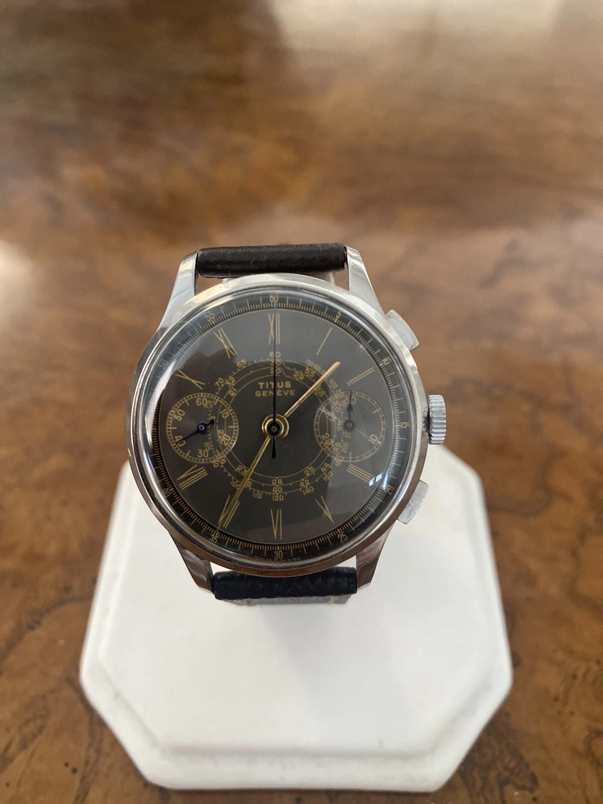 Rare Vintage Titus Geneve Gilt 2 Tone Dial Chronograph 36mm Landeron 39