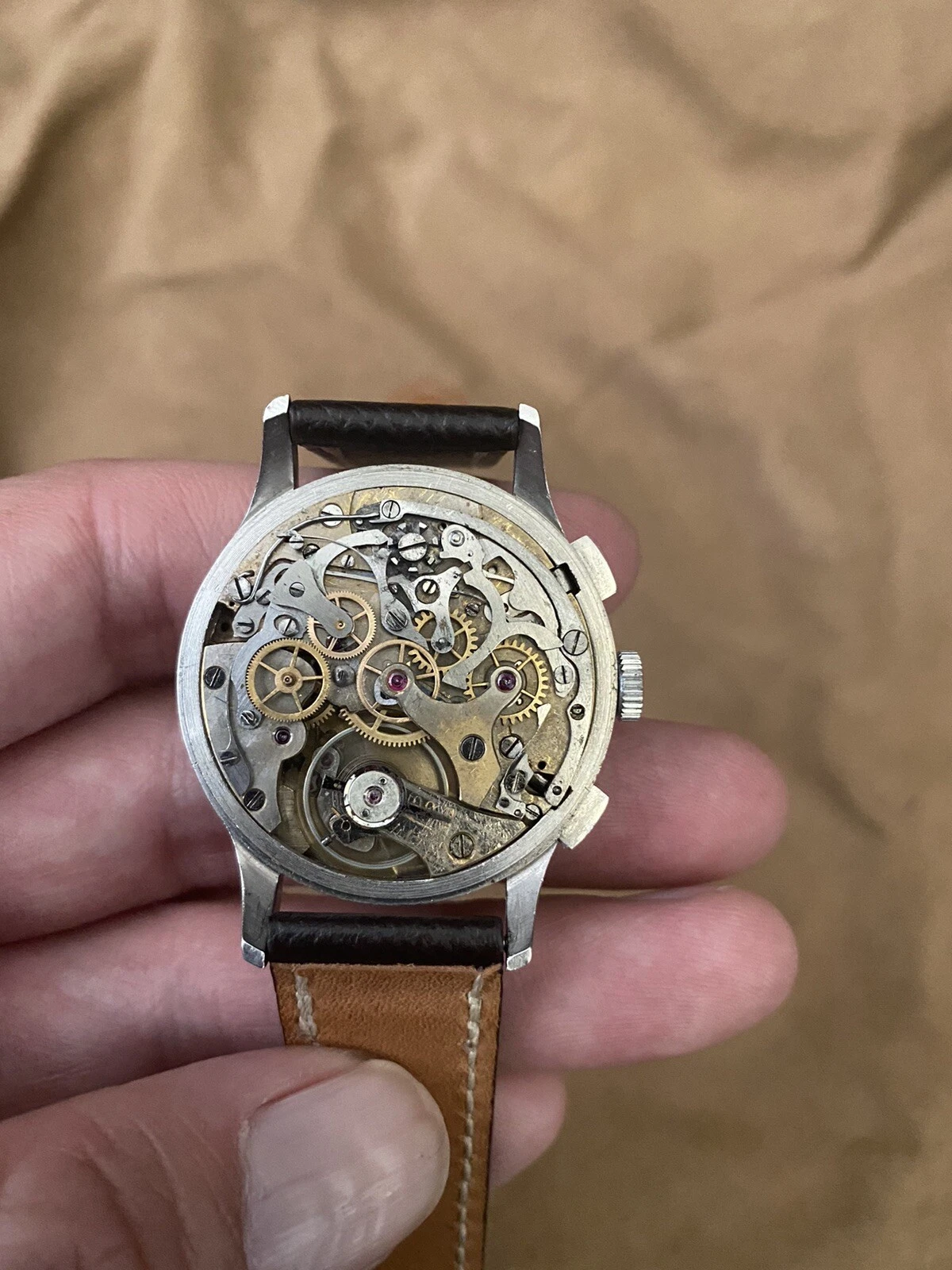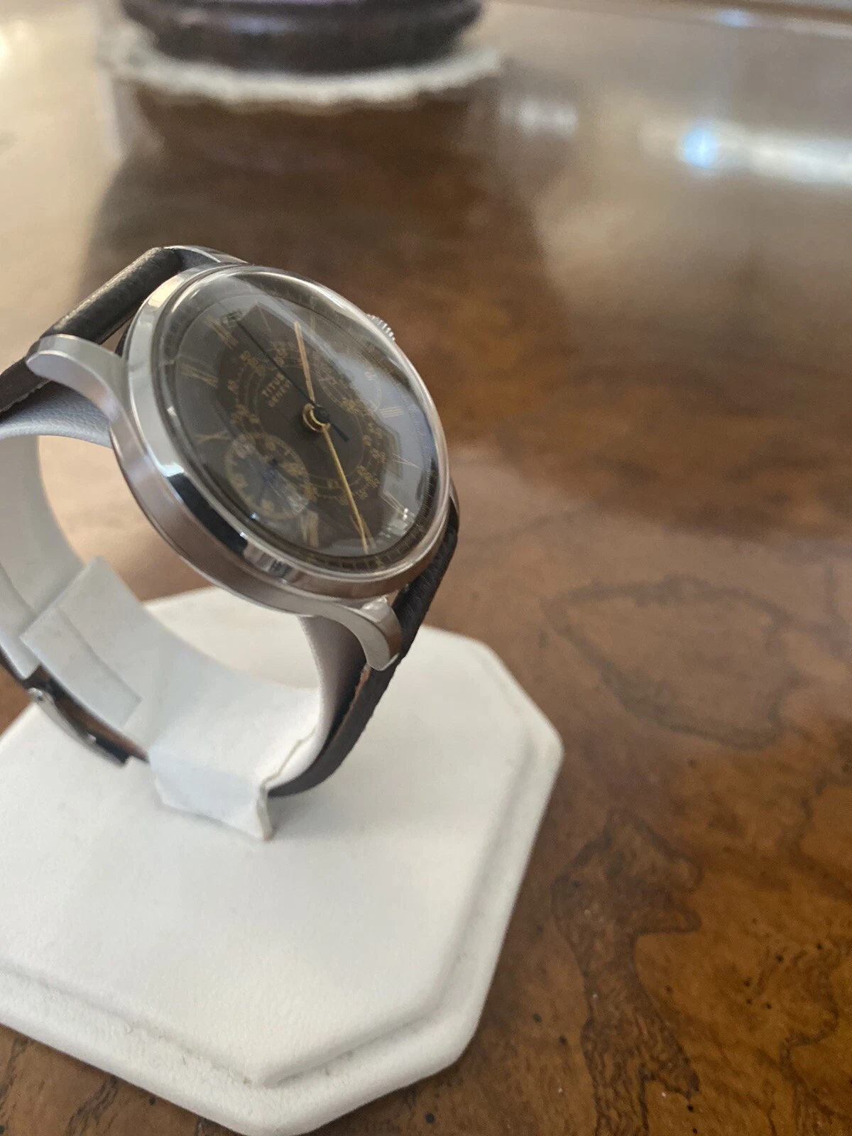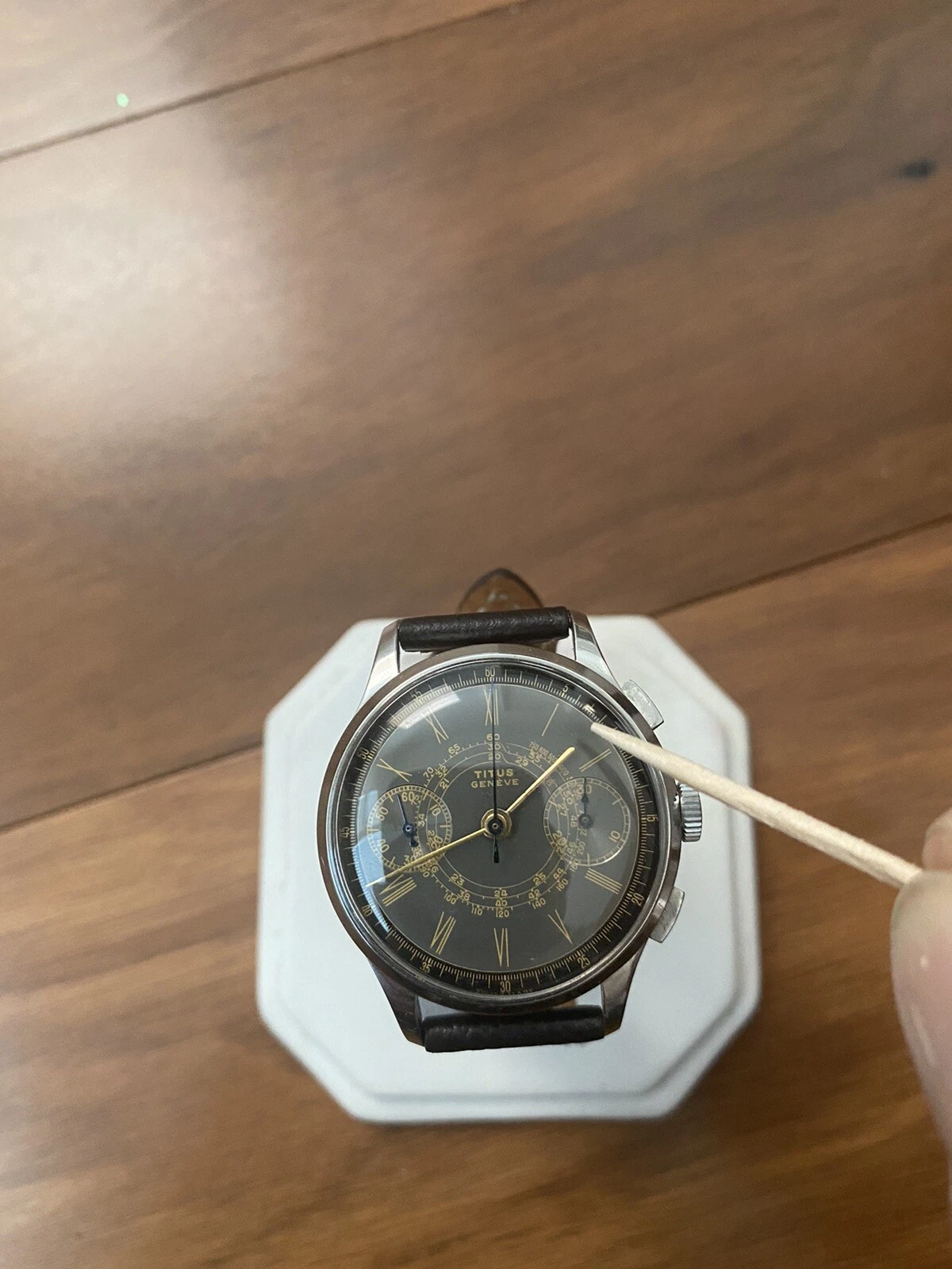 Rare Vintage Titus Geneve Gilt 2 Tone Dial Chronograph 36mm Landeron 39