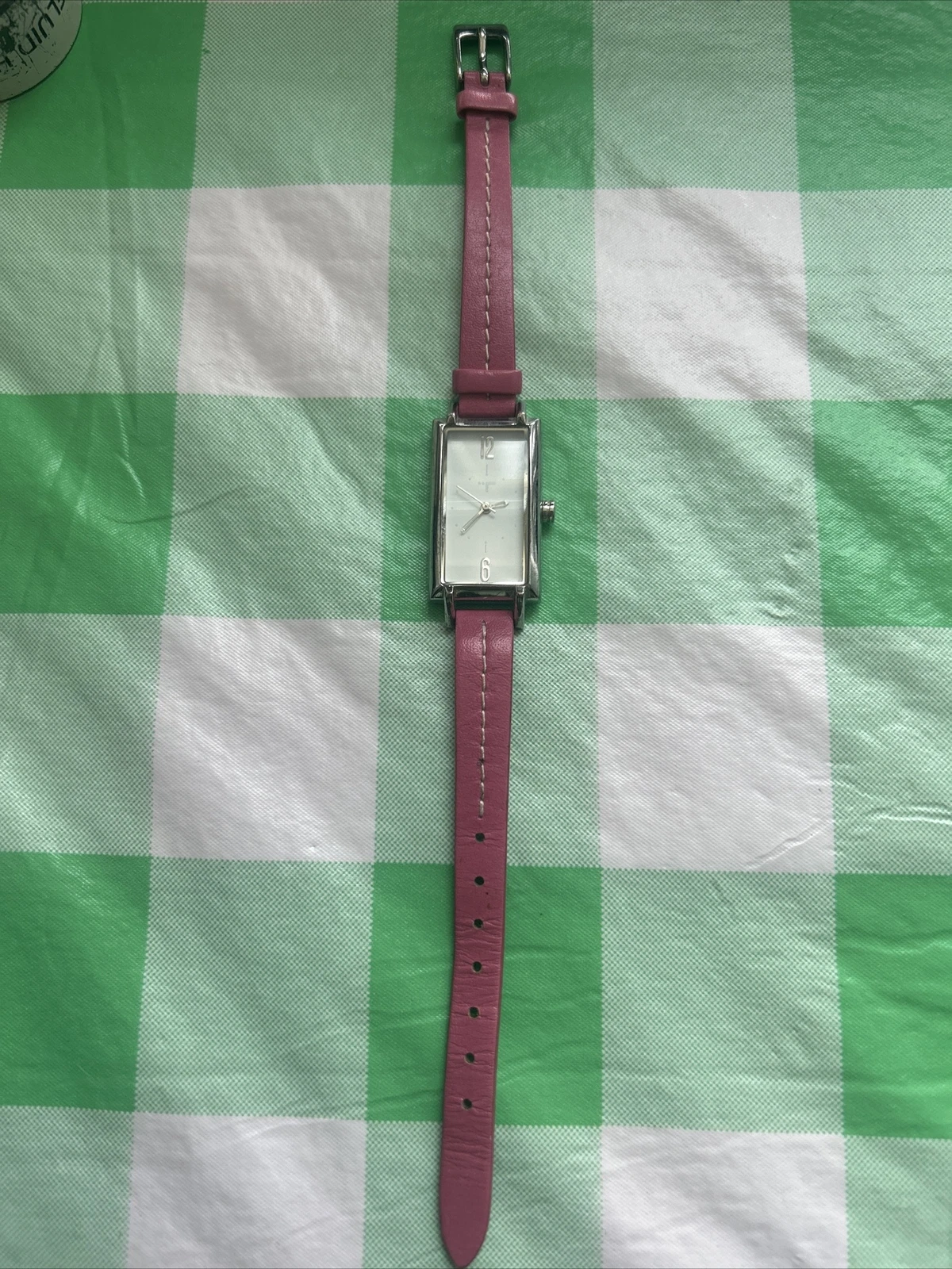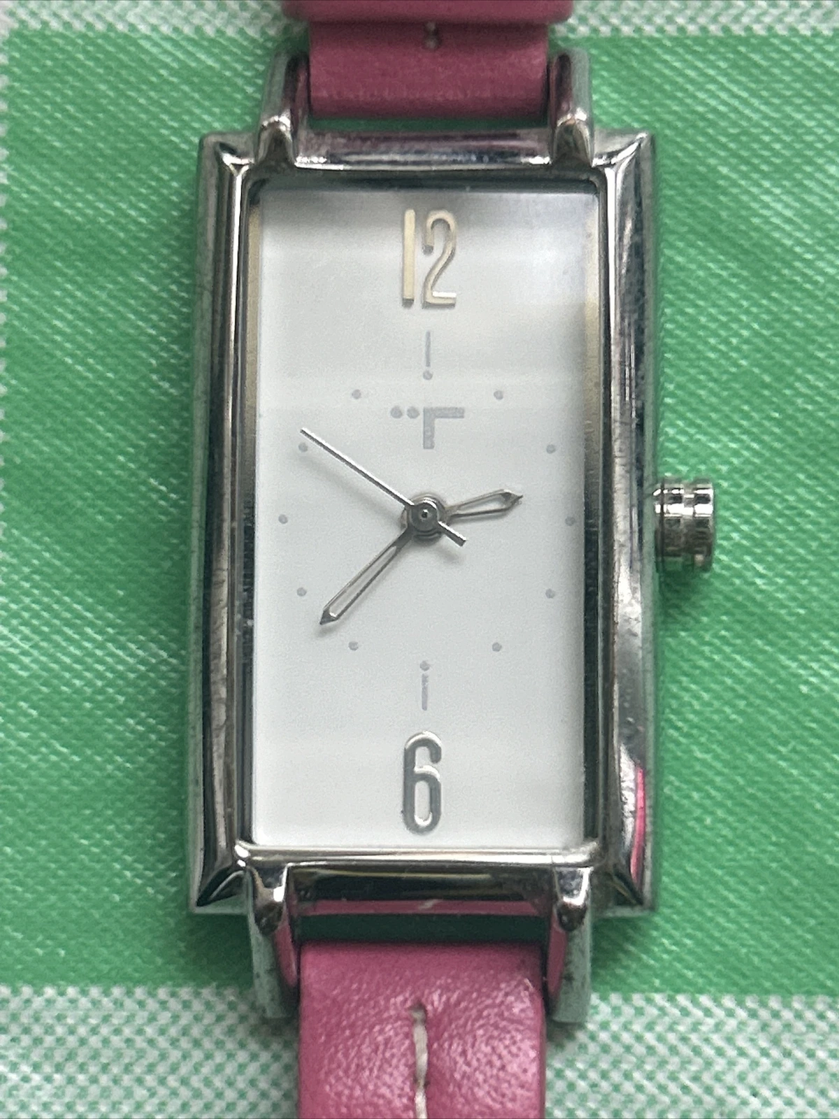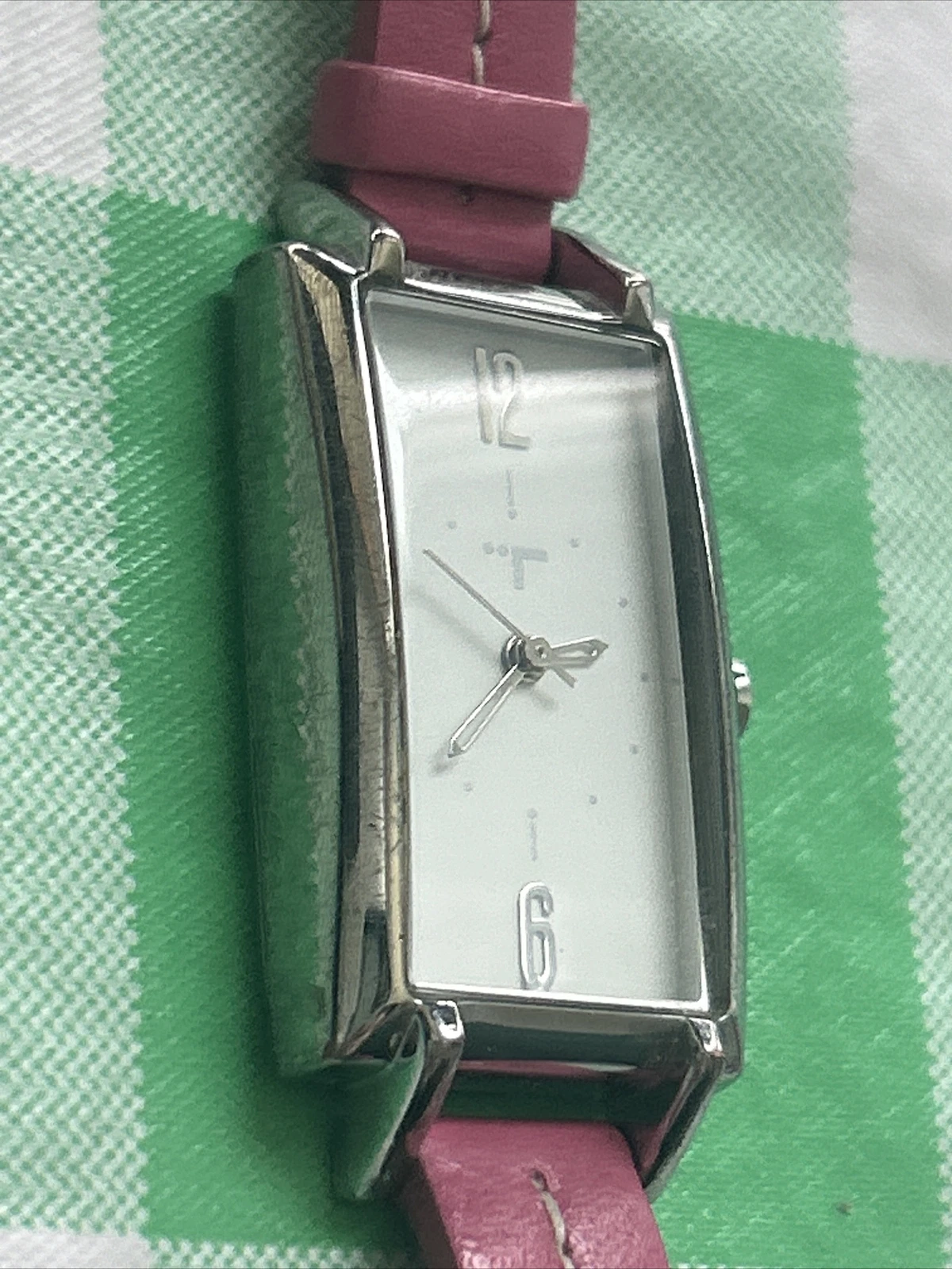 TokyoBay Silver Tone Pink Band Women’s Tank Quartz Watch
