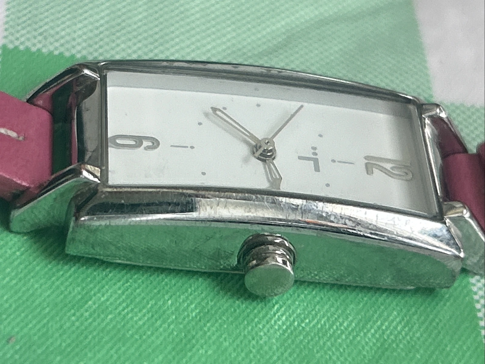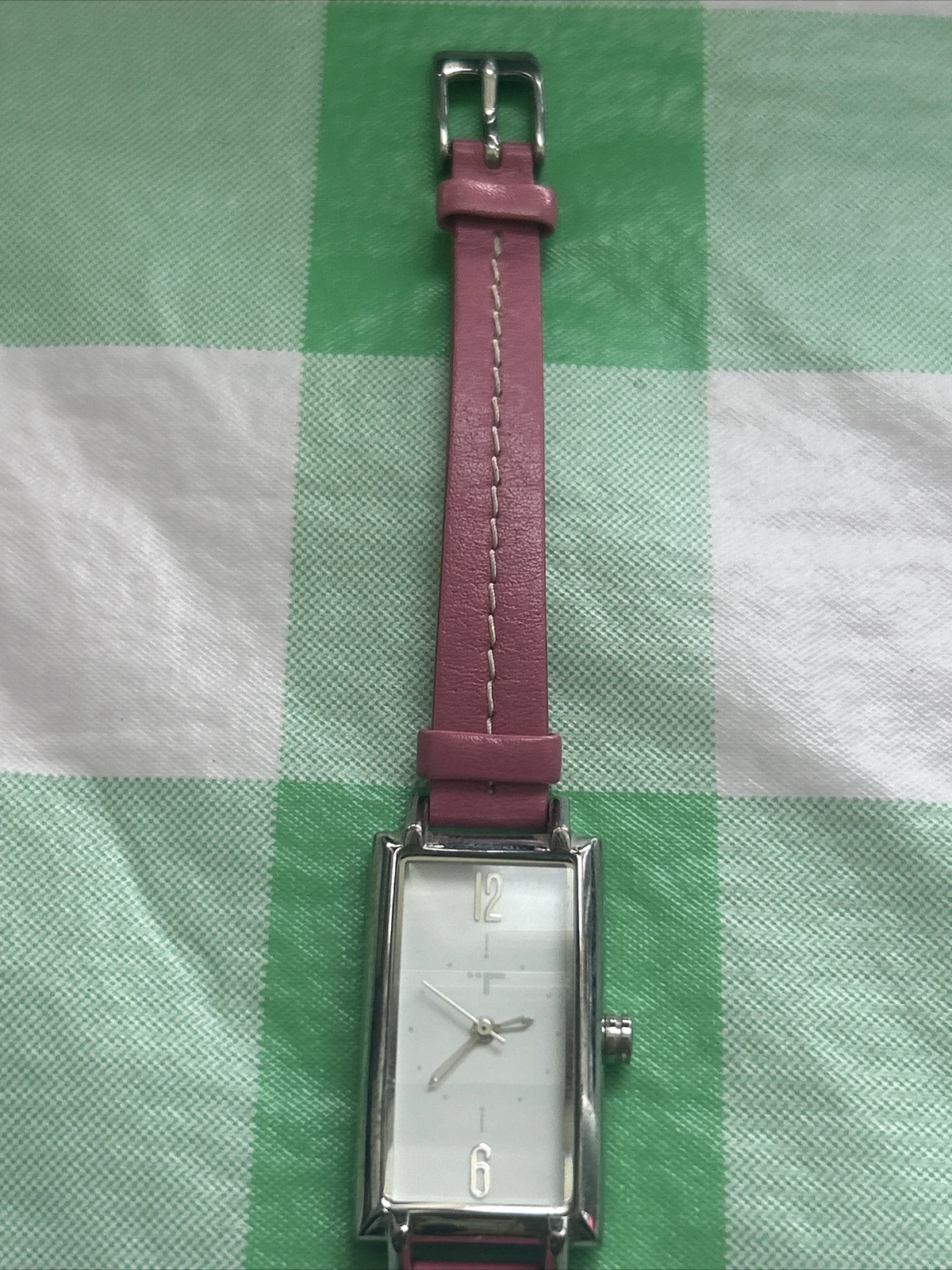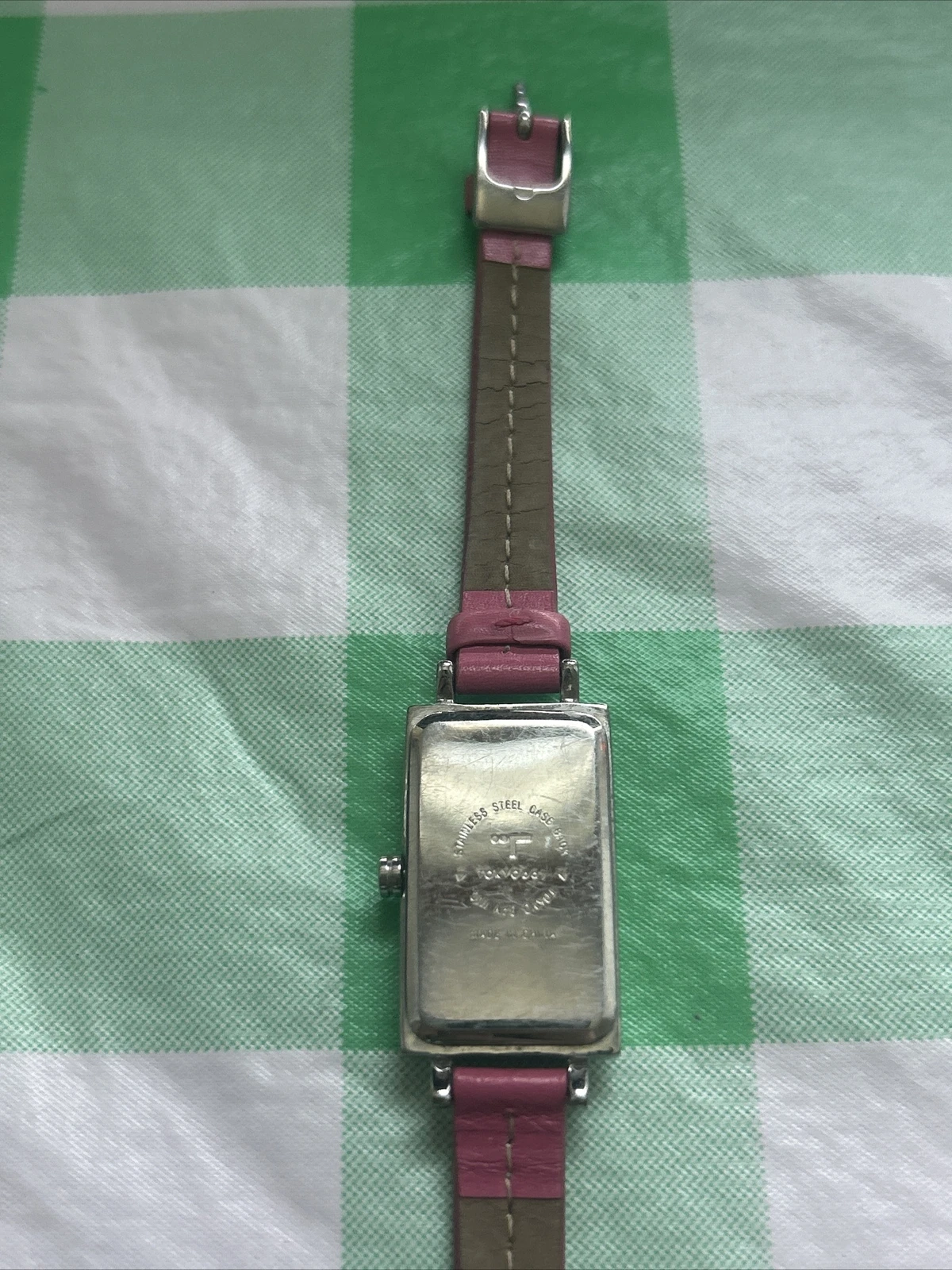TokyoBay Silver Tone Pink Band Women’s Tank Quartz Watch