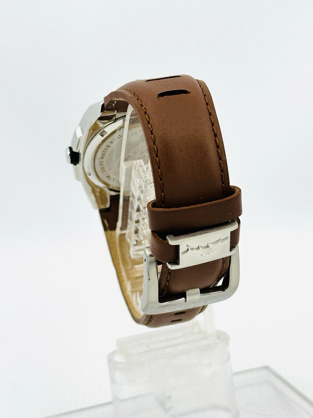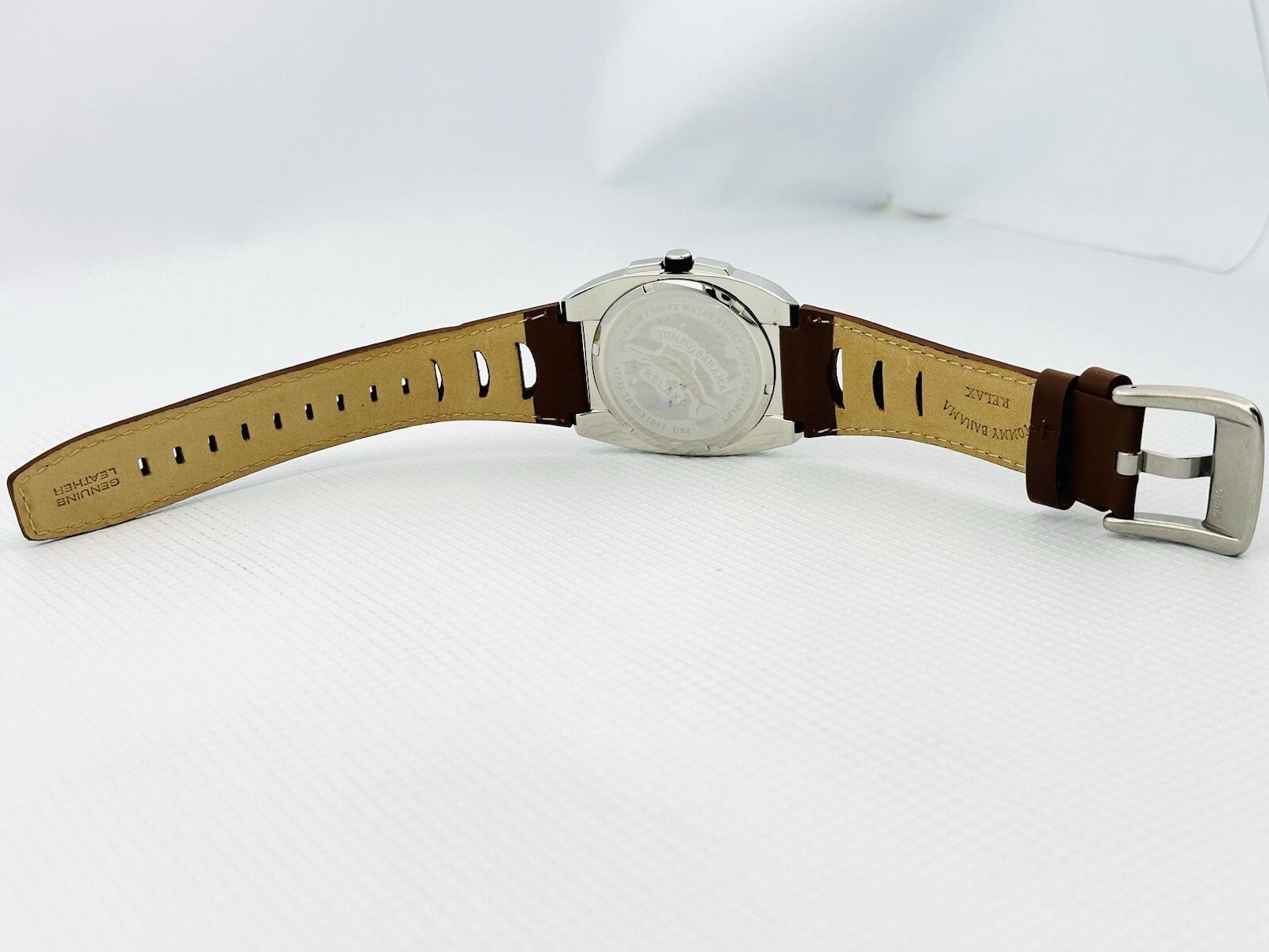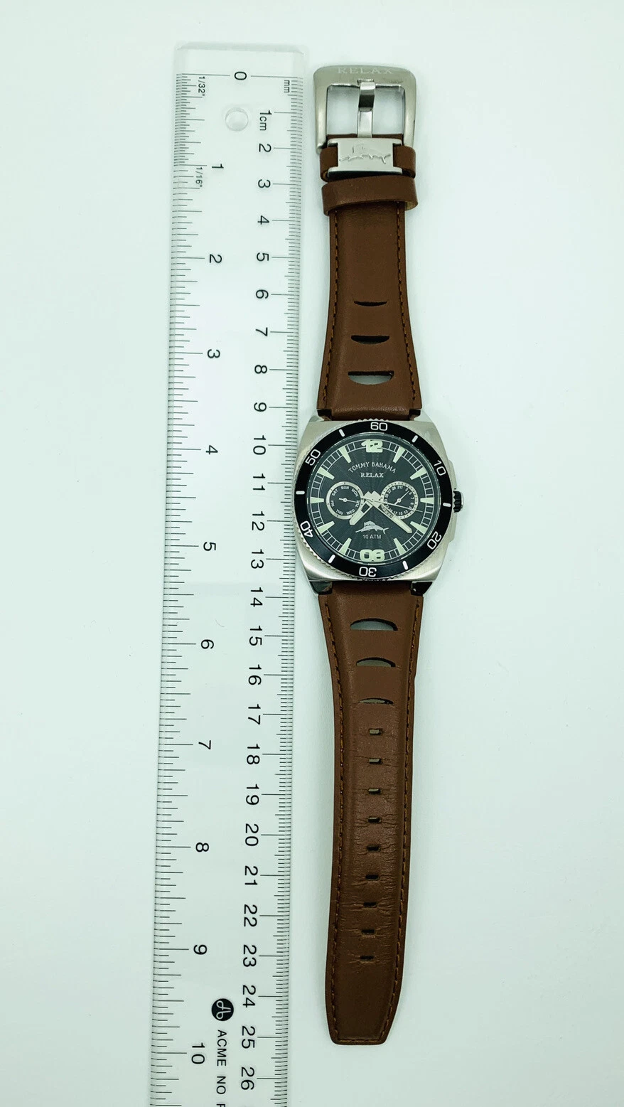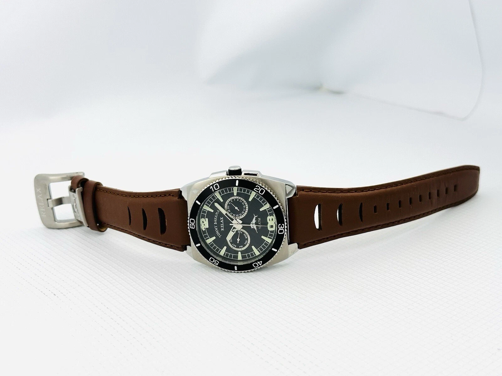 Tommy Bahama RLX1023 SHORE THING BLK Dial Timing Bezel Brown Leather Strap Watch