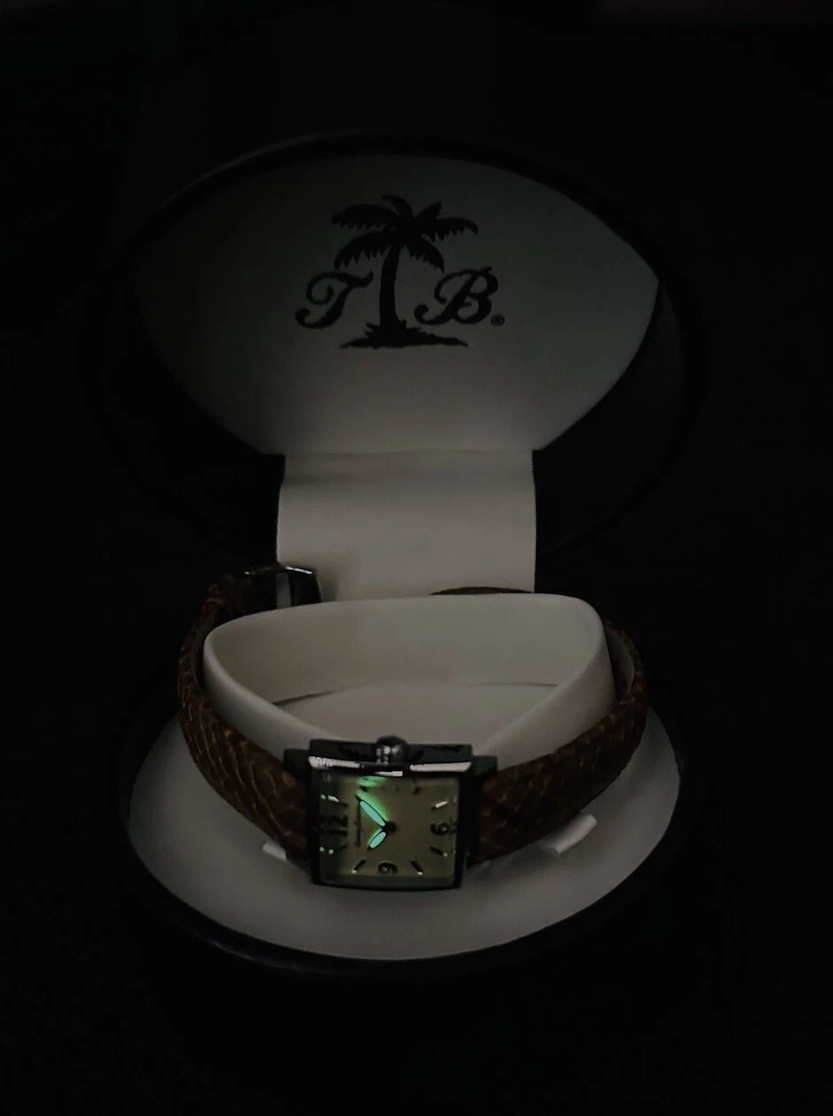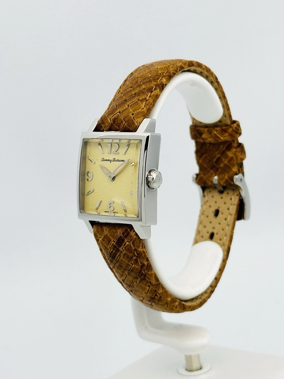 Tommy Bahama TB2000 SILVER PALM Ladies PINEAPPLE Dial Amber/Brown Leather Strap