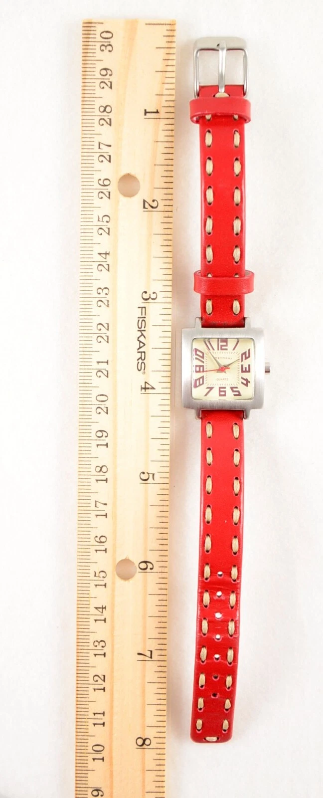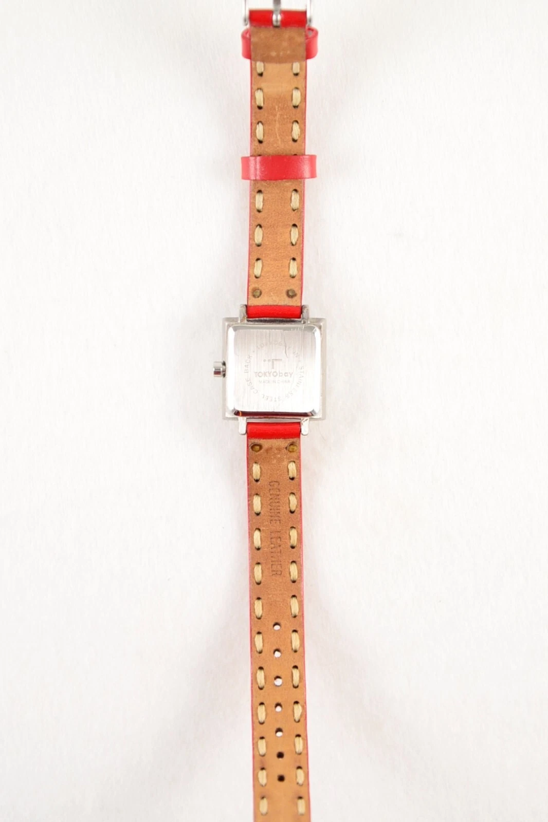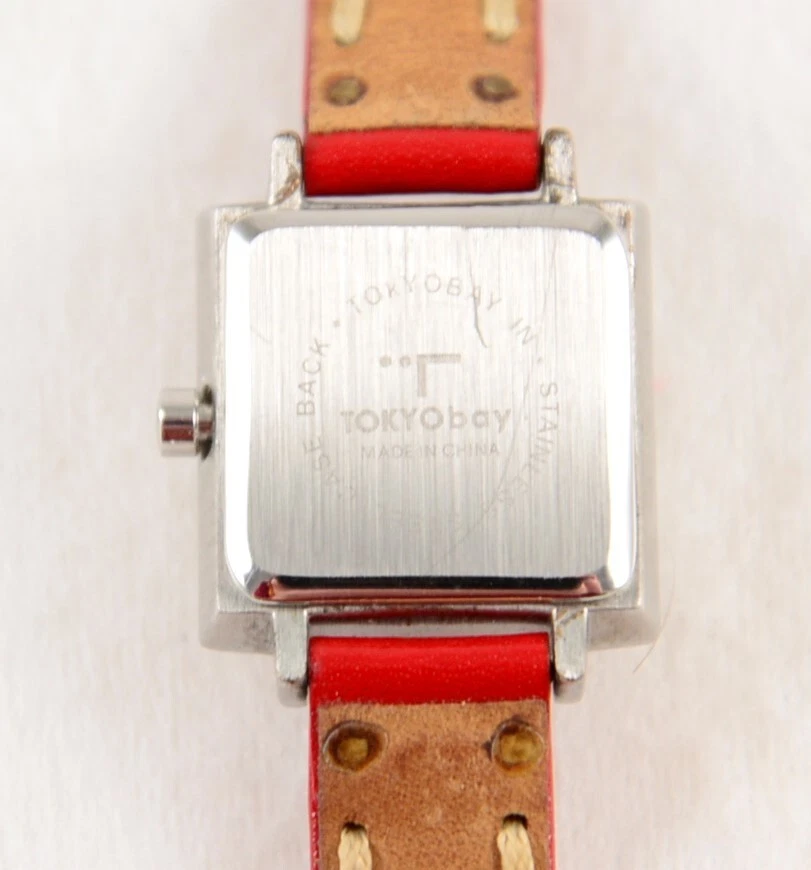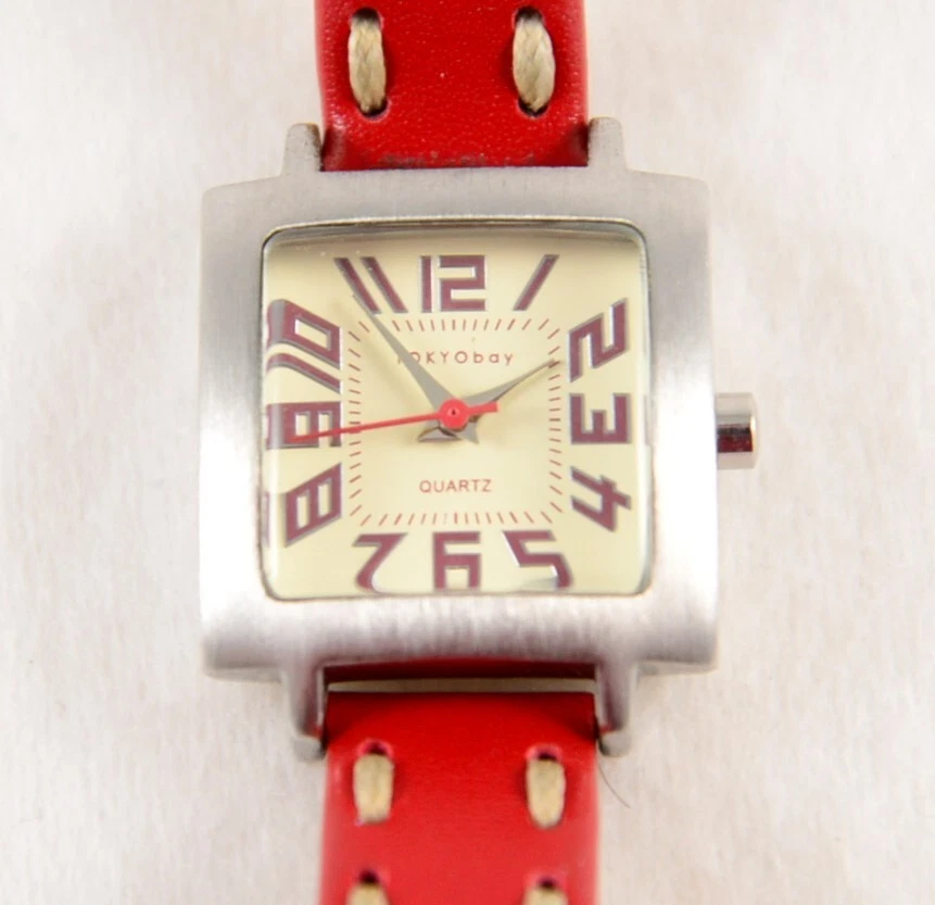 Tokyo Bay Women's Ladies Square Case Wristwatch Red Leather Buckle Band w/Batt