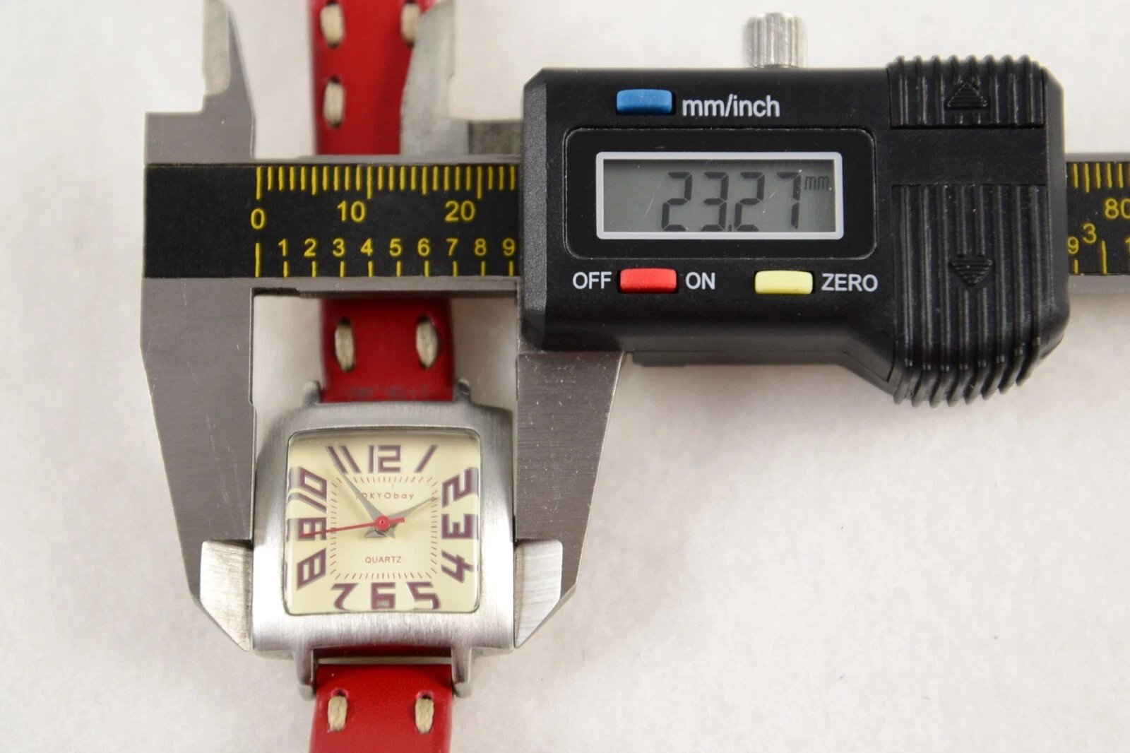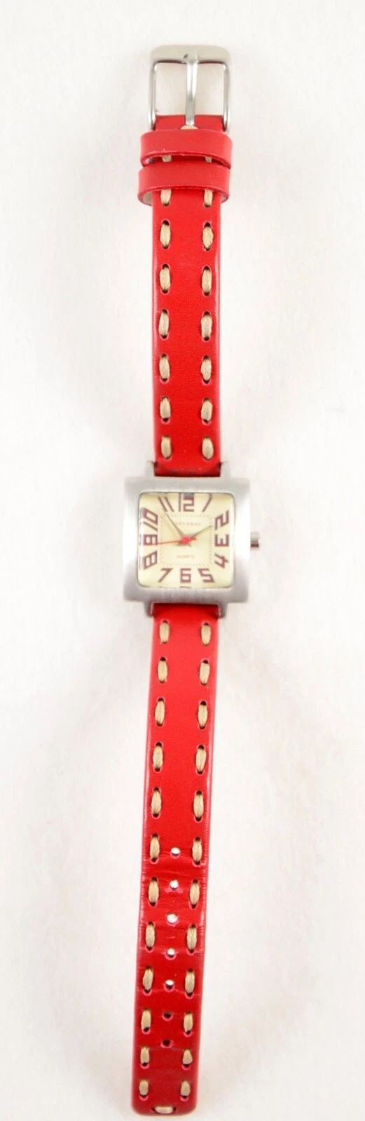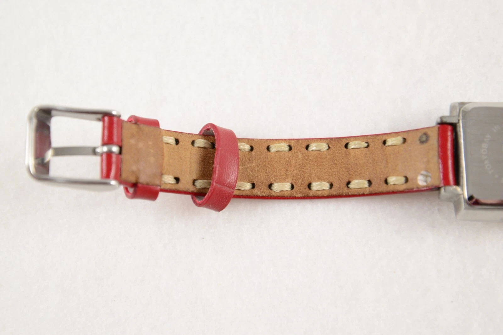 Tokyo Bay Women's Ladies Square Case Wristwatch Red Leather Buckle Band w/Batt