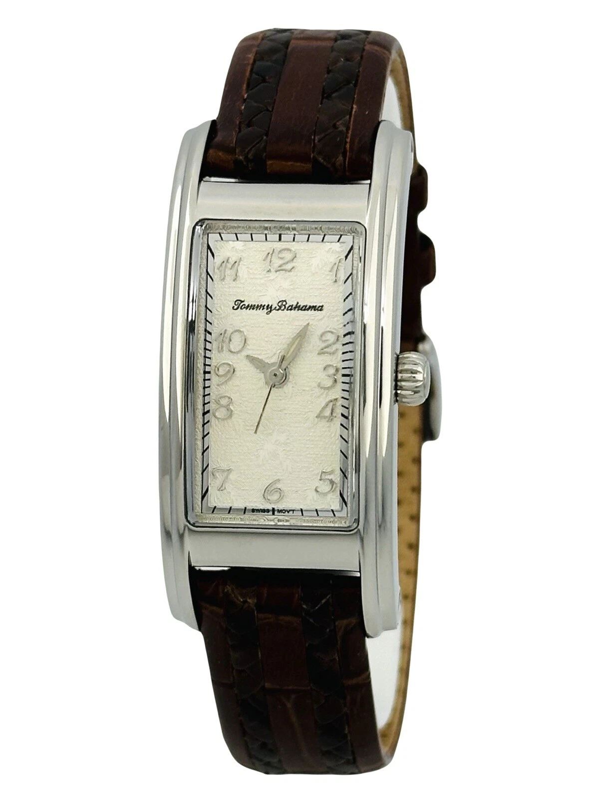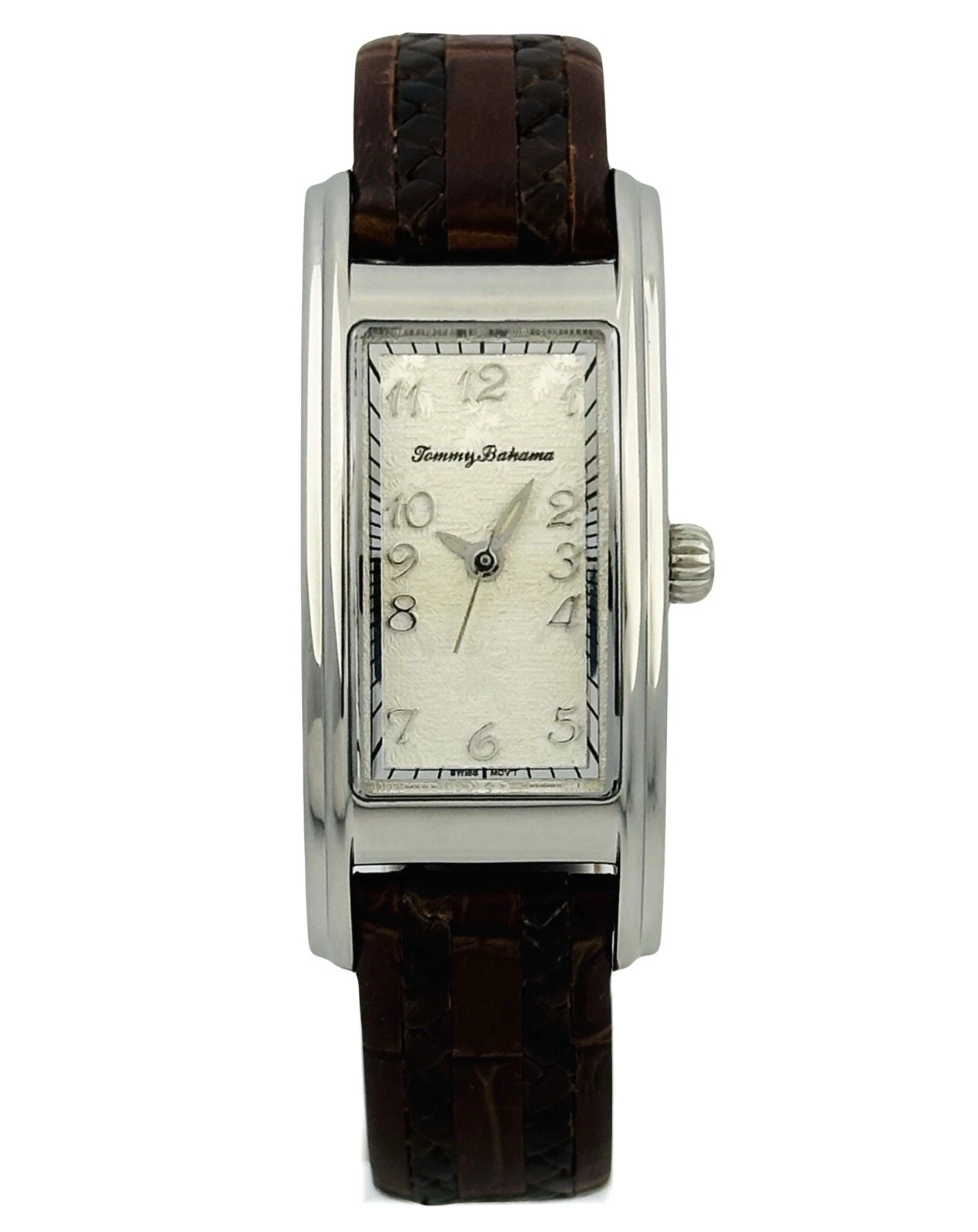 Tommy Bahama TB2091 Women's Rectangle Curved Case Spray Dial STEEL PALMS Watch
