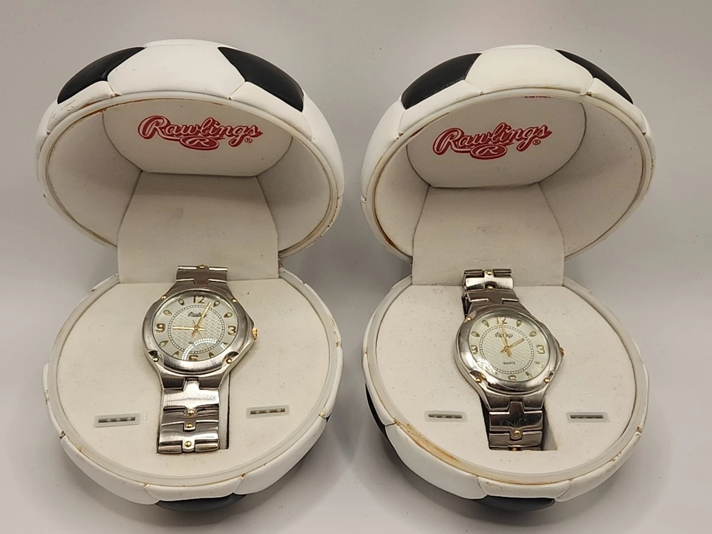 2 Rawlings Quartz Watch Silver & Goldtone Green Dot Accent Soccer Box Japan Movt