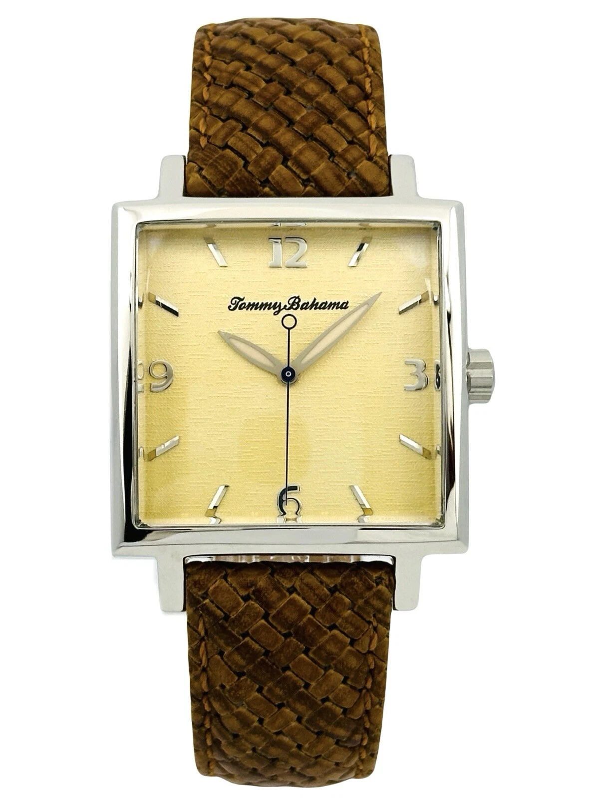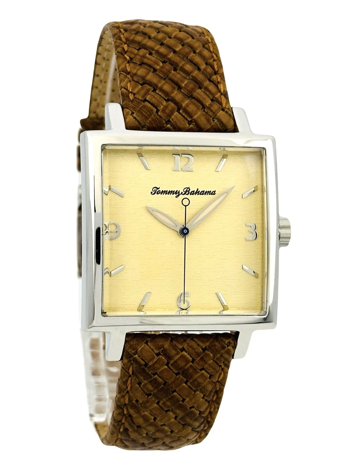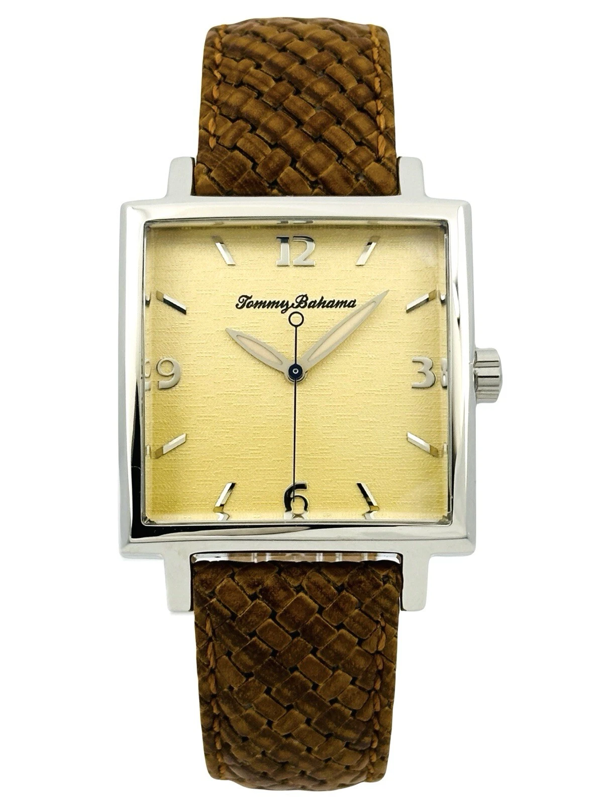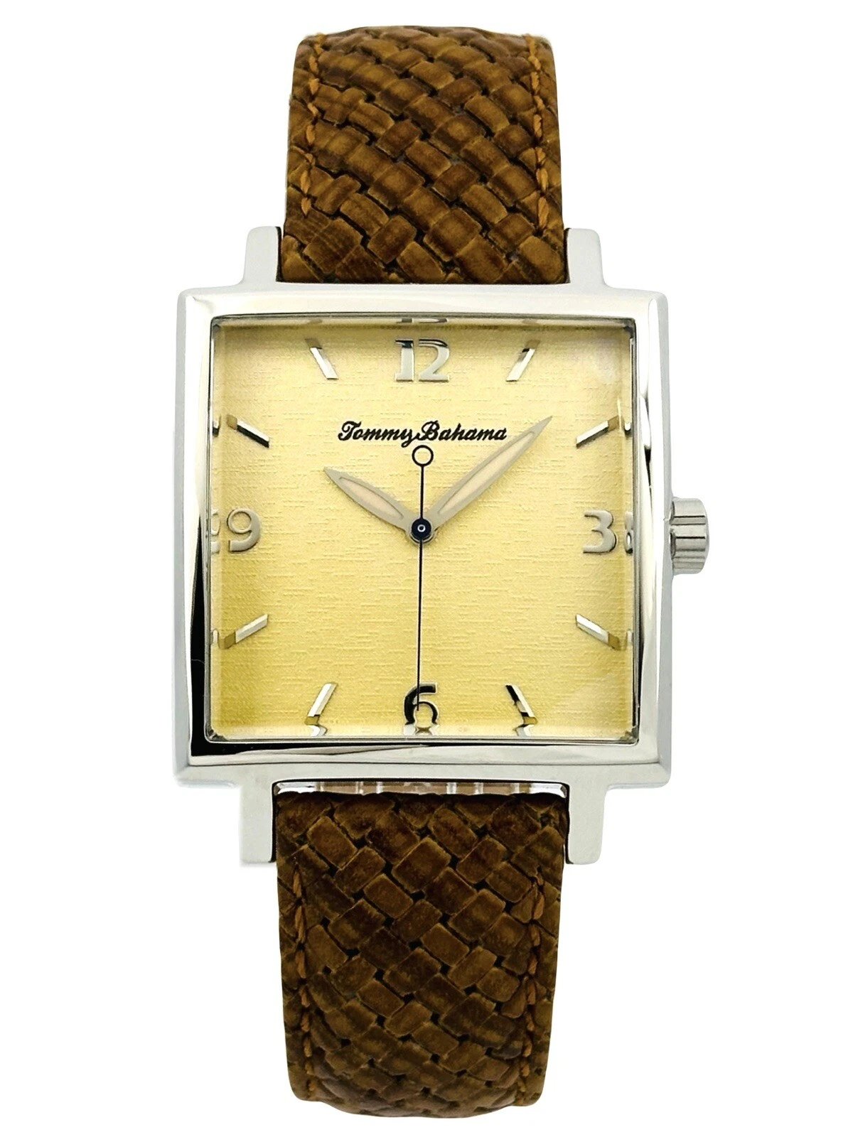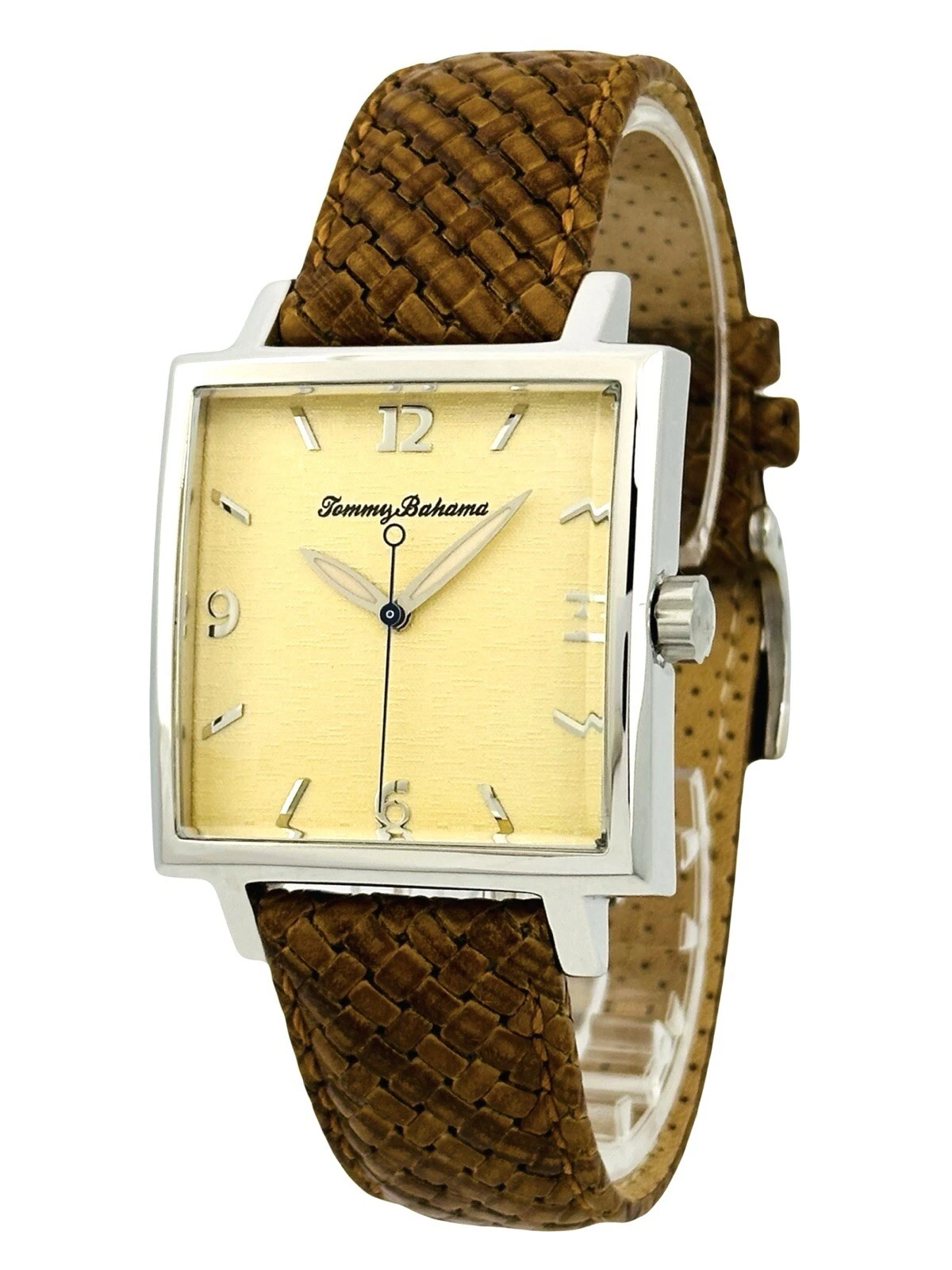 Tommy Bahama TB1000 Men's Square Shape Pineapple Dial Amber/Brown Leather Watch